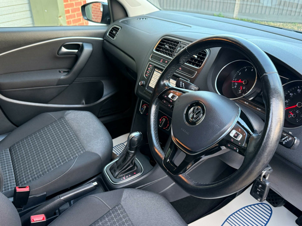 HPI Clear, free 6 months warranty, Full VW Main Dealer Service History with a recent full service carried out by VW & long MOT remaining. This exceptionally well maintained car has 9 VW main dealership service records! Free 30 miles delivery. 2 keys. ULEZ compliant. This amazing car is ready to drive away same day!!!We have for you here an excellent, a very high in demand and popular automatic VW Polo in immaculate condition both inside and out. This exceptionally reliable and well maintained car, drives and feels great. Packed with features and extras. This car is economical to run, insure and maintain, and it is a fantastic car at unbeatable price! Has 2 keys, full VW main dealer service history with a recent full service, recent MOT and the car includes 6 months warranty with options to extend. Full HPI checked and PASSED. HPI certificate provided at NO EXTRA COST. A car that ticks all the boxes! Buy with confidence! Finance options available, contact us for more information.Contact number: 01344926227 Or 07459108076 in alloy wheels - stratford, abs - anti-lock braking system with hba - hydraulic brake assist, air conditioning - manual, air vent surrounds - matt chrome, airbags - side head and thorax for front passenger, alarm with interior protection, automatic post-collision braking system, bag hooks in the luggage compartment x2, black radiator grille with chrome trimmed louvres, bluetooth phone connectivity, body coloured bumpers and side sills, body coloured door handles, body-coloured door mirrors with integrated indicators, car-net app-connect, centre console with open storage and 12v socket with cover, chrome trimmed front air intake surround, composition media system, convenience pack, cruise control, cruise and park pack, cup holders - front x2, dark rhodium fine decorative inserts, door mirrors - electrically adjustable and heated, driver alert system, drivers and front passengers airbags, drivers and front passengers safety optimised head restraints, drivers and front passengers seat height adjustment, drivers and front passengers sun visors with vanity mirrors, dust and pollen filter, esc - electronic stability control including edl - electronic differential lock and asr - traction control, electric windows - front, electric windows - rear, electronic engine immobiliser, front fog lights with static cornering function, front seat back storage pockets, front windscreen washers and wipers with 4 speeds including interval delay, full size steel spare wheel, gear lever gaiter surround - matt chrome, glovebox, grab handles front x2 rear x2 with integrated coat hooks, halogen clear headlights range adjustable with seperate daytime running lights, heated rear windscreen - automatically switches off, heating and ventilation with 4 speed fan and air recirculation, height and reach adjustable steering wheel, height-adjustable front three-point seat belts with tensioners, high level 3rd brake light, hill hold function, isofix child seat preparation for 2 rear seats, instrument lighting - white adjustable panel illumination, interior lighting with delayed switch off, light and sight pack, lights on warning buzzer, load sill protector, luggage compartment - variable load floor, luggage compartment cover - removable, luggage compartment light, manually dimmable interior rear-view mirror, matt chrome - handbrake grip button, matt chrome - internal door handles, multi-function display, multifunction computer, multifunction leather steering wheel including leather trimmed gear knob and handbrake grip, note pad holder - pen holder - coin holder in glovebox, parking sensors - front and rear, power assisted steering - speed sensitive, reading lights - front x2 & rear x1, rear tinted glass from b pillar backwards - approx 65 percent tinted, rear windscreen washer and wiper with interval delay, remote central locking with 2 remote folding keys, speedo and rev counter - electronic odometer - trip - service interval display - digital clock and fuel gauge, split folding rear backrests 60-40, storage compartment in front doors, storage compartment in rear doors, sunglasses holder, three rear 3-point seat belts, three rear head restraints, two-tone horn, tyre pressure loss indicator, vanity mirrors - illuminated, warning buzzer and light for front seat belts if unfastened, white turn signal lights at rear, app-connect, apple carplay, android auto, front parking sensors, rear parking sensors, carpet mats - front and rear