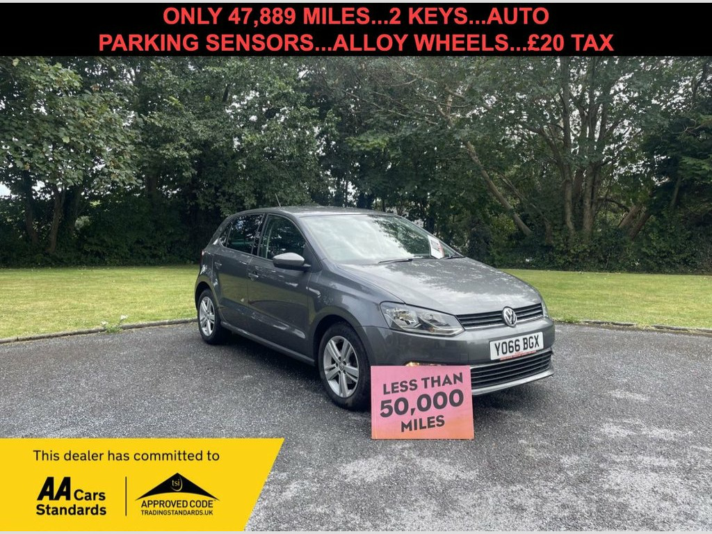2016 VOLKSWAGEN POLO 1.2 TSI 90 MATCH EDITION...DSG AUTO...HATCHBACK...PETROL...ONLY 47,889 MILES...2 KEYS...2 OWNERS...£20 TAX...IT DOES AN IMPRESSIVE 60MPG...COMES WITH...ELECTRIC WINDOWS...ELECTRIC MIRRORS...ELECTRIC FOLDING MIRROES...PARKING SENSORS FRONT AND REAR...AUTOMATIC HEADLIGHTS...FOG LIGHTS FRONT AND REAR...RADIO...BLUETOOTH...MEDIA SCREEN WITH VEHICLE CHECK SCREEN...AIR-CON...MULTI-FUNCTION STEERING WHEEL...CRUISE CONTROL...USB-AUX...AUX...12V PORT...ALLOY WHEELS...SPARE WHEEL WITH JACK KIT...COMES WITH A 12 MONTH NON ADVISORY MOT....3 MONTH NO QUIBBLE WARRANTY....FREE 12 MONTH AA BREAKDOWN COVER....FINANCE AVAILABLE....PART EXCHANGE WELCOME  15in Alloy Wheels - Stratford, ABS - Anti-lock Braking System with HBA , Air Conditioning - Manual, Air Vent Surrounds - Matt Chrome, Airbags - Side Head and Thorax for Front, Alarm with Interior Protection, Automatic Post-Collision Braking System, Bag Hooks in the Luggage Compartment x2, Black Radiator Grille with Chrome Trimme, Bluetooth Phone Connectivity, Body Coloured Bumpers and Side Sills, Body Coloured Door Handles, Body-Coloured Door Mirrors with Integrat, Car-Net App-Connect, Centre Console with Open Storage and 12V, Chrome Trimmed Front Air Intake Surround, Composition Media System, Convenience Pack, Cruise and Park Pack, Cruise Control, Cup Holders - Front x2, Dark Rhodium Fine D