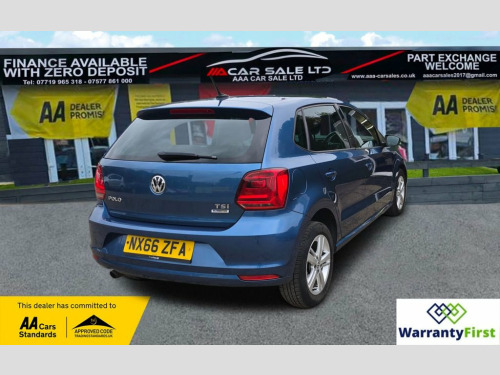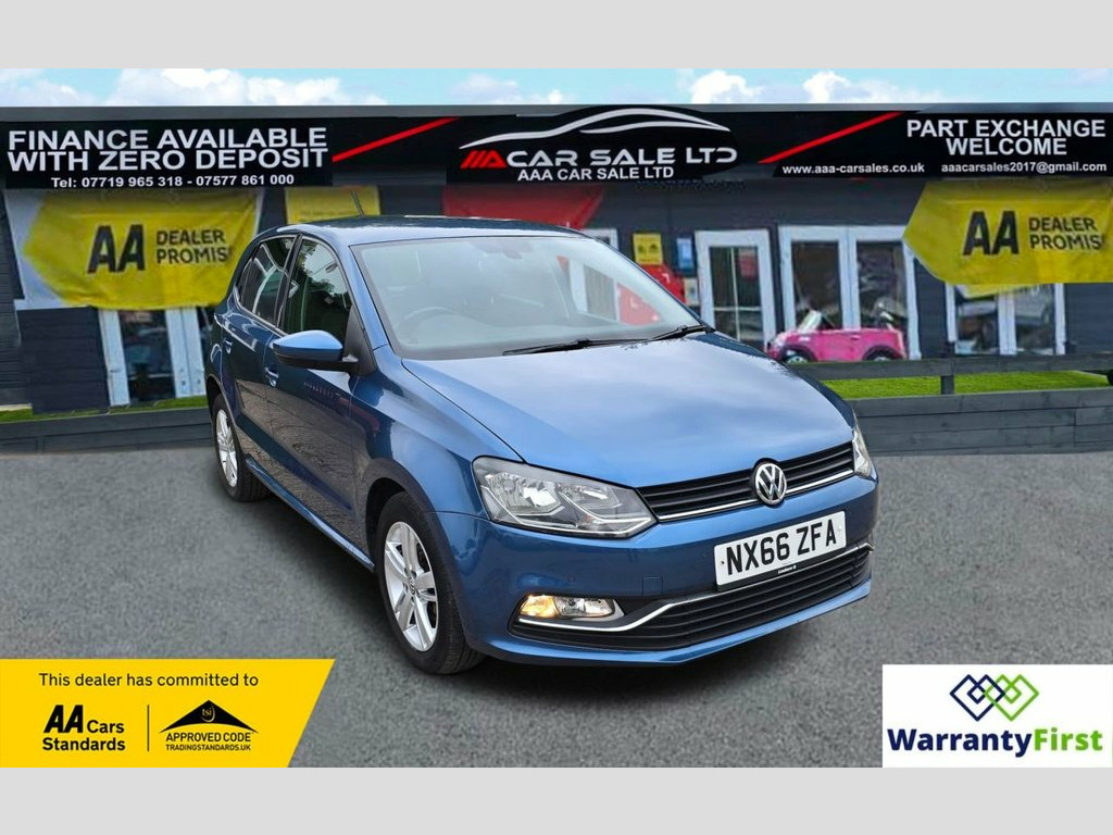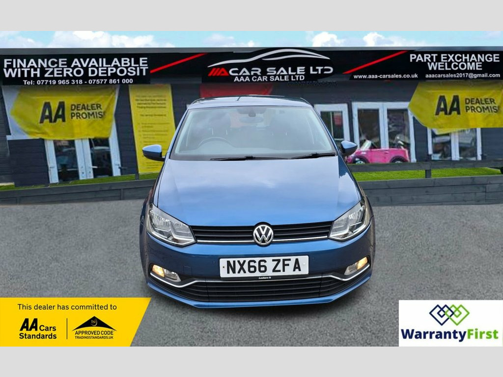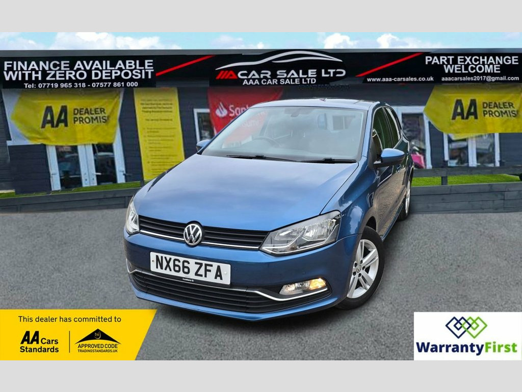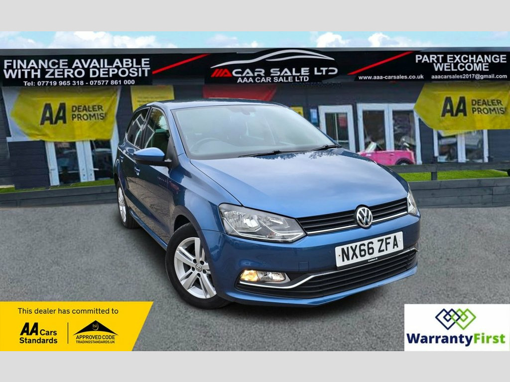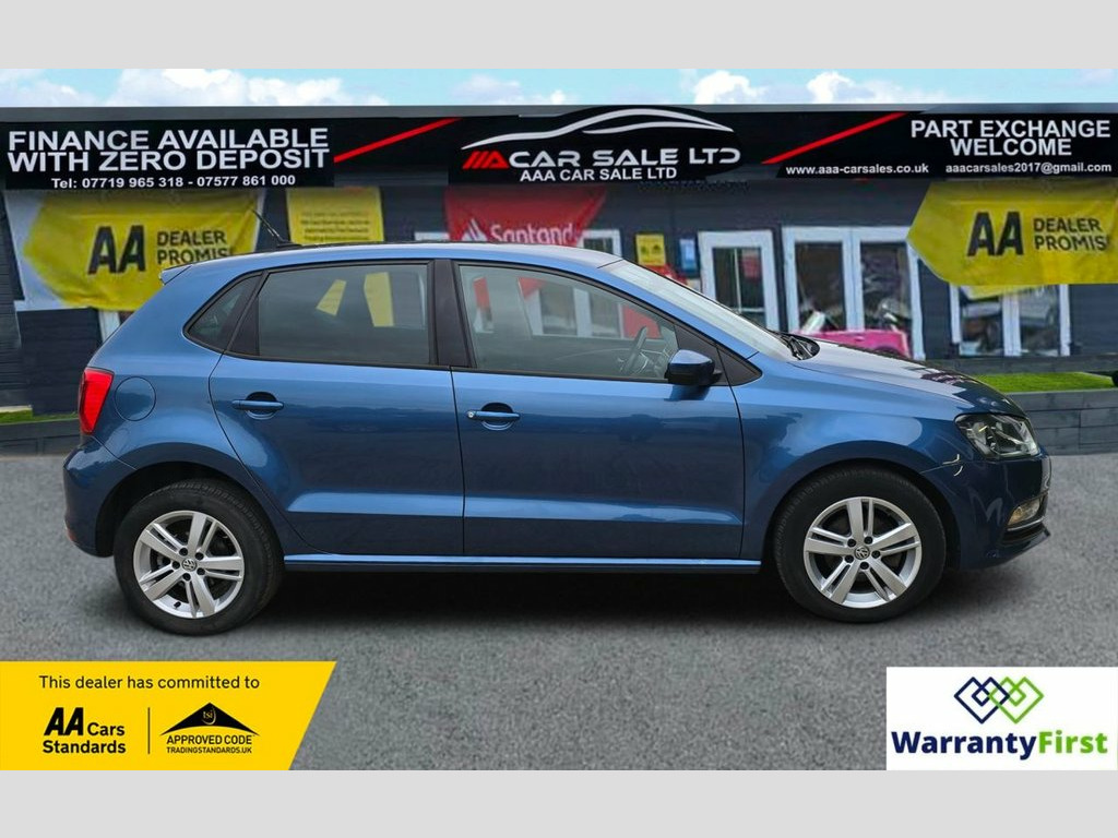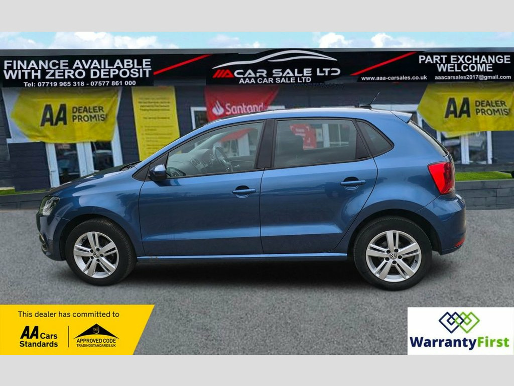**AAA CAR SALES DARLINGTON LTD HAVE THE PLEASURE TO PRESENT THIS VOLKSWAGEN POLO 1.2 TSI BlueMotion Tech Match Hatchback 5dr Petrol Manual Euro 6 (s/s) (90 ps) IN BLUE SILK PAINTWORK, SERVICE HISTORY - SERVICED AT 7K, 13K, 14K, 24K, 31K, 39K, 40K, 50K, 59K, 65K, 74K AND SERVICED BY OUR TEAM AT 77K...CAM BELT & TENSIONER REPLACED 2021 @ 40K....ALL OUR CARS GO THROUGH 72 POINT INSPECTION,ALL OF OUR CARS COME WITH 12 MONTHS AA BREAKDOWN COVER, UP TO FRESH MOT WITHOUT ADVISORIES,INTERIM SERVICE,HPI CHECKED VIA EXPERIAN,3 MONTHS WARRANTY WITH THE OPTION TO UPGRADE ***AUTOTRADER CUSTOMER SERVICE AWARD 2019,2020,2021,2022,2023 and 2024 YEAR ON YEAR***, WE ARE OPEN 7 DAYS A WEEK FOR YOUR CONVIENIENCE,CALL 01325 511665 OR EMAIL US AT [email protected] or visit our website www.aaa-carsales.co.uk, Clean bodywork, Cloth interior - Clean Condition, Tyre condition good, YOU CAN BUY WITH FULL CONFIDENCE FROM AAA CARS CHECK OUR AUTOTRADER REVIEWS FOR FULL PEACE OF MIND, Blue Silk, 15in Alloy Wheels - Stratford, ABS - Anti-lock Braking System with HBA , Air Conditioning - Manual, Air Vent Surrounds - Matt Chrome, Airbags - Side Head and Thorax for Front, Alarm with Interior Protection, Bag Hooks in the Luggage Compartment, Black Radiator Grille with Chrome Trim, Bluetooth Phone Connectivity, Body Coloured Bumpers and Side Sills, Body Coloured Door Handles and Mirrors w, Centre Console with Open Storage and 12V, Chrome Trimmed Front Air Intake Surround, Composition Media System, Cruise Control, Cruise and Park Pack, Cup Holders - Front x2, Door Mirrors - Electrically Adjustable a, Driver Alert System, Drivers and Front Passengers Airbags, Drivers and Front Pa