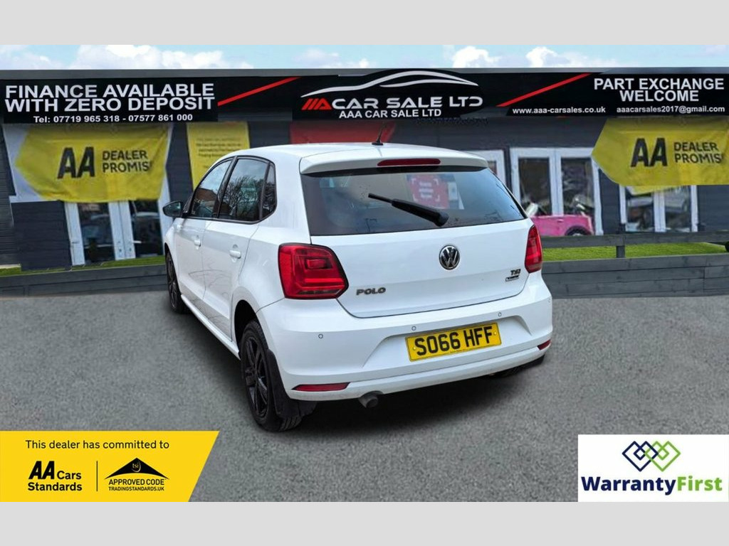 **AAA CAR SALES DARLINGTON LTD HAVE THE PLEASURE TO PRESENT THIS VOLKSWAGEN POLO 1.2 TSI BlueMotion Tech Match Hatchback 5dr Petrol Manual Euro 6 (s/s) (90 ps) IN PURE WHIRE PAINTWORK, SERVICE HISTORY - SERVICED AT 9K, 18K, 21K, 28K, 45K AND SERVICED BY OUR TEAM AT 94K....ALL OUR CARS GO THROUGH 72 POINT INSPECTION,ALL OF OUR CARS COME WITH 12 MONTHS AA BREAKDOWN COVER, UP TO FRESH MOT WITHOUT ADVISORIES,INTERIM SERVICE,HPI CHECKED VIA EXPERIAN,3 MONTHS WARRANTY WITH THE OPTION TO UPGRADE ***AUTOTRADER CUSTOMER SERVICE AWARD 2019,2020,2021,2022,2023 and 2024 YEAR ON YEAR***, WE ARE OPEN 7 DAYS A WEEK FOR YOUR CONVIENIENCE,CALL 01325 511665 OR EMAIL US AT [email protected] or visit our website www.aaa-carsales.co.uk, Clean bodywork, Cloth interior - Clean Condition, Tyre condition good, YOU CAN BUY WITH FULL CONFIDENCE FROM AAA CARS CHECK OUR AUTOTRADER REVIEWS FOR FULL PEACE OF MIND, Pure White, 15in Alloy Wheels - Stratford, ABS - Anti-lock Braking System with HBA , Air Conditioning - Manual, Air Vent Surrounds - Matt Chrome, Airbags - Side Head and Thorax for Front, Alarm with Interior Protection, Bag Hooks in the Luggage Compartment, Black Radiator Grille with Chrome Trim, Bluetooth Phone Connectivity, Body Coloured Bumpers and Side Sills, Body Coloured Door Handles and Mirrors w, Centre Console with Open Storage and 12V, Chrome Trimmed Front Air Intake Surround, Composition Media System, Cruise Control, Cruise and Park Pack, Cup Holders - Front x2, Door Mirrors - Electrically Adjustable a, Driver Alert System, Drivers and Front Passengers Airbags, Drivers and Front P