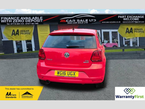 **AAA CAR SALES DARLINGTON LTD HAVE THE PLEASURE TO PRESENT THIS VOLKSWAGEN POLO 1.2 TSI BlueMotion Tech Match Hatchback 5dr Petrol Manual Euro 6 (s/s) (90 ps) IN FLASH RED PAINTWORK, SERVICE HISTORY - SERVICED AT 7K, 26K AND SERVICED BY OUR TEAM AT 63K....ALL OUR CARS GO THROUGH 72 POINT INSPECTION,ALL OF OUR CARS COME WITH 12 MONTHS AA BREAKDOWN COVER, UP TO FRESH MOT WITHOUT ADVISORIES,INTERIM SERVICE,HPI CHECKED VIA EXPERIAN,3 MONTHS WARRANTY WITH THE OPTION TO UPGRADE ***AUTOTRADER CUSTOMER SERVICE AWARD 2019,2020,2021,2022,2023 and 2024 YEAR ON YEAR***, WE ARE OPEN 7 DAYS A WEEK FOR YOUR CONVIENIENCE,CALL 01325 511665 OR EMAIL US AT [email protected] or visit our website www.aaa-carsales.co.uk, Clean bodywork, Cloth interior - Clean Condition, Tyre condition good, YOU CAN BUY WITH FULL CONFIDENCE FROM AAA CARS CHECK OUR AUTOTRADER REVIEWS FOR FULL PEACE OF MIND, Flash Red, 15in Alloy Wheels - Stratford, ABS - Anti-lock Braking System with HBA , Air Conditioning - Manual, Air Vent Surrounds - Matt Chrome, Airbags - Side Head and Thorax for Front, Alarm with Interior Protection, Bag Hooks in the Luggage Compartment, Black Radiator Grille with Chrome Trim, Bluetooth Phone Connectivity, Body Coloured Bumpers and Side Sills, Body Coloured Door Handles and Mirrors w, Centre Console with Open Storage and 12V, Chrome Trimmed Front Air Intake Surround, Composition Media System, Cruise Control, Cruise and Park Pack, Cup Holders - Front x2, Door Mirrors - Electrically Adjustable a, Driver Alert System, Drivers and Front Passengers Airbags, Drivers and Front Pa