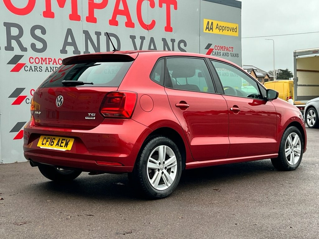 A 2016 Volkswagen Polo 1.2 TSI BlueMotion Tech Match 5-door is a very sensible small hatch right now — especially with under 21,000 miles. Its 1.2 litre turbo petrol engine (90 PS) delivers roughly 60 mpg combined (about 47 mpg in town / 70 mpg on the motorway), making it cheap to run and tax-friendly under current UK rates with £20 a year tax. With 5 doors, seating for five and a practical boot (≈ 280 L up / ≈ 950 L seats-down), it's easy to use for daily commuting, shopping or trips. Spec wise, even the Match trim includes essentials such as air-conditioning, adjustable steering wheel and plenty of storage and convenience features — so you get reasonable comfort and practicality without needing extras. Overall: low mileage, low running costs and sensible practicality make this Polo a smart, economical hatchback suited to everyday use. 15in Alloy Wheels - Stratford, ABS - Anti-lock Braking System with HBA , Air Conditioning - Manual, Air Vent Surrounds - Matt Chrome, Airbags - Side Head and Thorax for Front, Alarm with Interior Protection, Bag Hooks in the Luggage Compartment, Black Radiator Grille with Chrome Trim, Bluetooth Phone Connectivity, Body Coloured Bumpers and Side Sills, Body Coloured Door Handles and Mirrors w, Centre Console with Open Storage and 12V, Chrome Trimmed Front Air Intake Surround, Composition Media System, Cruise Control, Cruise and Park Pack, Cup Holders - Front x2, Door Mirrors - Electrically Adjustable a, Driver Alert System, Drivers and Front Passengers Airbags, Drivers and Front Passengers Sa