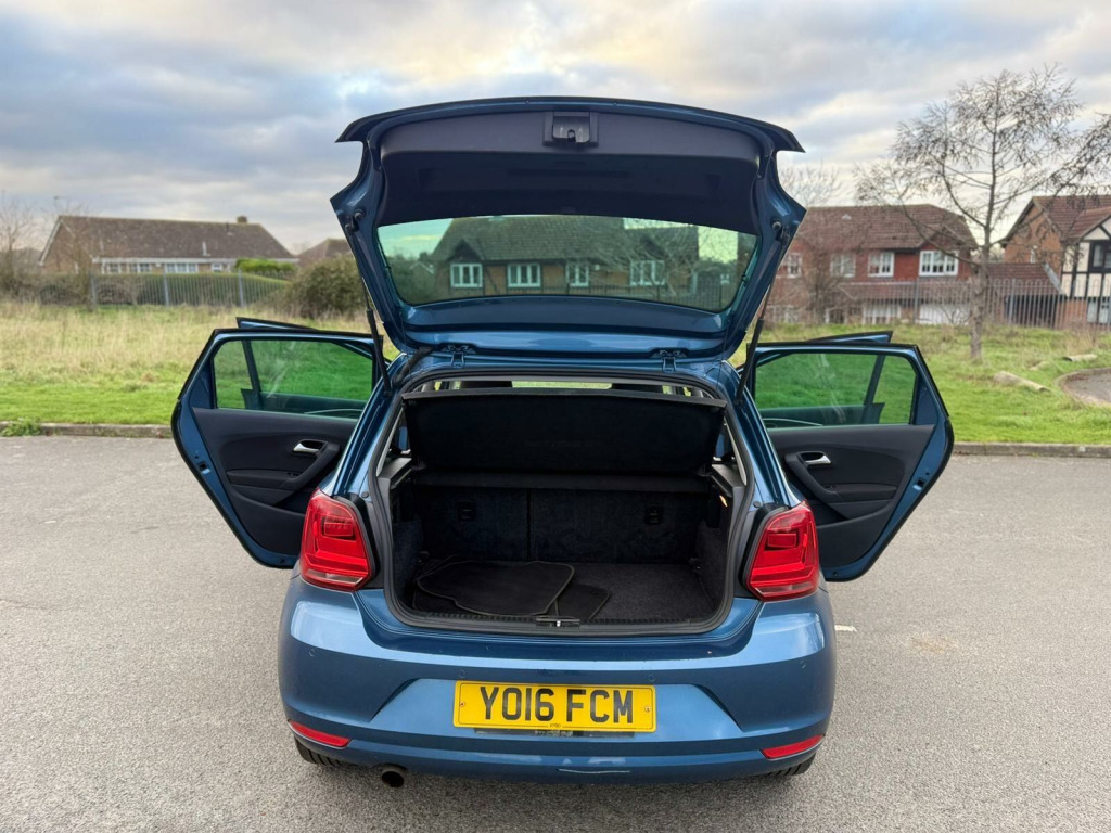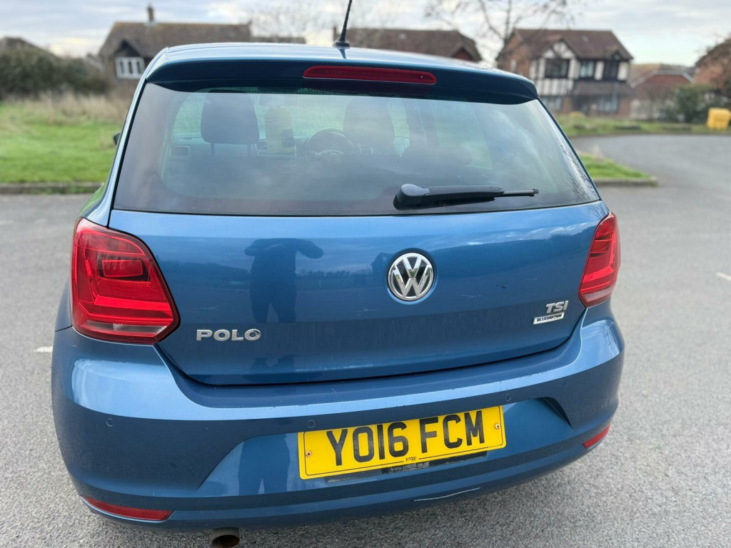Volkswagen Polo 1.2 TSI BlueMotion Tech Match Hatchback 5drKey Details:Year: 2016 (16)Mileage: 61,485 (Warranted)Engine: 1.2 TSI Petrol (Euro 6, ULEZ Compliant)Transmission: ManualColour: BlueOwners: 2HPI ClearFeatures & Highlights:Match SpecificationAlloy WheelsAir ConditioningBlueMotion Technology - Improved Fuel EfficiencyULEZ Free - Drive Anywhere Without ChargesLow Insurance GroupVery Economical to RunCondition & Drive:This Volkswagen Polo Match is in excellent condition inside and out. Very well maintained with a smooth and responsive 1.2 TSI engine that offers an ideal balance of performance and economy. The gearbox and suspension are very smooth, delivering a comfortable and refined driving experience. Seats are supportive and the car looks and drives brilliant.Peace of Mind:Warranted MileageHPI ClearMechanically Perfect - just buy & drive awayFREE BREAKDOWN COVER Why Buy This Car?A reliable, stylish hatchback with low running costs, modern features, and full ULEZ compliance. Ideal as a first car or economical daily driver. First to see will buy!Viewings:View by Appointment OnlyPart Exchange WelcomeNATIONWIDE DELIVERY AVAILABLE v socket - centre console, 15in alloy wheels - stratford, abs - anti-lock braking system, asr - anti slip regulation, air conditioning - manual, air vent surrounds - matt chrome, airbags - driver, airbags - front passenger, airbags - front side head, airbags - front thorax, alarm with interior protection, anti-theft wheel bolts, automatic post-collision braking system, aux-in socket, bluetooth audio connection, bluetooth phone connectivity, body coloured bumpers, body coloured door handles, body coloured side sills, body-coloured door mirrors with integrated indicators, car information display, carpet - black, central locking - remote with 2 remote keys, chrome trimmed front air intake grille surround, colour touch screen - 6.5in, composition media system, cruise control, cruise and park pack, cup holders - front x2, dab+ - digital radio reception, dashboard - titan black, daytime running lights, differential lock - electronic, door mirrors - electrically adjustable and heated, driver alert system, dust and pollen filter, esc - electronic stability control, electric windows - front and rear, electronic engine immobiliser, front fog lights with cornering lights, front seat back storage pockets, front windscreen washers and wipers with 4 speeds including interval delay, galvanised body, gear knob - leather, gear lever gaiter surround - matt chrome, glovebox, grab handles - front x2 rear x2 with coat hooks, hba - hydraulic brake assist, handbrake grip button - matt chrome, head restraints - front whiplash optimised, headlights - halogen clear - range adjustable, heated rear windscreen, height and reach adjustable steering wheel, high gloss black decorative inserts, high level 3rd brake light, hill hold assist, isofix child seat preparation for 2 rear seats, instrument lighting - white adjustable panel illumination, interior lighting delay, keys - two remote control folding keys, leather trimmed handbrake grip, lights on warning buzzer, load sill protector, luggage compartment - hooks x2, luggage compartment - variable load floor, luggage compartment cover - removable, luggage compartment light, mdi - multi device interface, mp3 compatible cd player, matt chrome - internal door handles, multi-function display, multifunction computer, parking sensors - front, parking sensors - rear, power assisted steering - speed sensitive, radiator grille - black with chrome louvres, reading lights - front x2, reading lights - rear, sd card reader, sms functionality - read - compose and send sms messages using touch screen display - android compatible smartphones only, seats - front comfort, seats - height adjustment - front, simultaneous pairing of 2 compatible mobile devices, sound output - 4x20 watt, spare wheel - 15in steel, speakers x8, split folding rear backrests 60-40, steering wheel - 3-spoke - leather trimmed, steering wheel - multifunction, storage compartment in centre console, storage compartment in front doors, storage compartment in rear doors, sun visors - vanity mirrors and illuminated x2, sunglasses holder, think blue - trainer - driver tips - journey analysis, three rear head restraints, tinted glass - heat insulating rear 65 percent light absorbing from b pillar backwards, title and cover art display, tyre pressure loss indicator, usb socket, warning buzzer and light for front seat belts if unfastened