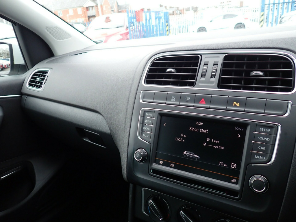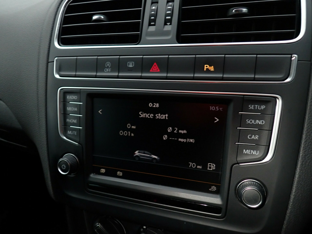 Super low mileage Polo available now for your viewing and test drive in Tonbridge where we are open 7 days a week. in alloy wheels - stratford, black radiator grille with chrome trim, body coloured bumpers and side sills, body coloured door handles and mirrors with integrated indicators, chrome trimmed front air intake surround, door mirrors - electrically adjustable and heated, electric windows - front, electric windows - rear, heated rear windscreen - automatically switches off, spare wheel - 15in steel, tinted glass - heat insulating rear 65 percent light absorbing from b pillar backwards, white turn signal lights at rear, abs - anti-lock braking system with hba - hydraulic brake assist, airbags - side head and thorax for front passenger, alarm with interior protection, cruise and park pack, drivers and front passengers airbags, edl electronic differential lock and asr traction control, esc electronic stability control with automatic post collision braking and hill hold control, electronic engine immobiliser, height-adjustable front three-point seat belts with tensioners, isofix child seat preparation for 2 rear seats, rear windscreen washer and wiper with interval delay, remote central locking with 2 remote folding keys, three rear 3-point seat belts, two-tone horn, warning buzzer and light for front seat belts if unfastened, air conditioning - manual, air vent surrounds - matt chrome, bag hooks in the luggage compartment, centre console with open storage and 12v socket with cover, cup holders - front x2, drivers and front passengers safety optimised head restraints, drivers and front passengers seat height adjustment, drivers and front passengers sun visors with vanity mirrors, dust and pollen filter, front seat back storage pockets, front windscreen washers and wipers with 4 speeds including interval delay, gear lever gaiter surround - matt chrome, glovebox, grab handles front x2 rear x2 with integrated coat hooks, heating and ventilation with 4 speed fan and air recirculation, height and reach adjustable steering wheel, high gloss black decorative inserts, instrument lighting - white adjustable panel illumination, interior lighting delay, load sill protector, luggage compartment - variable load floor, luggage compartment cover - removable, luggage compartment light, manually dimmable interior rear-view mirror, matt chrome - handbrake grip button, matt chrome - internal door handles, multifunction leather steering wheel including leather trimmed gear knob and handbrake grip, note pad holder - pen holder - coin holder in glovebox, reading lights - front x2 & rear x1, speedo and rev counter - electronic odometer - trip - service interval display - digital clock and fuel gauge, split folding rear backrests 60-40, storage compartment in front doors, storage compartment in rear doors, three rear head restraints, vanity mirrors - illuminated, bluetooth phone connectivity, composition media system, cruise control, driver alert system, multi-function display, multifunction computer, parking sensors - front and rear, power assisted steering - speed sensitive, tyre pressure loss indicator, front fog lights with static cornering function, halogen clear headlights range adjustable with seperate daytime running lights, high level 3rd brake light, lights on warning buzzer