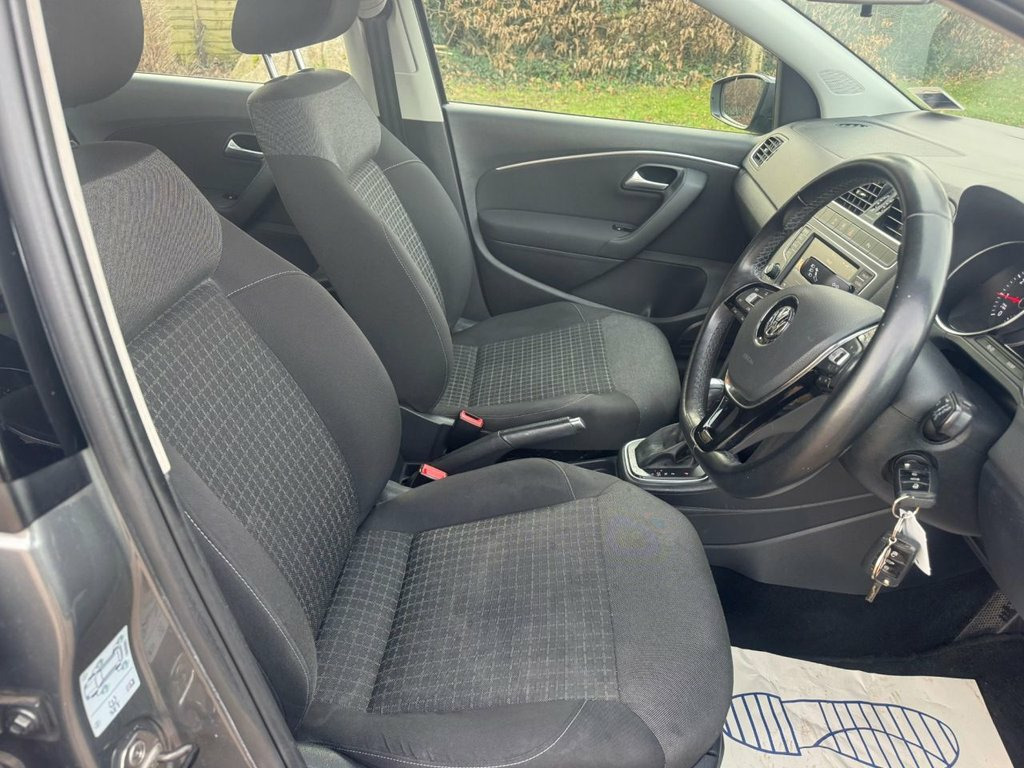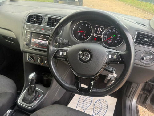 A ONE PRIVATE OWNER FROM NEW V.W.POLO AUTOMATIC IN METALLIC GREY, FITTED WITH ALLOY WHEELS, BLUETOOTH, AIR CONDITIONING AND CRUISE CONTROL. SUPPLIED WITH SERVICE HISTORY INCLUDING A CAM BELT CHANGE. THIS CAR IS ULEZ COMPLIANT AND ONLY £20 ROAD TAX. 12V Socket - Centre Console, 15in Alloy Wheels - Lyon, ABS - Anti-Lock Braking System, ASR - Anti Slip Regulation, Air Conditioning - Manual, Air Vent Surrounds - Matt Chrome, Airbags - Driver, Airbags - Front Passenger, Airbags - Front Side Head, Airbags - Front Thorax, Alarm with Interior Protection, Anti-Theft Wheel Bolts, Automatic Post-Collision Braking System, Aux-In Socket, Bluetooth Audio Connection, Bluetooth Phone Connectivity, Body Coloured Bumpers, Body Coloured Door Handles, Body Coloured Side Sills, Body-Coloured Door Mirrors with Integrat, Car Information Display, Carpet - Black, Central Locking - Remote with 2 Remote K, Chrome Trimmed Front Air Intake Grille S, Colour Touch S