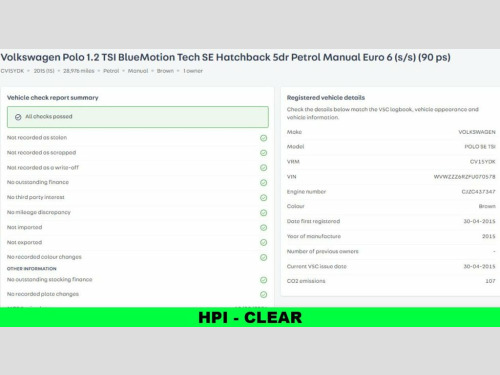 This 2015 Volkswagen Polo 1.2 TSI BlueMotion Tech SE Hatchback 5dr Petrol Ma Hatchback is currently available for £9,750 in Wimbledon London with Petrol engine and Manual gearbox. For more information or to arrange a viewing, click here to send us an email using form below.