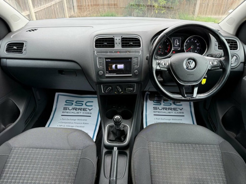 Surrey Specialist Cars are proud to present our lovely Volkswagen Polo Match Edition TSI. This amazing car comes with Service History, finished in stunning metallic black with grey contrast interior. The car has a Long MOT until April 2026 so it is ready to go. The 1.2L Petrol engine offers superb economy at over 62 MPG on combined cycle. Features Include  Multifunction Steering Wheel, Trip Computer, Cruise Control, Stereo/Phone Control, Touch Screen, Start/Stop System, Parking Sensors, Heated Rear Screen, FM/DAB Radio, CD Player, SD Card, Bluetooth Audio, AUX Input, USB Input, Air Conditioning, 12V Charging Socket, two Cup Holders, 5 Speed Manual Gearbox, Electric Windows, 15 Inch Alloy Wheels and two Remote Control Keys to name a few.  15in Alloy Wheels - Stratford, ABS - Anti-lock Braking System with HBA , Air Conditioning - Manual, Air Vent Surrounds - Matt Chrome, Airbags, Alarm with Interior Protection, Automatic Coming-Leaving Home Lighting F, Automatic Post-Collision Braking System, Bag Hooks in the Luggage Compartment x2, Black Radiator Grille with Chrome Trimme, Body Coloured Bumpers and Side Sills, Body Coloured Door Handles, Body-Coloured Door Mirrors with Integrat, Brake Light Housing in Black, Car-Net App-Connect, Centre Console with Open Storage and 12V, Chrome Trimmed Front Air Intake Surround, Composition Media System, Convenience Pack, Cruise Control, Cruise and Park Pack, Cup Holders - Front x2, Dark Rhodi