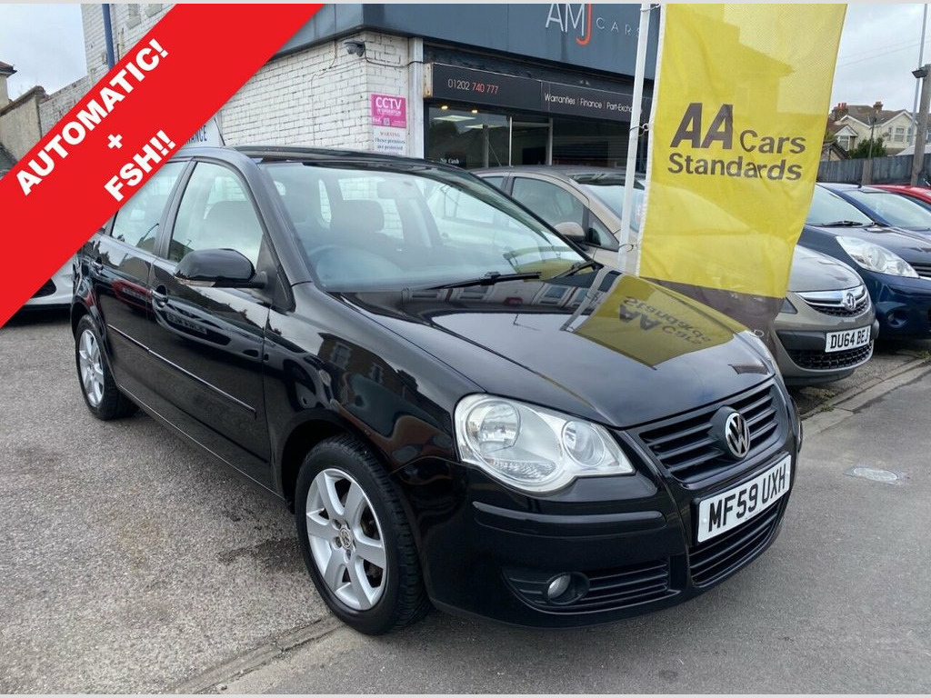 SUPER LOW MILEAGE AUTOMATIC POLO. CLEAN CONDITION THROUGHOUT WITH FULL SERVICE HISTORY, FRESH SERVICE AND NEW MOT. FINISHED IN METALLIC BLACK COLOUR. SPEC INCLUDES ALLOY WHEELS, FRONT FOGLIGHTS, CLOTH INTERIOR, ELECTRIC WINDOWS, CENTRAL LOCKING, CD/ RADIO, A/C.  **FINANCE AVAILABLE** We work with many finance providers to give you the best range of finance packages on offer that suit you, ranging from LOW DEPOSIT finance, NO DEPOSIT packages and packages to fit your personal circumstances.  **WARRANTY**  All cars come with a comprehensive 3 month warranty.  **PART EXCHANGE** We offer great rates and will take in any vehicle.  Open 7 Days A Week 8.30 - 6pm (Sunday by appointment only) Call us to make an appointment to view our great selection of good value cars. We hold stock on 2 sites107 Seaview road, Poole, Bh12 3LR 300 Ringwood Road, Poole , BH14 0RY.  Black (Metallic), Metallic Paint, Black Paint, Adjustable Steering Column/Wheel, Air Bag Driver, Air Bag Passenger, Air Bag Side, Air-Conditioning (Automatic), Alloy Wheels (15in), Anti-Lock Brakes, Body Coloured Bumpers, Central Door Locking, Centre Rear Seat Belt, Cup Holder, Electric Windows (Front), Front Fog Lights, Gear Knob Leather, Head Restraints, Heated Rear Screen, Immobiliser, In Car Entertainment (Radio/CD/MP3), Mirrors External, Power Socket, Power-Assisted Steering, Rear Wash/Wipe, Rev Counter, Seat - ISOFIX Anchorage Point, Seat Belt Pre-Tensioners, Seat Height Adjustment, Seats Split Rear, Side Protection Mouldings, Spare Wheel (Full Size Steel), Speakers, Steering Wheel Lea