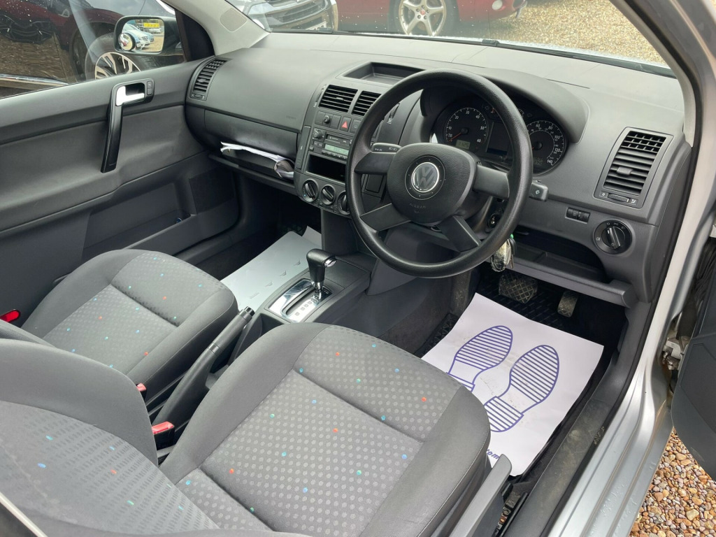 For sale is a 2003 Volkswagen Polo 1.4 S Hatchback with an automatic transmission, just reached 99000 miles, and is ULEZ compliant. This car runs on petrol and comes with a valid MOT until 18/08/2026. The hatchback has 3 doors and 5 seats, making it a practical option for families or individuals. The vehicle is equipped with features such as adjustable steering column/wheel, air-conditioning, cup holder, electric windows, and in-car entertainment system with radio/cassette. With a low 182 g/km CO2 emission and 75 bhp, this car provides a comfortable and efficient driving experience., justable steering column/wheel, air-conditioning - climatic semi-auto, cup holder - front, electric windows (front), in car entertainment (radio/cassette), seat height adjustment, speakers, upholstery cloth, air bag driver, air bag passenger, air bag side, anti-lock brakes, central door locking, centre rear seat belt, head restraints, immobiliser, power-assisted steering, body coloured bumpers, mirrors external, spare wheel (full size)