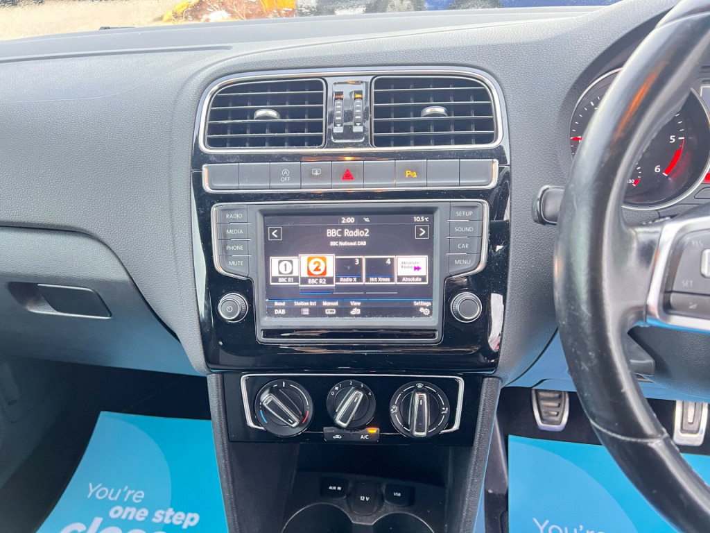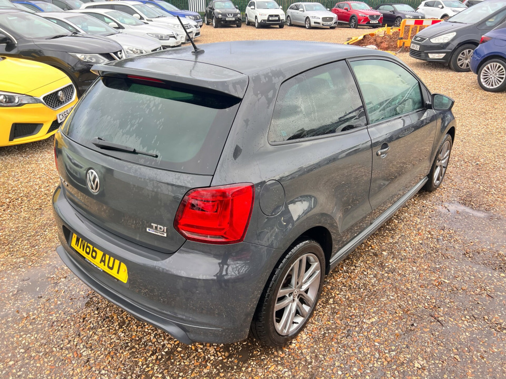 This 2016 Volkswagen Polo 1.4 TDI BlueMotion Tech R-Line Hatchback has a mileage of 103485 miles and is powered by a diesel engine, making it a ULEZ compliant vehicle perfect for city driving. With a fresh MOT on sale, this efficient car features 5 seats and 3 doors, providing enough space for passengers and cargo. The sleek design includes 16in Alloy Wheels - Salvador, a Black Radiator Grille with Chrome Trim, Body Coloured Door Handles and Mirrors with Integrated Indicators, front and rear parking sensors, DAB radio, air conditioning, Body Coloured Rear Spoiler, and Chrome Trimmed Front Air Intake Surround, making it stylish and modern. With Euro 6 (s/s) emissions, this hatchback is both environmentally friendly and economical to run.- Full dealer service history - 2 keys - Finance available- Extended warranties available- Part exchange welcomeTAG 31 in alloy wheels - salvador, black radiator grille with chrome trim, body coloured door handles and mirrors with integrated indicators, body coloured rear spoiler, chrome trimmed front air intake surround, door mirrors - electrically adjustable and heated, electric windows - front, extended sill strips - flared in body colour, heated rear windscreen - automatically switches off, r-line styling pack, spare wheel - 15in steel, tinted glass - heat insulating rear 65 percent light absorbing from b pillar backwards, unique r-line badging on front grille, white turn signal lights at rear, abs - anti-lock braking system with hba - hydraulic brake assist, airbags - side head and thorax for front passenger, alarm with interior protection, cruise and park pack, drivers and front passengers airbags, edl electronic differential lock and asr traction control, esc electronic stability control with automatic post collision braking and hill hold control, electronic engine immobiliser, height-adjustable front three-point seat belts with tensioners, isofix child seat preparation for 2 rear seats, rear windscreen washer and wiper with interval delay, remote central locking with 2 remote folding keys, three rear 3-point seat belts, two-tone horn, warning buzzer and light for front seat belts if unfastened, air conditioning - manual, air vent surrounds - matt chrome, aluminium look pedals, armrest - front centre with storage compartment, bag hooks in the luggage compartment, black rooflining internal grab handles and sun visors, carpet mats - front and rear, carpet mats - front and rear with red stitching, centre console with open storage and 12v socket with cover, cup holders - front x2, door sill protectors in stainless steel with r-line logo, drivers and front passengers safety optimised head restraints, drivers and front passengers seat height adjustment, drivers and front passengers sun visors with vanity mirrors, dust and pollen filter, easy entry sliding seats, front seat back storage pockets, front sports seats, front windscreen washers and wipers with 4 speeds including interval delay, gear lever gaiter surround - matt chrome, glovebox, grab handles front x2 rear x2 with integrated coat hooks, heating and ventilation with 4 speed fan and air recirculation, height and reach adjustable steering wheel, high gloss black decorative inserts, instrument lighting - white adjustable panel illumination, interior lighting delay, leather trimmed multifunction steering wheel with r-line logo, load sill protector, luggage compartment - variable load floor, luggage compartment cover - removable, luggage compartment light, manually dimmable interior rear-view mirror, matt chrome - handbrake grip button, matt chrome - internal door handles, note pad holder - pen holder - coin holder in glovebox, reading lights - front x2 & rear x1, speedo and rev counter - electronic odometer - trip - service interval display - digital clock and fuel gauge, split folding rear backrests 60-40, storage compartment in front doors, three rear head restraints, vanity mirrors - illuminated, bluetooth phone connectivity, composition media system, cruise control, driver alert system, multi-function display, multifunction computer, parking sensors - front and rear, power assisted steering - speed sensitive, tyre pressure loss indicator, front fog lights with static cornering function, high level 3rd brake light, led headlights for dipped and main beam, lights on warning buzzer
