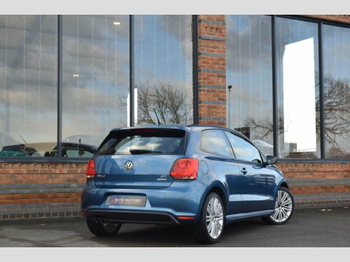 Rom Motors present for sale this lovely Polo Blue GT which is finished in the iconic Blue Silk metallic; this really suits this particular model. This example has been serviced almost every year throughout it's life and has been maintained very well by it's previous owners. These 1.4tsi Polo's have great performance but don't sting the bank account with running costs as it has low insurance and great MPG. They come with air conditioning, cruise control and bluetooth connectivity from standard, with colour matched interior trim which works really well with the Blue Silk paintwork. This is a lovely example with low mileage and low owners, for a car that is nearing 13 years old! Supplied with 1 key. BlueSpeed Cloth - Blue Speed, Blue Silk, 12V Socket with Cover, 17in Alloy Wheels - Montani, ABS - Anti-Lock Braking System, ASR - Anti Slip Regulation, Air Conditioning - Manual, Air Vent Surrounds - Matt Chrome, Airbags - Driver, Airbags - Front Passenger, Airbags - Side Head and Thorax for Front, Alarm with Interior Protection, Anti-Theft Wheel Bolts, Aux-In Socket, Bluetooth Connection - Touch Phone Kit, Body Coloured Bumpers, Body Coloured Door Handles, Body Coloured Rear Spoiler, Body Coloured Side Sills, Body-Coloured Door Mirrors with Integrat, Central Locking - Remote with 2 Remote K, Centre Console with Open Storage Compart, Cruise Control, Cup Holders - Front x2, DAB+ - Digital Ra