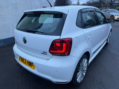 ***VIEWING BY APPOINTMENT ONLY***1 OWNER WITH MOT:NOVEMBER 2026***WILL BE FULLY SERVICED***12 MONTHS SILVER WARRANTY WITH BREAKDOWN COVER INCLUDED***2013 /63 REG. VW Polo 1.4 BlueGT Tech blue motion presents an exceptional opportunity with its remarkably low mileage of just Only 13009 miles , Automatic Stop/Start, blue motion technology 50mpg + . Finished in White . This vehicles is complimented with Grey/Blue leather alcntara trim & black headlining with tailored Vw over mats . The GT model comes with height adjustable sports seats & leather flat bottom steering wheel incorporating gear change paddle shifters and a retractable Centre armrest . Additional features include ; automatic digital Air-Con , front & rear electric windows, remote central locking and immobilizer ,power folding mirrors in satin black finish, twin chrome GT exhaust trims, unmarked 17in multi spoke alloy wheels with good quality tires, rear parking sensors, rear glass , rear boot spoiler & diffuser . This vehicle has been freshly serviced a has recently had a new MOT ( with no advisories) it has then been professionally valetedThe performance of this Polo is a standout feature, offering a brisk 0-62mph acceleration time of 7.8 seconds, which is notably quicker than many other vehicles in its class. Furthermore, its impressive fuel economy of 60 mpg means you can enjoy your drives while being mindful of running costs, making it a sensible choice for everyday use.. 12V Socket - Centre Console, ABS - Anti-Lock Braking System, ASR - Anti Slip Regulation, Air Vent Surrounds - Matt Chrome, Airbags - Driver, Airbags - Front Passenger, Airbags - Front Side Head, Airbags - Front Thorax, Alarm with Interior Protection, Anti-Theft Wheel Bolts, Automatic Post-Collision Braking System, Aux-In Socket, Black Gloss Instrument Surrounds, BlueGT Styling Pack, Body Coloured Bumpers, Body Coloured Side Sills, Bumpers - Front and Rear - Uniquely Shaped, Car Information Display, Carpet - Black, Composition Media System, Cup Holders - Front x2, Darkened Rear Tail Lights, Dashboard - Titan Black, Daytime Running Lights, Door Handles - Black, Door Mirrors - Electrically Adjustable and Heated, Door Mirrors - Gloss Black with Integrated Indicators, Driver Alert System, Dust and Pollen Filter, ESC - Electronic Stability Control, Electric Windows - Front and Rear, Electronic Engine Immobiliser, Exhaust Tailpipes - Twin, Front Fog Lights with Cornering Lights, Front Sports Seats, Front Windscreen Washers and Wipers with 4 Speeds including Interval Delay, Galvanised Body, Gear Knob - Leather, Gear Lever Gaiter Surround - Matt Chrome, Glovebox, Grab Handles - Front x2 Rear x2 with Coat Hooks, HBA - Hydraulic Brake Assist, Handbrake Grip Button - Matt Chrome, Head Restraints - Front Whiplash Optimised, Heated Rear Windscreen, Height and Reach Adjustable Steering Wheel, High Gloss Black Decorative Inserts, High Level 3rd Brake Light, Hill Hold Assist, ISOFIX Child Seat Preparation for 2 Rear Seats, Inlays - Gloss Black, Instrument Lighting - White Adjustable Panel Illumination, Interior Lighting Delay, Leather Trimmed Handbrake Grip, Lights on Warning Buzzer, Load Sill Protector, Luggage Compartment - Hooks x2, Luggage Compartment - Variable Load Floor, Luggage Compartment Cover - Removable, Luggage Compartment Light, MDI - Multi Device Interface, MP3 Compatible CD Player, Matt Chrome - Internal Door Handles, Matt Chrome Light Switch Surround, Multi-function Display, Multifunction Computer, Power Assisted Steering - Speed Sensitive, Radiator Grille - Gloss Black with Chrome Trimmed Louvre, Roof Lining - Black, SD Card Reader, Seats - Height Adjustment - Front, Sound Output - 4x20 Watt, Spare Wheel - Full Size, Speakers x8, Split Folding Rear Backrests 60-40, Steering Wheel - 3-Spoke - Leather Trimmed, Steering Wheel - Multifunction, Steering Wheel - Paddle Shift, Storage Compartment in Centre Console, Storage Compartment in Front Doors, Storage Compartment in Rear Doors, Sun Visors - Vanity Mirrors and Illuminated x2, Sunglasses Holder, Suspension - Sports - Lowered by Approx 15mm, Think Blue - Trainer - Driver Tips - Journey Analysis, Three Rear Head Restraints, Tinted Glass - Heat Insulating Green, Title and Cover Art Display, Tyre Pressure Loss Indicator, Tyres - Low Rolling Resistance, Under Seat Drawers - Front, Unique BlueGT Badging, Uniquely Shaped Side Skirt, Warning Buzzer and Light for Front Seat Belts if Unfastened, XDS Electronic Differential Lock, SUPPLIED WITH 12 MONTHS SILVER MECHANICAL BREAKDOWN WARRANTY COVER PARTS & LABOUR INCLUDED WITH BREAKDOWN COVER ON ADVERTISING PRICE OF THE CAR, FOR EVEN MORE LOW VALUE LOW GROUP INSURANCE CARS PLEASE VISIT OUR WEBSITE www.tucars.co.uk, OR VISIT OUR INDOOR SHOWROOW, BlueSpeed Cloth with Alcantara Side Bolsters - Titan Black-Olympia Blue-Crystal Grey, 17in Alloy Wheels - Montani Anthracite, Rear Parking Aid, Cruise Control - Adaptive, Headlights - Bi-Xenon - Gas Discharged, Air Conditioning - Electronic Climate Control, Door Mirrors - Electrically Folding, Armrest - Front Centre with Storage Compartment, Tinted Glass - Heat Insulating Rear 65 Percent Light Absorbing from B Pillar Backwards, Carpet Mats - Front and Rear. Full service history