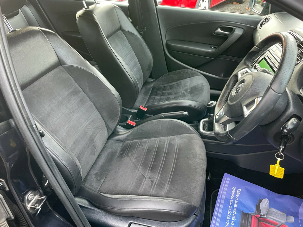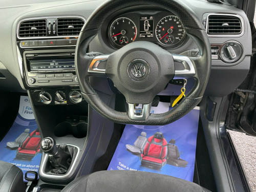 £20 ROAD TAX - LOW MILEAGE AND FULL SERVICE HISTORY WITH VW - This 2013 Volkswagen Polo 1.4 TSI BlueMotion Tech ACT BlueGT Hatchback in sleek black boasts an impressive 57,794 miles on the clock, with a petrol engine and manual transmission. With 5 seats and 5 doors, this ULEZ compliant vehicle is ideal for city drives. The MOT is valid until 05/09/2026, offering peace of mind to the new owner. Featuring 17in alloy wheels, body-colored bumpers, a rear spoiler, side sills, and door mirrors with integrated indicators, this hatchback is both stylish and practical. With Euro 5 emissions and 140 ps, this Polo offers a thrilling drive while remaining environmentally friendly., in alloy wheels - montani, body coloured bumpers, body coloured rear spoiler, body coloured side sills, body-coloured door mirrors with integrated indicators, door mirrors - electrically adjustable and heated, door mirrors - gloss black with integrated indicators, electric windows - front and rear, heated rear windscreen - automatically switches off, load lip protective shield, radiator grille - gloss black with chrome trimmed louvre, spare wheel - space saver steel, abs - anti-lock braking system, asr - anti slip regulation, airbags - driver, airbags - front passenger, airbags - side head and thorax for front passenger, alarm with interior protection, central locking - remote with 2 remote keys, differential lock - electronic, esp - electronic stability programme, electronic engine immobiliser, hba - hydraulic brake assist, isofix child seat preparation for 2 rear seats, seatbelt reminder, xds electronic differential lock, air conditioning - manual, air vent surrounds - matt chrome, centre console with open storage and 12v socket with cover, cup holders - front x2, drivers seat height adjustment, dust and pollen filter, glovebox, grab handles - front x2 rear x2 with coat hooks, head restraints - front whiplash optimised, heating & ventilation system with 4 speed fan and air recirculation switch, height and reach adjustable steering column, instrument lighting - white adjustable panel illumination, interior lighting delay, luggage compartment - hooks, luggage compartment cover - removable, luggage compartment light, matt chrome light switch surround, roof lining - black, seats - front sports, split folding rear backrests 60-40, steering wheel - 3-spoke - leather trimmed, storage compartment light, storage compartment in rear doors, storage compartments in front doors, sun visors - vanity mirrors x2, three rear head restraints, variable boot floor, bluetooth connection - touch phone kit, dab+ - digital radio reception, mdi - multi device interface, rcd 310 radio - mp3 compatible cd player, cruise control, multifunction computer, parking sensors - rear, power assisted steering - speed sensitive, suspension - sports - lowered by approx 15mm, tyre pressure indicator, daytime running lights, front fog lights, headlights - halogen clear - range adjustable, high level 3rd brake light