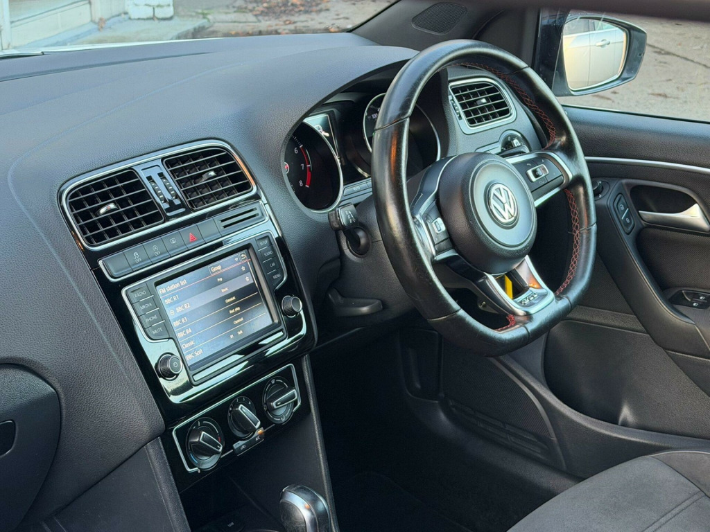 This Volkswagen Polo TSI GTI from 2015 boasts a clear vehicle history, offering you peace of mind. Under the bonnet, you'll find a responsive 1.8 litre petrol engine, meeting Euro 6 emissions standards. This model comes with the desirable GTI trim, and features include manual air conditioning for your comfort, LED headlights for improved visibility, and Bluetooth connectivity for both audio streaming and phone calls.The performance of this Polo TSI GTI is a standout, with an impressive 0-62mph acceleration time of just 6.7 seconds. This quick acceleration indicates a more engaging driving experience compared to many other vehicles in its class. The combination of its sporty nature, practical features, and strong performance makes this a compelling choice.. 12V Socket - Centre Console, 17in Alloy Wheels - Parabolica, ABS - Anti-Lock Braking System, ASR - Anti Slip Regulation, Air Conditioning - Manual, Air Vent Surrounds - Matt Chrome, Airbags - Driver, Airbags - Front Passenger, Airbags - Front Side Head, Airbags - Front Thorax, Alarm with Interior Protection, Aluminium Look Pedals, Anti-Theft Wheel Bolts, Automatic Post-Collision Braking System, Aux-In Socket, Black Gloss Instrument Surrounds, Black Honeycomb Front Air Intake and Red Detail, Bluetooth Audio Connection, Bluetooth Phone Connectivity, Body Coloured Bumpers, Body Coloured Door Handles, Body Coloured Rear Spoiler, Body-Coloured Door Mirrors with Integrated Indicators, Brake Calipers - Red, Bumpers - Front and Rear - Uniquely Shaped, Car Information Display, Carpet - Black, Carpet Mats - Front and Rear with Red Stitching, Central Locking - Remote with 2 Remote Keys, Colour Touch Screen - 6.5in, Composition Media System, Cup Holders - Front x2, DAB+ - Digital Radio Reception, Darkened Rear Tail Lights, Dashboard - Titan Black, Dashboard and Centre Console - GTI Style Decorative Inserts, Daytime Running Lights - LED, Door Mirrors - Electrically Adjustable and Heated, Door Sill Protectors - Stainless Steel with GTI Logo, Door Sill Strip in Stainless Steel, Driver Alert System, Dust and Pollen Filter, ESC - Electronic Stability Control, Electric Windows - Front, Electronic Engine Immobiliser, Exhaust Tailpipes - Chrome Twin, Extended Sill Strips - Flared in Black, Front Fog Lights with Cornering Lights, Front Seat Back Storage Pockets, Front Sports Seats, Front Windscreen Washers and Wipers with 4 Speeds including Interval Delay, GTI Styling Pack, Galvanised Body, Gear Knob - Leather, Gear Lever Gaiter Surround - Matt Chrome, Glovebox, Grab Handles - Front x2 Rear x2 with Coat Hooks, HBA - Hydraulic Brake Assist, Handbrake Grip Button - Matt Chrome, Head Restraints - Front Whiplash Optimised, Headlight Washer System, Headlights - Automatic Range Adjustment, Headlights - LED, Heated Rear Windscreen, Height and Reach Adjustable Steering Wheel, High Level 3rd Brake Light, Hill Hold Assist, ISOFIX Child Seat Preparation for 2 Rear Seats, Inlays - Gloss Black, Instrument Lighting - White Adjustable Panel Illumination, Interior Lighting Delay, Keys - Two Remote Control Folding Keys, LED Rear Number Plate Lights, Leather Trimmed Handbrake Grip, Lights on Warning Buzzer, Load Sill Protector, Low Washer Fluid Warning Light, Luggage Compartment - Hooks x2, Luggage Compartment Cover - Removable, Luggage Compartment Light, MDI - Multi Device Interface, MP3 Compatible CD Player, Matt Chrome - Internal Door Handles, Multi-function Display, Multifunction Computer, Power Assisted Steering - Speed Sensitive, Reading Lights - Front x2, Reading Lights - Rear, Roof Lining - Black, SD Card Reader, SMS Functionality - Read - Compose and Send SMS Messages Using Touch Screen Display - Android Compatible Smartphones Only, Seats - Easy Entry Sliding Front, Seats - Height Adjustment - Front, Simultaneous Pairing of 2 Compatible Mobile Devices, Sound Output - 4x20 Watt, Spare Wheel - 16in Steel, Speakers x8, Split Folding Rear Backrests 60-40, Steering Wheel - 3-Spoke Leather Trimmed with GTI Logo, Steering Wheel - Multifunction, Steering Wheel - Paddle Shift, Steering Wheel - Red Stitching, Storage Compartment in Centre Console, Storage Compartment in Front Doors, Sun Visors - Vanity Mirrors and Illuminated x2, Sunglasses Holder, Suspension - Sports - Lowered by Approx 15mm, Think Blue - Trainer - Driver Tips - Journey Analysis, Three Rear Head Restraints, Tinted Glass - Heat Insulating Rear 65 Percent Light Absorbing from B Pillar Backwards, Title and Cover Art Display, Tyre Pressure Loss Indicator, USB Socket, Under Seat Drawers - Front, Unique GTI Badging, Warning Buzzer and Light for Front Seat Belts if Unfastened, XDS Electronic Differential Lock.
