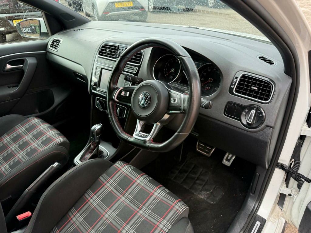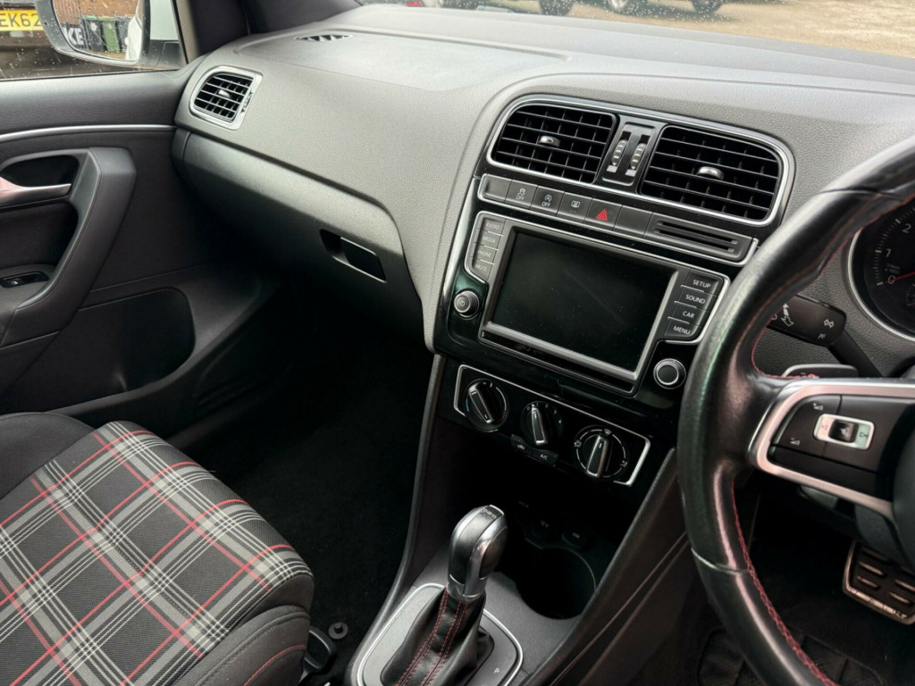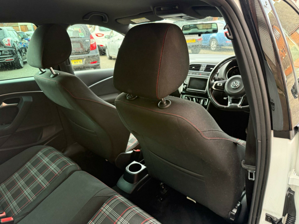 THIS POLO GTI IS IN STUNNING CONDITION THROUGHOUT. 12 MONTHS MOT,FULL SERVICE HISTORY AND 2 KEYS. NEED FINANCE? PLEASE GIVE US A CALL OR VISIT OUR WEBSITE TO QUOTE OR APPLY ONLINE.VIEWING ESSENTIAL. This 2016 Volkswagen Polo TSI GTI offers an exciting driving experience with its impressive acceleration. Under the bonnet, you'll find a potent 1.8 litre petrol engine, compliant with Euro 6 emissions standards, ensuring a balance of performance and efficiency. This particular model comes equipped with desirable features such as manual air conditioning to keep you comfortable, LED headlights for enhanced visibility, and seamless Bluetooth connectivity for both phone calls and audio streaming.The GTI trim level signifies a sportier and more engaging drive, and this Polo is no exception. Its ability to accelerate from 0 to 62 miles per hour in just 6.7 seconds highlights its dynamic capabilities, setting it apart from many other vehicles in its class. This swift acceleration means you can enjoy responsive performance whether you're navigating city streets or embarking on longer journeys., v socket - centre console, 17in alloy wheels - parabolica, abs - anti-lock braking system, asr - anti slip regulation, air conditioning - manual, air vent surrounds - matt chrome, airbags - driver, airbags - front passenger, airbags - front side head, airbags - front thorax, alarm with interior protection, aluminium look pedals, anti-theft wheel bolts, automatic post-collision braking system, aux-in socket, black gloss instrument surrounds, black honeycomb front air intake and red detail, bluetooth audio connection, bluetooth phone connectivity, body coloured bumpers, body coloured door handles, body coloured rear spoiler, body-coloured door mirrors with integrated indicators, brake calipers - red, bumpers - front and rear - uniquely shaped, car information display, carpet - black, carpet mats - front and rear with red stitching, central locking - remote with 2 remote keys, colour touch screen - 6.5in, composition media system, cup holders - front x2, dab+ - digital radio reception, darkened rear tail lights, dashboard - titan black, dashboard and centre console - gti style decorative inserts, daytime running lights - led, door mirrors - electrically adjustable and heated, door sill protectors - stainless steel with gti logo, door sill strip in stainless steel, driver alert system, dust and pollen filter, esc - electronic stability control, electric windows - front and rear, electronic engine immobiliser, exhaust tailpipes - chrome twin, extended sill strips - flared in black, front fog lights with cornering lights, front seat back storage pockets, front sports seats, front windscreen washers and wipers with 4 speeds including interval delay, gti styling pack, galvanised body, gear knob - leather, gear lever gaiter surround - matt chrome, glovebox, grab handles - front x2 rear x2 with coat hooks, hba - hydraulic brake assist, handbrake grip button - matt chrome, head restraints - front whiplash optimised, headlight washer system, headlights - automatic range adjustment, headlights - led, heated rear windscreen, height and reach adjustable steering wheel, high level 3rd brake light, hill hold assist, isofix child seat preparation for 2 rear seats, inlays - gloss black, instrument lighting - white adjustable panel illumination, interior lighting delay, keys - two remote control folding keys, led rear number plate lights, leather trimmed handbrake grip, lights on warning buzzer, load sill protector, low washer fluid warning light, luggage compartment - hooks x2, luggage compartment cover - removable, luggage compartment light, mdi - multi device interface, mp3 compatible cd player, matt chrome - internal door handles, multi-function display, multifunction computer, power assisted steering - speed sensitive, reading lights - front x2, reading lights - rear, roof lining - black, sd card reader, sms functionality - read - compose and send sms messages using touch screen display - android compatible smartphones only, seats - height adjustment - front, simultaneous pairing of 2 compatible mobile devices, sound output - 4x20 watt, spare wheel - 16in steel, speakers x8, split folding rear backrests 60-40, steering wheel - 3-spoke leather trimmed with gti logo, steering wheel - multifunction, steering wheel - paddle shift, steering wheel - red stitching, storage compartment in centre console, storage compartment in front doors, storage compartment in rear doors, sun visors - vanity mirrors and illuminated x2, sunglasses holder, suspension - sports - lowered by approx 15mm, think blue - trainer - driver tips - journey analysis, three rear head restraints, tinted glass - heat insulating rear 65 percent light absorbing from b pillar backwards, title and cover art display, tyre pressure loss indicator, usb socket, under seat drawers - front, unique gti badging, warning buzzer and light for front seat belts if unfastened, xds electronic differential lock
