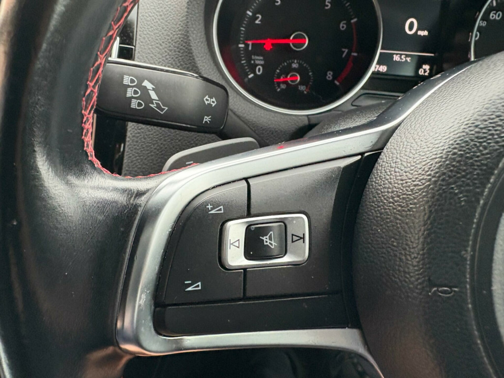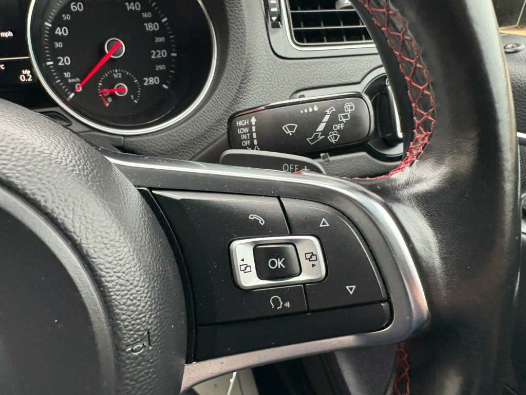 . 12V Socket - Centre Console, 17in Alloy Wheels - Parabolica, ABS - Anti-Lock Braking System, ASR - Anti Slip Regulation, Air Conditioning - Manual, Air Vent Surrounds - Matt Chrome, Airbags - Driver, Airbags - Front Passenger, Airbags - Front Side Head, Airbags - Front Thorax, Alarm with Interior Protection, Aluminium Look Pedals, Anti-Theft Wheel Bolts, Automatic Post-Collision Braking System, Aux-In Socket, Black Gloss Instrument Surrounds, Black Honeycomb Front Air Intake and Red Detail, Bluetooth Audio Connection, Bluetooth Phone Connectivity, Body Coloured Bumpers, Body Coloured Door Handles, Body Coloured Rear Spoiler, Body-Coloured Door Mirrors with Integrated Indicators, Brake Calipers - Red, Bumpers - Front and Rear - Uniquely Shaped, Car Information Display, Carpet - Black, Carpet Mats - Front and Rear with Red Stitching, Central Locking - Remote with 2 Remote Keys, Colour Touch Screen - 6.5in, Composition Media System, Cup Holders - Front x2, DAB+ - Digital Radio Reception, Darkened Rear Tail Lights, Dashboard - Titan Black, Dashboard and Centre Console - GTI Style Decorative Inserts, Daytime Running Lights - LED, Door Mirrors - Electrically Adjustable and Heated, Door Sill Protectors - Stainless Steel with GTI Logo, Door Sill Strip in Stainless Steel, Driver Alert System, Dust and Pollen Filter, ESC - Electronic Stability Control, Electric Windows - Front and Rear, Electronic Engine Immobiliser, Exhaust Tailpipes - Chrome Twin, Extended Sill Strips - Flared in Black, Front Fog Lights with Cornering Lights, Front Seat Back Storage Pockets, Front Sports Seats, Front Windscreen Washers and Wipers with 4 Speeds including Interval Delay, GTI Styling Pack, Galvanised Body, Gear Knob - Leather, Gear Lever Gaiter Surround - Matt Chrome, Glovebox, Grab Handles - Front x2 Rear x2 with Coat Hooks, HBA - Hydraulic Brake Assist, Handbrake Grip Button - Matt Chrome, Head Restraints - Front Whiplash Optimised, Headlight Washer System, Headlights - Automatic Range Adjustment, Headlights - LED, Heated Rear Windscreen, Height and Reach Adjustable Steering Wheel, High Level 3rd Brake Light, Hill Hold Assist, ISOFIX Child Seat Preparation for 2 Rear Seats, Inlays - Gloss Black, Instrument Lighting - White Adjustable Panel Illumination, Interior Lighting Delay, Keys - Two Remote Control Folding Keys, LED Rear Number Plate Lights, Leather Trimmed Handbrake Grip, Lights on Warning Buzzer, Load Sill Protector, Low Washer Fluid Warning Light, Luggage Compartment - Hooks x2, Luggage Compartment Cover - Removable, Luggage Compartment Light, MDI - Multi Device Interface, MP3 Compatible CD Player, Matt Chrome - Internal Door Handles, Multi-function Display, Multifunction Computer, Power Assisted Steering - Speed Sensitive, Reading Lights - Front x2, Reading Lights - Rear, Roof Lining - Black, SD Card Reader, SMS Functionality - Read - Compose and Send SMS Messages Using Touch Screen Display - Android Compatible Smartphones Only, Seats - Height Adjustment - Front, Simultaneous Pairing of 2 Compatible Mobile Devices, Sound Output - 4x20 Watt, Spare Wheel - 16in Steel, Speakers x8, Split Folding Rear Backrests 60-40, Steering Wheel - 3-Spoke Leather Trimmed with GTI Logo, Steering Wheel - Multifunction, Steering Wheel - Paddle Shift, Steering Wheel - Red Stitching, Storage Compartment in Centre Console, Storage Compartment in Front Doors, Storage Compartment in Rear Doors, Sun Visors - Vanity Mirrors and Illuminated x2, Sunglasses Holder, Suspension - Sports - Lowered by Approx 15mm, Think Blue - Trainer - Driver Tips - Journey Analysis, Three Rear Head Restraints, Tinted Glass - Heat Insulating Rear 65 Percent Light Absorbing from B Pillar Backwards, Title and Cover Art Display, Tyre Pressure Loss Indicator, USB Socket, Under Seat Drawers - Front, Unique GTI Badging, Warning Buzzer and Light for Front Seat Belts if Unfastened, XDS Electronic Differential Lock. Part service history
