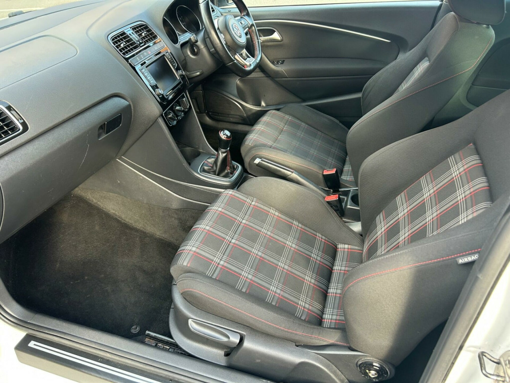 This 2015 Volkswagen Polo TSI GTI offers an exciting driving experience with its impressive acceleration.  This particular model is a Euro 6 compliant vehicle, powered by a 1.8 litre petrol engine.  It comes equipped with manual air conditioning for your comfort, LED headlights for enhanced visibility, and Bluetooth connectivity for both audio streaming and phone calls, ensuring you stay connected on every journey.The Polo TSI GTI stands out with its remarkable 0-62mph time of just 6.7 seconds, demonstrating its superior performance compared to other vehicles in its class. This combination of spirited performance and practical features makes this Volkswagen Polo a compelling choice for those seeking a dynamic and well equipped hatchback.. 12V Socket - Centre Console, 17in Alloy Wheels - Parabolica, ABS - Anti-Lock Braking System, ASR - Anti Slip Regulation, Air Conditioning - Manual, Air Vent Surrounds - Matt Chrome, Airbags - Driver, Airbags - Front Passenger, Airbags - Front Side Head, Airbags - Front Thorax, Alarm with Interior Protection, Aluminium Look Pedals, Anti-Theft Wheel Bolts, Automatic Post-Collision Braking System, Aux-In Socket, Black Gloss Instrument Surrounds, Black Honeycomb Front Air Intake and Red Detail, Bluetooth Audio Connection, Bluetooth Phone Connectivity, Body Coloured Bumpers, Body Coloured Door Handles, Body Coloured Rear Spoiler, Body-Coloured Door Mirrors with Integrated Indicators, Brake Calipers - Red, Bumpers - Front and Rear - Uniquely Shaped, Car Information Display, Carpet - Black, Carpet Mats - Front and Rear with Red Stitching, Central Locking - Remote with 2 Remote Keys, Colour Touch Screen - 6.5in, Composition Media System, Cup Holders - Front x2, DAB+ - Digital Radio Reception, Darkened Rear Tail Lights, Dashboard - Titan Black, Dashboard and Centre Console - GTI Style Decorative Inserts, Daytime Running Lights - LED, Door Mirrors - Electrically Adjustable and Heated, Door Sill Protectors - Stainless Steel with GTI Logo, Door Sill Strip in Stainless Steel, Driver Alert System, Dust and Pollen Filter, ESC - Electronic Stability Control, Electric Windows - Front, Electronic Engine Immobiliser, Exhaust Tailpipes - Chrome Twin, Extended Sill Strips - Flared in Black, Front Fog Lights with Cornering Lights, Front Seat Back Storage Pockets, Front Sports Seats, Front Windscreen Washers and Wipers with 4 Speeds including Interval Delay, GTI Styling Pack, Galvanised Body, Gear Knob - Leather, Gear Lever Gaiter Surround - Matt Chrome, Glovebox, Grab Handles - Front x2 Rear x2 with Coat Hooks, HBA - Hydraulic Brake Assist, Handbrake Grip Button - Matt Chrome, Head Restraints - Front Whiplash Optimised, Headlight Washer System, Headlights - Automatic Range Adjustment, Headlights - LED, Heated Rear Windscreen, Height and Reach Adjustable Steering Wheel, High Level 3rd Brake Light, Hill Hold Assist, ISOFIX Child Seat Preparation for 2 Rear Seats, Inlays - Gloss Black, Instrument Lighting - White Adjustable Panel Illumination, Interior Lighting Delay, Keys - Two Remote Control Folding Keys, LED Rear Number Plate Lights, Leather Trimmed Handbrake Grip, Lights on Warning Buzzer, Load Sill Protector, Low Washer Fluid Warning Light, Luggage Compartment - Hooks x2, Luggage Compartment Cover - Removable, Luggage Compartment Light, MDI - Multi Device Interface, MP3 Compatible CD Player, Matt Chrome - Internal Door Handles, Multi-function Display, Multifunction Computer, Power Assisted Steering - Speed Sensitive, Reading Lights - Front x2, Reading Lights - Rear, Roof Lining - Black, SD Card Reader, SMS Functionality - Read - Compose and Send SMS Messages Using Touch Screen Display - Android Compatible Smartphones Only, Seats - Easy Entry Sliding Front, Seats - Height Adjustment - Front, Simultaneous Pairing of 2 Compatible Mobile Devices, Sound Output - 4x20 Watt, Spare Wheel - 16in Steel, Speakers x8, Split Folding Rear Backrests 60-40, Steering Wheel - 3-Spoke Leather Trimmed with GTI Logo, Steering Wheel - Multifunction, Steering Wheel - Red Stitching, Storage Compartment in Centre Console, Storage Compartment in Front Doors, Sun Visors - Vanity Mirrors and Illuminated x2, Sunglasses Holder, Suspension - Sports - Lowered by Approx 15mm, Think Blue - Trainer - Driver Tips - Journey Analysis, Three Rear Head Restraints, Tinted Glass - Heat Insulating Rear 65 Percent Light Absorbing from B Pillar Backwards, Title and Cover Art Display, Tyre Pressure Loss Indicator, USB Socket, Under Seat Drawers - Front, Unique GTI Badging, Warning Buzzer and Light for Front Seat Belts if Unfastened, XDS Electronic Differential Lock. Full service history