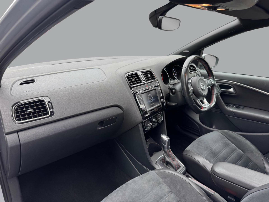 With only one owner and very low mileage of just 20,600 miles for a 2016 registration year, this Volkswagen Polo TSI GTI in GTI trim presents a unique opportunity. Featuring a 1.8L petrol engine and meeting Euro 6 emission standards, this Polo has a clear vehicle history check and a long MOT validity through December 2025 for added peace of mind. The interior boasts Alcantara with microfibre side bolsters in Titan Black, complemented by a panoramic sunroof with electric and sliding-tilting glass. The Winter Pack includes heated seats, while the Parking Pack offers front and rear parking assistance. A front centre armrest with a storage compartment adds to the convenience.This Polo GTI stands out with its impressive acceleration, reaching 0-62mph in just 6.7 seconds, demonstrating its superior performance compared to similar vehicles. This combination of features and condition makes it a compelling choice for those seeking a well-maintained and sporty hatchback. in alloy wheels - parabolica, abs - anti-lock braking system with hba - hydraulic brake assist, air conditioning - manual, air vent surrounds - matt chrome, airbags - side head and thorax for front passenger, alarm with interior protection, aluminium look pedals, automatic post-collision braking system, bag hooks in the luggage compartment x2, black gloss instrument surrounds, black rooflining internal grab handles and sun visors, bluetooth phone connectivity, body coloured door handles, body coloured rear spoiler, body-coloured door mirrors with integrated indicators, brake calipers - red, carpet mats - front and rear, centre console with open storage and 12v socket with cover, chrome trimmed front air intake surround, composition media system, cup holders - front x2, darkened rear light cluster, dashboard and centre console - gti style decorative inserts, door mirrors - electrically adjustable and heated, door sill protectors - stainless steel with gti logo, driver alert system, drivers and front passengers airbags, drivers and front passengers safety optimised head restraints, drivers and front passengers sun visors with vanity mirrors, dust and pollen filter, esc - electronic stability control including edl - electronic differential lock and asr - traction control, electric windows - front, electric windows - rear, electronic engine immobiliser, exhaust tailpipes - chrome twin, extended sill strips - flared in black, front fog lights with static cornering function, front seat back storage pockets, front sports seats with height adjustment, front windscreen washers and wipers with 4 speeds including interval delay, gti styling pack, gear lever gaiter surround - matt chrome, glovebox, grab handles front x2 rear x2 with integrated coat hooks, heated rear windscreen - automatically switches off, heating and ventilation with 4 speed fan and air recirculation, height adjustable front seats with under seat drawers, height and reach adjustable steering wheel, height-adjustable front three-point seat belts with tensioners, high level 3rd brake light, hill hold function, honeycomb radiator grille with red stripe, isofix child seat preparation for 2 rear seats, instrument lighting - white adjustable panel illumination, interior lighting with delayed switch off, led headlights for dipped and main beam, leather trimmed multifunction steering wheel with gti logo red stitching and paddle shift, lights on warning buzzer, load sill protector, luggage compartment cover - removable, luggage compartment light, manually dimmable interior rear-view mirror, matt chrome - handbrake grip button, matt chrome - internal door handles, multifunction computer, note pad holder - pen holder - coin holder in glovebox, power assisted steering - speed sensitive, reading lights - front x2 & rear x1, rear tinted glass from b pillar backwards - approx 65 percent tinted, rear windscreen washer and wiper with interval delay, remote central locking with 2 remote folding keys, spare wheel - 16in steel, speedo and rev counter - electronic odometer - trip - service interval display - digital clock and fuel gauge, split folding rear backrests 60-40, storage compartment in front doors, storage compartment in rear doors, sunglasses holder, suspension - sports - lowered by approx 15mm, three rear 3-point seat belts, three rear head restraints, two-tone horn, tyre pressure loss indicator, unique gti badging, vanity mirrors - illuminated, warning buzzer and light for front seat belts if unfastened, xds electronic differential lock