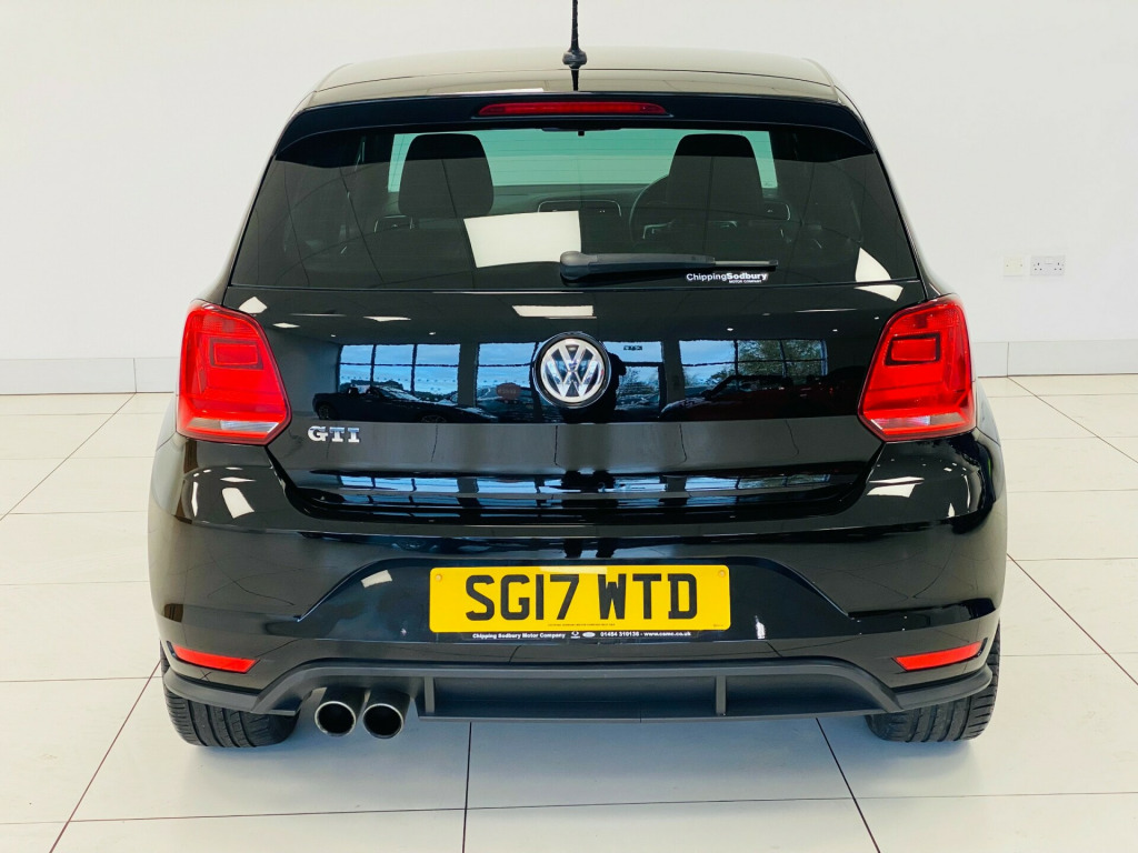 Chipping Sodbury Motor Company are pleased to present this rare 2017 Volkswagen Polo GTI in Midnight Black. Stand out from the crowd with this VW Polo GTI - a perfect blend of performance, style, and practicality.Powered by Volkswagen's renowned 1.8 TSI engine, this hot hatch delivers the excitement of a GTI with everyday comfort and reliability.Key Features:•GTI Style Pack - signature red accents, sporty trim, and GTI badging•Privacy Glass - sleek looks with added comfort and security•Air Conditioning - stay cool and comfortable on every drive•Bluetooth Hands-free - stay connected safely on the go•Service History - maintained and cared for•ULEZ & Clean Air Zone compliant - drive anywhere without extra chargesWith its sharp handling, punchy performance, and iconic GTI heritage, this Polo is ideal for drivers who appreciate precision engineering and sporty flair.Don't miss this opportunity to own one of the most desirable compact performance cars on the road.Contact now to arrange a viewing before it's gone! Looking to finance your new car? We can help, call one of our team today to run through what options are available or for a personal quotation. Got a part exchange? We can help there too, we are always looking for quality used vans and cars so will offer a competitive part exchange figure., s - anti-lock braking system with hba - hydraulic brake assist, esc - electronic stability control including edl - electronic differential lock and asr - traction control, height-adjustable front three-point seat belts with tensioners, hill hold function, three rear 3-point seat belts, xds electronic differential lock, 12v auxillary power socket, air conditioning, airbags, alarm, auxillary audio input, bluetooth hands free , cd player, clean air zone compliant, dab radio , driver alert, electric front windows, electric rear windows, electrically adjustable wing mirrors, engine immobiliser, front fog lights, interior ambient lighting, leather trimmed gear knob, leather trimmed steering wheel, led daytime running lights, led headlights, post collision braking, privacy glass, rake & reach adjustable steering column, red brake calipers, remote central locking, steering wheel mounted audio controls, ulez compliant, usb audio interface, gti style pack, 17'' Alloys