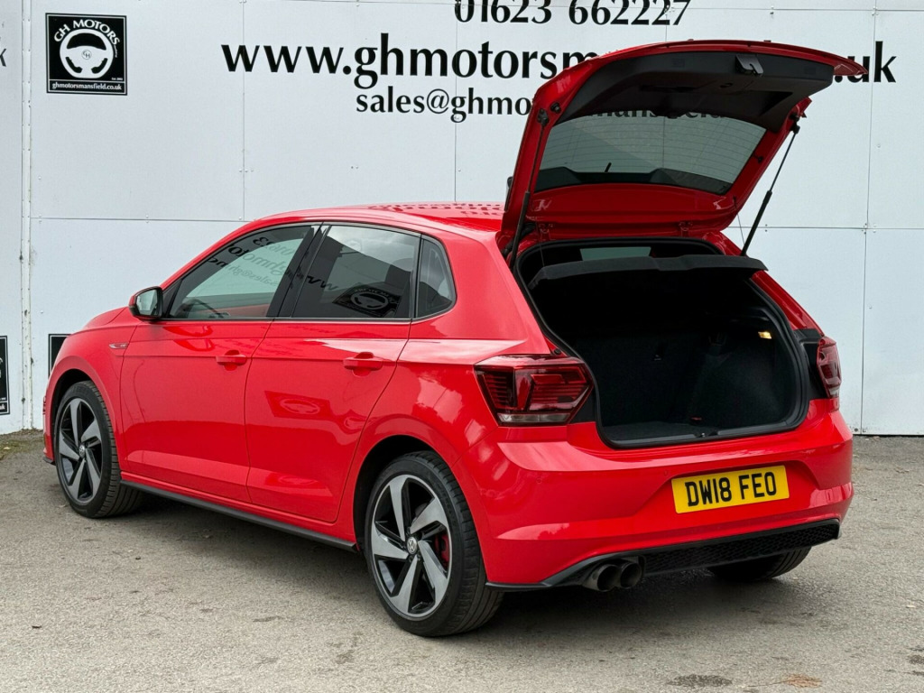 12 MONTHS WARRANTY £299,This 2018 Volkswagen Polo TSI GTI offers an exhilarating driving experience with its impressive acceleration. This Euro 6 compliant model boasts a powerful 2.0 litre petrol engine, delivering a brisk 0-62mph in just 6.7 seconds.  Equipped with Halogen Clear Headlights that feature automatic activation and separate daytime running lights, you'll benefit from enhanced visibility.  Inside, the Composition Media System includes Bluetooth connectivity, and for seamless smartphone integration, Car-Net App Connect supports both Android Auto and Apple CarPlay.The Polo TSI GTI also prioritises convenience and safety with manual air conditioning to keep you comfortable and front and rear parking sensors to assist with manoeuvring. These features collectively demonstrate the advanced technology and thoughtful design packed into this Volkswagen, setting it apart from other vehicles in its class and providing a superior driving and ownership experience.. 17in Alloy Wheels - Parker, 3 Rear Three-Point Seat Belts with Tensioners on Outer Seats, ABS - Anti-Lock Braking System with HBA - Hydraulic Brake Assist, Air Conditioning - Manual, Alarm with Interior Protection with Deactivation via Infotainment System, Aluminium Look Pedals, Automatic Post-Collision Braking System, Bag Hooks in the Luggage Compartment x2, Black Gloss Instrument Surrounds, Black Radiator Grille with Chrome Trimmed Louvres, Black Roofling and Sun Visors, Body Coloured Bumpers and Side Sills, Body Coloured Door Handles and Mirrors with Integrated Indicators, Car-Net App Connect, Carpet Mats - Front and Rear with Red Stitching, Centre Console with Open Storage Compartment, Chrome Effect Handbrake Grip Button, Chrome Exhaust Twin Tailpipe, Chrome Plated Air Vent Surrounds, Chrome Plated Electric Mirror Adjustment Switch Surround, Chrome Plated Electric Window Button Surrounds, Composition Media System, Cup Holders - Front x2 and 12v Socket with Cover, Curtain Airbag System for Front and Rear Passengers including Side Airbags in the Front, DataPlug, Decorative Inserts - Velvet Red, Door Mirrors - Electrically Adjustable and Heated, Door Sill Protectors - Stainless Steel with GTI Logo, Driver Alert System, Driver Profile Selection, Drivers and Front Passengers Airbags with Front Passenger Airbag Deactivation Switch, Drivers and Front Passengers Safety Optimised Head Restraints, Drivers and Front Passengers Sun Visors with Illuminated Vanity Mirrors, Dust and Pollen Filter, ESC - Electronic Stability Control, Electric Windows - Front and Rear, Electronic Engine Immobiliser, Extended Sill Strips - Flared in Black, Front Assist - Radar Sensor Controlled Distance Monitoring System - City Emergency Braking System and Predictive Pedestrian Protection, Front Fog Lights with Static Cornering Function, Front Seat Back Storage Pockets, Front Sports Seats with Height and Lumbar Adjustment, Front Windscreen Washers and Wipers with 4 Speeds including Interval Delay, GTI Styling Pack, Gear Lever Gaiter in Black Trim Surround, Glovebox, Halogen Clear Headlights Range Adjustable with Separate Daytime Running Lights including Automatic Headlights On, Heated Rear Windscreen - Automatically Switches Off, Height and Reach Adjustable Steering Wheel, Height-Adjustable Front Three-Point Seat Belts with Tensioners, High Level 3rd Brake Light, Hill Hold Control, Honeycomb Radiator Grille with Red Stripe, ISOFIX Child Seat Preparation, Instrument Lighting - White Adjustable Panel Illumination, Interior Lighting with Delayed Switch Off, LED Darkened Rear Light Clusters, LED Tail Lights, Leather Trimmed Multifunction Steering Wheel with GTI Logo and Red Stitching, License Plate with LED Illumination, Lights on Warning Buzzer, Luggage Compartment Cover - Removable, Luggage Compartment Light, Manual Coming-Automatic Leaving Home Lighting Function, Multifunction Computer Plus, Parking Sensors - Front and Rear, Power Assisted Steering - Speed Sensitive, Premium USB Cable, Rear Spoiler in Gloss Black, Rear Windscreen Washer and Wiper with Interval Delay - Reverse Activated, Red Brake Callipers, Remote Central Locking with 2 Remote Folding Keys, Seats - Front Lumbar Support, Seats - Height Adjustment - Front, Spare Wheel - Space Saver, Speedo and Rev Counter - Electronic Odometer - Trip - Service Interval Display - Digital Clock and Fuel Gauge, Split Folding Rear Backrests 60-40, Steering Wheel - Paddle Shift, Storage Compartment Under Front Seats, Storage Compartment in Front and Rear Doors, Suspension - Sports - Lowered by Approx 15mm, Three Rear Head Restraints, Tinted Glass - Heat Insulating Green, Tool Kit and Jack, Two-Tone Horn, Tyre Pressure Monitoring System, Unique GTI Badging, Warning Buzzer and Light for Front and Rear Seat Belts if Unfastened, XDS Electronic Differential Lock for Improved Traction and Handling.