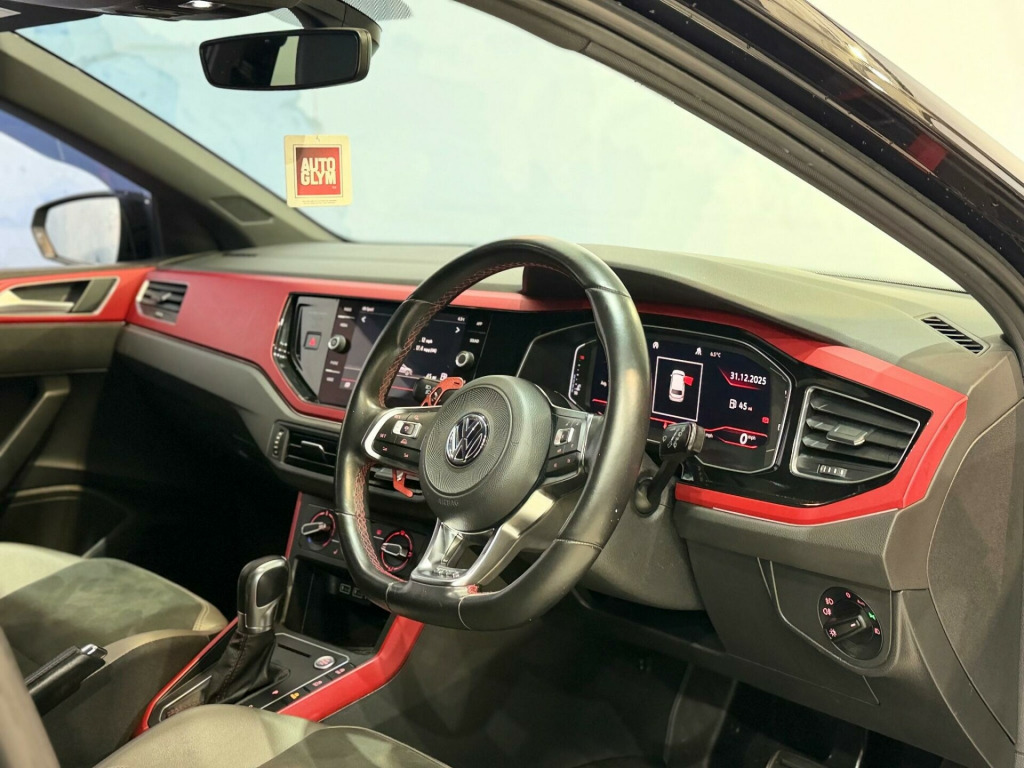 This 2018 Volkswagen Polo TSI GTI+ presents a compelling blend of performance and comfort, boasting a powerful 2.0L petrol engine and meeting Euro 6 emission standards. Inside, you'll find a sophisticated Art Velours seat centre section with Micro Fibre side bolsters in Titan Black, complemented by a striking Velvet Red dashpad. This model is equipped with the desirable Winter Pack, ensuring cosy journeys with heated seats, while the Blind Spot Detection system, complete with Rear Traffic Alert and Blind Spot Assistance, enhances safety. For added convenience, a rear view camera with parking assistance is also included.Experience exhilarating performance with this Polo TSI GTI+, capable of accelerating from 0 to 62mph in just 6.7 seconds, a testament to its dynamic capabilities. This impressive acceleration indicates a superior driving experience compared to many other vehicles in its class. The dual zone climate control ensures a comfortable cabin temperature for all occupants, making every drive a pleasure. in alloy wheels - parker, 3 rear three-point seat belts with tensioners on outer seats, abs - anti-lock braking system with hba - hydraulic brake assist, active info display, adaptive cruise control, air conditioning - manual, alarm with interior protection with deactivation via infotainment system, aluminium look pedals, armrest - front centre with storage compartment, automatic post-collision braking system, bag hooks in the luggage compartment x2, black gloss instrument surrounds, black roofling and sun visors, body coloured bumpers and side sills, body coloured door handles and mirrors with integrated indicators, brake calipers - red, car-net app connect, carpet mats - front and rear with red stitching, centre console with open storage compartment, chrome effect handbrake grip button, chrome exhaust twin tailpipe, chrome plated air vent surrounds, chrome plated electric mirror adjustment switch surround, chrome plated electric window button surrounds, composition media system, cup holders - front x2 and 12v socket with cover, curtain airbag system for front and rear passengers including side airbags in the front, dataplug, decorative inserts - velvet red, door sill protectors - gti logo, driver alert system, driver profile selection, drivers and front passengers airbags with front passenger airbag deactivation switch, drivers and front passengers safety optimised head restraints, drivers and front passengers sun visors with illuminated vanity mirrors, dusk sensor - automatic driving lights, dust and pollen filter, esc - electronic stability control, electric windows - front and rear, electrically foldable door mirrors, electronic engine immobiliser, front assist - radar sensor controlled distance monitoring system - city emergency braking system and predictive pedestrian protection, front fog lights with static cornering function, front seat back storage pockets, front windscreen washers and wipers with 4 speeds including interval delay, gti name plate, gti styling pack, gear lever gaiter in black trim surround, glovebox, heated rear windscreen - automatically switches off, height and reach adjustable steering wheel, height-adjustable front three-point seat belts with tensioners, high level 3rd brake light, hill hold control, honeycomb radiator grille with red stripe, isofix child seat preparation, instrument lighting - white adjustable panel illumination, interior lighting with delayed switch off, keyless entry - including start-stop button in the centre console, led dipped and main beam headlights, led tail lights, leather trimmed multifunction steering wheel with gti logo and red stitching, license plate with led illumination, light and sight pack, lights on warning buzzer, luggage compartment cover - removable, luggage compartment light, manual coming-automatic leaving home lighting function, multifunction computer plus, parking sensors - front and rear, power assisted steering - speed sensitive, premium usb cable, rain sensor and automatic dimming interior rear-view mirror, rear tinted glass from b pillar backwards - approx 65 percent tinted, rear windscreen washer and wiper with interval delay - reverse activated, remote central locking with 2 remote folding keys, seats - front lumbar support, seats - height adjustment - front, spare wheel - space saver, speedo and rev counter - electronic odometer - trip - service interval display - digital clock and fuel gauge, split folding rear backrests 60-40, steering wheel - paddle shift, storage compartment under front seats, storage compartment in front and rear doors, suspension - sports - lowered by approx 15mm, three rear head restraints, tool kit and jack, two-tone horn, tyre pressure monitoring system, warning buzzer and light for front and rear seat belts if unfastened, xds electronic differential lock for improved traction and handling, discover navigation touch-screen navigation-radio system with car-net guide and inform, rear view camera, voice activation, park assist, blind spot detection with rear traffic alert, pre-crash preventive occupant protection, 18in alloy wheels - brescia black diamond turned, black roof pack, art velours seat centre section and micro fibre side bolsters - titan black - quartz with velvet red dashpad, climate control - 2-zone, coloured dashpad - deep iron, winter pack