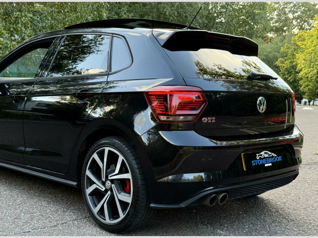2019 Volkswagen Polo 2.0 TSI GTI DSG - 39,000 miles - £17,289This 2019 VW Polo GTI is a sporty, compact hot hatch that blends punchy performance, everyday usability, and premium Volkswagen quality. Finished in Black with upgraded alloys, this example stands out with its dynamic styling and well-equipped interior.Powered by a 2.0-litre TSI turbocharged petrol engine producing 200 PS, paired with a quick-shifting DSG automatic gearbox, the Polo GTI delivers exhilarating performance with everyday comfort, and it's ULEZ compliant too.Spec highlights include: • Sliding Panoramic Roof • Alcantara Seats •Upgraded Brescia alloys •DSG Automatic Gearbox with Paddle Shifters•LED Headlights with Daytime Running Lights•Front & Rear Parking Sensors•GTI Interior Styling•Discover Media System with Apple CarPlay & Android Auto•Dual-Zone Climate Control•Adaptive Cruise Control•Privacy GlassA superb example of VW's iconic hot hatch formula, offering sharp handling, strong performance, and everyday practicality, perfect for city driving or spirited weekend runs.Dealer benefits included:•ULEZ Compliant•Full Service History•12 Months MOT•6-Month Warranty (extendable to 3 years)•AA Approved Dealer with 6 Months Roadside Cover•HPI Clear (report available)•Competitive Part Exchange Welcome•Nationwide Delivery AvailableThis Polo GTI is a standout example with desirable upgrades and excellent condition throughout. Contact us today to arrange a viewing or test drive. Part exchange, and delivery options available, buy with confidence from a trusted seller. ice activation, 18in alloy wheels - brescia black diamond turned, panoramic sunroof - electric and sliding-tilting glass, art velours seat centre section and micro fibre side bolsters - titan black - quartz with deep iron dashpad, winter pack, 17in alloy wheels - parker, 3 rear three-point seat belts with tensioners on outer seats, abs - anti-lock braking system with hba - hydraulic brake assist, active info display, adaptive cruise control, air conditioning - manual, alarm with interior protection with deactivation via infotainment system, aluminium look pedals, armrest - front centre with storage compartment, automatic post-collision braking system, bag hooks in the luggage compartment x2, black gloss instrument surrounds, black roofling and sun visors, body coloured bumpers and side sills, body coloured door handles and mirrors with integrated indicators, brake calipers - red, car-net app connect, carpet mats - front and rear with red stitching, centre console with open storage compartment, chrome effect handbrake grip button, chrome exhaust twin tailpipe, chrome plated air vent surrounds, chrome plated electric mirror adjustment switch surround, chrome plated electric window button surrounds, composition media system, cup holders - front x2 and 12v socket with cover, curtain airbag system for front and rear passengers including side airbags in the front, dataplug, decorative inserts - velvet red, door sill protectors - gti logo, driver alert system, driver profile selection, drivers and front passengers airbags with front passenger airbag deactivation switch, drivers and front passengers safety optimised head restraints, drivers and front passengers sun visors with illuminated vanity mirrors, dusk sensor - automatic driving lights, dust and pollen filter, esc - electronic stability control, electric windows - front and rear, electrically foldable door mirrors, electronic engine immobiliser, front assist - radar sensor controlled distance monitoring system - city emergency braking system and predictive pedestrian protection, front fog lights with static cornering function, front seat back storage pockets, front windscreen washers and wipers with 4 speeds including interval delay, gti name plate, gti styling pack, gear lever gaiter in black trim surround, glovebox, heated rear windscreen - automatically switches off, height and reach adjustable steering wheel, height-adjustable front three-point seat belts with tensioners, high level 3rd brake light, hill hold control, honeycomb radiator grille with red stripe, isofix child seat preparation, instrument lighting - white adjustable panel illumination, interior lighting with delayed switch off, keyless entry - including start-stop button in the centre console, led dipped and main beam headlights, led tail lights, leather trimmed multifunction steering wheel with gti logo and red stitching, license plate with led illumination, light and sight pack, lights on warning buzzer, luggage compartment cover - removable, luggage compartment light, manual coming-automatic leaving home lighting function, multifunction computer plus, parking sensors - front and rear, power assisted steering - speed sensitive, premium usb cable, rain sensor and automatic dimming interior rear-view mirror, rear tinted glass from b pillar backwards - approx 65 percent tinted, rear windscreen washer and wiper with interval delay - reverse activated, remote central locking with 2 remote folding keys, seats - front lumbar support, seats - height adjustment - front, spare wheel - space saver, speedo and rev counter - electronic odometer - trip - service interval display - digital clock and fuel gauge, split folding rear backrests 60-40, steering wheel - paddle shift, storage compartment under front seats, storage compartment in front and rear doors, suspension - sports - lowered by approx 15mm, three rear head restraints, tool kit and jack, two-tone horn, tyre pressure monitoring system, warning buzzer and light for front and rear seat belts if unfastened, xds electronic differential lock for improved traction and handling