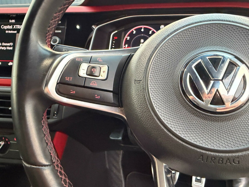 . 17in Alloy Wheels - Parker, 3 Rear Three-Point Seat Belts with Tensioners on Outer Seats, ABS - Anti-Lock Braking System with HBA - Hydraulic Brake Assist, Active Info Display, Adaptive Cruise Control, Air Conditioning - Manual, Alarm with Interior Protection with Deactivation via Infotainment System, Aluminium Look Pedals, Armrest - Front Centre with Storage Compartment, Automatic Post-Collision Braking System, Bag Hooks in the Luggage Compartment x2, Black Gloss Instrument Surrounds, Black Roofling and Sun Visors, Body Coloured Bumpers and Side Sills, Body Coloured Door Handles and Mirrors with Integrated Indicators, Brake Calipers - Red, Car-Net App Connect, Carpet Mats - Front and Rear with Red Stitching, Centre Console with Open Storage Compartment, Chrome Effect Handbrake Grip Button, Chrome Exhaust Twin Tailpipe, Chrome Plated Air Vent Surrounds, Chrome Plated Electric Mirror Adjustment Switch Surround, Chrome Plated Electric Window Button Surrounds, Composition Media System, Cup Holders - Front x2 and 12v Socket with Cover, Curtain Airbag System for Front and Rear Passengers including Side Airbags in the Front, DataPlug, Decorative Inserts - Velvet Red, Door Sill Protectors - GTI Logo, Driver Alert System, Driver Profile Selection, Drivers and Front Passengers Airbags with Front Passenger Airbag Deactivation Switch, Drivers and Front Passengers Safety Optimised Head Restraints, Drivers and Front Passengers Sun Visors with Illuminated Vanity Mirrors, Dusk Sensor - Automatic Driving Lights, Dust and Pollen Filter, ESC - Electronic Stability Control, Electric Windows - Front and Rear, Electrically Foldable Door Mirrors, Electronic Engine Immobiliser, Front Assist - Radar Sensor Controlled Distance Monitoring System - City Emergency Braking System and Predictive Pedestrian Protection, Front Fog Lights with Static Cornering Function, Front Seat Back Storage Pockets, Front Windscreen Washers and Wipers with 4 Speeds including Interval Delay, GTI Name Plate, GTI Styling Pack, Gear Lever Gaiter in Black Trim Surround, Glovebox, Heated Rear Windscreen - Automatically Switches Off, Height and Reach Adjustable Steering Wheel, Height-Adjustable Front Three-Point Seat Belts with Tensioners, High Level 3rd Brake Light, Hill Hold Control, Honeycomb Radiator Grille with Red Stripe, ISOFIX Child Seat Preparation, Instrument Lighting - White Adjustable Panel Illumination, Interior Lighting with Delayed Switch Off, Keyless Entry - Including Start-Stop Button in the Centre Console, LED Dipped and Main Beam Headlights, LED Tail Lights, Leather Trimmed Multifunction Steering Wheel with GTI Logo and Red Stitching, License Plate with LED Illumination, Light and Sight Pack, Lights on Warning Buzzer, Luggage Compartment Cover - Removable, Luggage Compartment Light, Manual Coming-Automatic Leaving Home Lighting Function, Multifunction Computer Plus, Parking Sensors - Front and Rear, Power Assisted Steering - Speed Sensitive, Premium USB Cable, Rain Sensor and Automatic Dimming Interior Rear-View Mirror, Rear Tinted Glass from B Pillar Backwards - Approx 65 Percent Tinted, Rear Windscreen Washer and Wiper with Interval Delay - Reverse Activated, Remote Central Locking with 2 Remote Folding Keys, Seats - Front Lumbar Support, Seats - Height Adjustment - Front, Spare Wheel - Space Saver, Speedo and Rev Counter - Electronic Odometer - Trip - Service Interval Display - Digital Clock and Fuel Gauge, Split Folding Rear Backrests 60-40, Steering Wheel - Paddle Shift, Storage Compartment Under Front Seats, Storage Compartment in Front and Rear Doors, Suspension - Sports - Lowered by Approx 15mm, Three Rear Head Restraints, Tool Kit and Jack, Two-Tone Horn, Tyre Pressure Monitoring System, Warning Buzzer and Light for Front and Rear Seat Belts if Unfastened, XDS Electronic Differential Lock for Improved Traction and Handling.