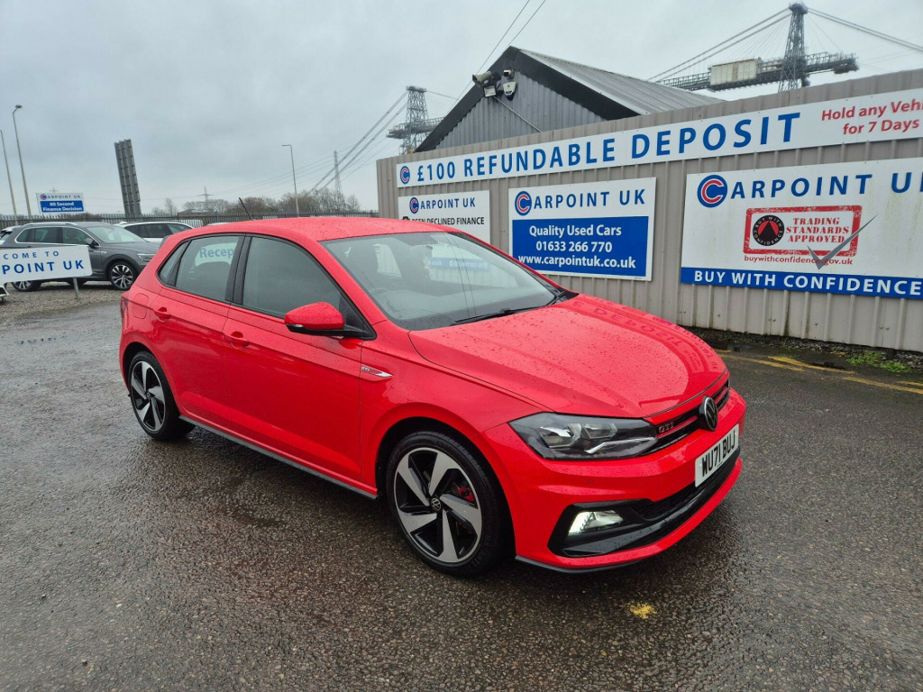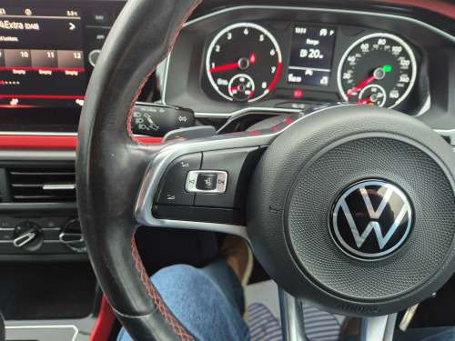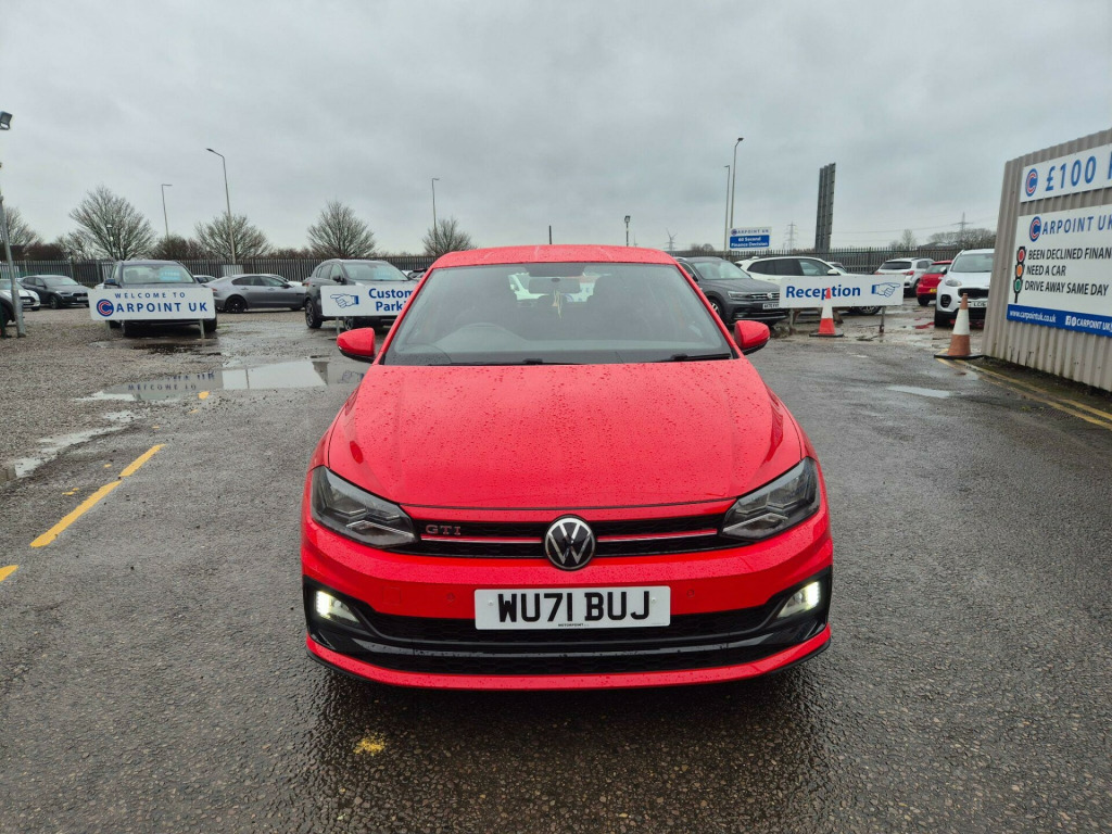 This 2021 Volkswagen Polo TSI GTI boasts a full service history, with its last service completed on 2026-02-03 at 50819 miles, and an MOT valid until February 2027, offering excellent peace of mind. This Euro 6 compliant 2.0 litre petrol model comes equipped with halogen clear headlights featuring automatic activation and separate daytime running lights, along with front and rear parking sensors for enhanced manoeuvrability. Inside, you'll find the Composition Media system with Bluetooth connectivity, allowing seamless integration with your devices, and manual air conditioning to keep you comfortable. The Car Net App Connect feature further enhances your driving experience by providing access to Android Auto and Apple CarPlay.The performance of this Polo TSI GTI is truly impressive, highlighted by its rapid 0-62mph acceleration in just 6.5 seconds. This quick acceleration demonstrates a superior level of responsiveness compared to many other vehicles in its class. Combined with its comprehensive service history and long MOT, this Volkswagen Polo TSI GTI presents a compelling package for those seeking a dynamic and well maintained compact car.. 17in Alloy Wheels - Parker, 3 Rear Three-Point Seat Belts with Tensioners on Outer Seats, ABS - Anti-Lock Braking System with HBA - Hydraulic Brake Assist, Air Conditioning - Manual, Alarm with Interior Protection with Deactivation via Infotainment System, Ambient Lighting in Front Footwell and Light Stripes Below Trim in Front Doors and Dashboard, Automatic Post-Collision Braking System, Bag Hooks in the Luggage Compartment x2, Black Gloss Instrument Surrounds, Black Roofling and Sun Visors, Body Coloured Bumpers and Side Sills, Body Coloured Door Handles and Mirrors with Integrated Indicators, Brake Calipers - Red, Car-Net App Connect, Carpet Mats - Front and Rear with Red Stitching, Centre Console with Open Storage Compartment, Chrome Effect Handbrake Grip Button, Chrome Exhaust Twin Tailpipe, Chrome Plated Air Vent Surrounds, Chrome Plated Electric Mirror Adjustment Switch Surround, Chrome Plated Electric Window Button Surrounds, Composition Media System, Cup Holders - Front x2 and 12v Socket with Cover, Curtain Airbag System for Front and Rear Passengers including Side Airbags in the Front, Decorative Inserts - Velvet Red, Door Mirrors - Electrically Adjustable and Heated, Door Sill Protectors - GTI Logo, Driver Alert System, Driver Profile Selection, Drivers and Front Passengers Airbags with Front Passenger Airbag Deactivation Switch, Drivers and Front Passengers Safety Optimised Head Restraints, Drivers and Front Passengers Sun Visors with Illuminated Vanity Mirrors, Dust and Pollen Filter, ESC - Electronic Stability Control, Electric Windows - Front and Rear, Electronic Engine Immobiliser, Extended Sill Strips - Flared in Black, Front Assist - Radar Sensor Controlled Distance Monitoring System - City Emergency Braking System and Predictive Pedestrian Protection, Front Fog Lights with Static Cornering Function, Front Seat Back Storage Pockets, Front Sports Seats with Height and Lumbar Adjustment, Front Windscreen Washers and Wipers with 4 Speeds including Interval Delay, GTI Name Plate, GTI Styling Pack, Gear Lever Gaiter in Black Trim Surround, Glovebox, Halogen Clear Headlights Range Adjustable with Separate Daytime Running Lights including Automatic Headlights On, Heated Rear Windscreen - Automatically Switches Off, Height and Reach Adjustable Steering Wheel, Height-Adjustable Front Three-Point Seat Belts with Tensioners, High Level 3rd Brake Light, Hill Hold Control, Honeycomb Radiator Grille with Red Stripe, ISOFIX Child Seat Preparation, Instrument Lighting - White Adjustable Panel Illumination, Interior Lighting with Delayed Switch Off, LED Darkened Rear Light Clusters, Leather-Wrapped Multi-Function Sports Steering Wheel with Paddle Shift, License Plate with LED Illumination, Lights on Warning Buzzer, Luggage Compartment - Variable Load Floor, Luggage Compartment Cover - Removable, Luggage Compartment Light, Manual Coming-Automatic Leaving Home Lighting Function, Multifunction Computer Plus, Parking Sensors - Front and Rear, Power Assisted Steering - Speed Sensitive, Premium USB Cable, Rain Sensor and Automatic Dimming Rear-View Mirror, Reading Lights - Front x2 and Rear x2, Rear Spoiler in Gloss Black, Rear Windscreen Washer and Wiper with Interval Delay - Reverse Activated, Remote Central Locking with 2 Remote Folding Keys, Seats - Front Lumbar Support, Seats - Height Adjustment - Front, Speedo and Rev Counter - Electronic Odometer - Trip - Service Interval Display - Digital Clock and Fuel Gauge, Split Folding Rear Backrests 60-40, Stainless Steel Pedals, Steering Wheel - Paddle Shift, Storage Compartment Under Front Seats, Storage Compartment in Front and Rear Doors, Suspension - Sports - Lowered by Approx 15mm, Three Rear Head Restraints, Tyre Mobility Kit and Compressor, Tyre Pressure Monitoring System, Unique GTI Badging, Warning Buzzer and Light for Front and Rear Seat Belts if Unfastened, We Connect Preparation, XDS Electronic Differential Lock for Improved Traction and Handling. Full service history