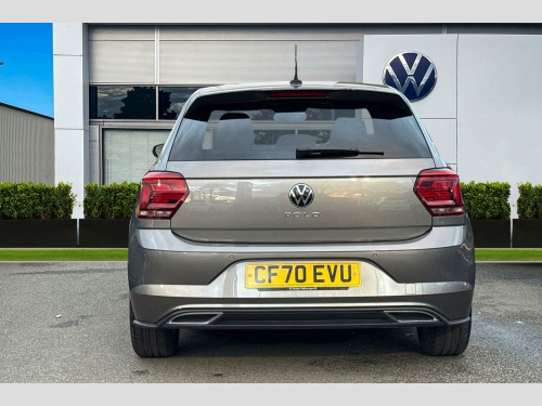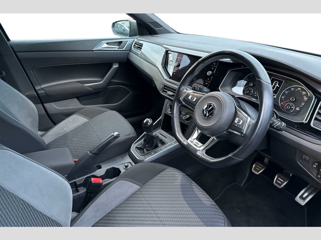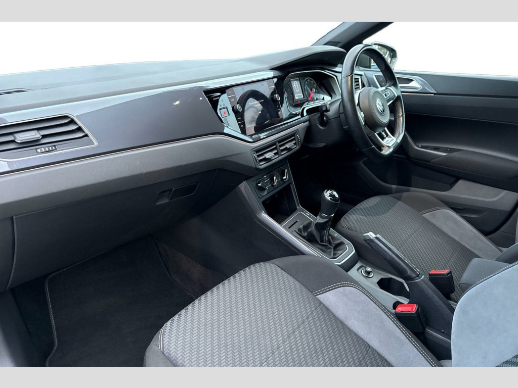 Electric front windows, Front windscreen washers and wipers with 4 speed intermittent delay, Heated rear window with auto timer, Rear electric windows, Rear windscreen washer and wiper with interval delay, reverse activated, Galvanished body, Black grille with chrome surround, Body colour door handles, Body coloured side sills, Chrome trimmed strip on lower bumper, Left and right chrome effect trapezoid fascia exhaust tailpipe surrounds, Rear diffuser, Unique R Line badging, High level 3rd brake light, LED darkened rear light clusters, LED daytime running lights, LED rear number plate lights, ABS, Automatic post collision braking, ESP with EDL + ASR, Front/rear disc brakes, Hill hold control, Hydraulic Brake Assist (HBA), Driver alert system, Power assisted speed sensitive steering, Electrically foldable, adjustable and heated door mirrors with reverse activated kerb view adjustment on passenger's side, 3 point height adj front seatbelts + pretensioners, 3x3 point rear seatbelts, Driver/front passenger airbag, Drivers and front passengers safety optimised head restraints, Front and rear passenger curtain airbags, Front passenger airbag deactivation, Front seat side impact airbags, Single tone horn, Tyre pressure monitoring system, Front + rear carpet mats, Dust/pollen filter, 2 bag hooks in luggage compartment, 2 front cupholders and 12 V socket with cover, Carbon flag cloth upholstery, Centre console storage with open storage compartment, Chrome-plated electric mirror adjustment switch surround, Chrome-plated electric window button surround, Front centre armrest with 2 x USB-C ports in front and 2 x USB-C ports in the rear, Gear lever gaiter in black trim surround, Glovebox, Handbrake grip button in chrome effect, Height/reach adjustable steering column, Leather gear knob and handbrake grip, Luggage compartment cover, removable, Luggage compartment with variable load floor, Stainless steel pedals, Storage compartment in front doors, Storage compartment in rear doors, Storage compartment under front seats, Three spoke leather trimmed multifunction steering wheel with aluminium inserts and R Line Logo, Titanium black roof lining and sun visors, Unique R Line door sill protectors, Ambient lighting in front foorwell, front/rear door and dashboard light strips, Instrument lighting, adjustable panel illumination, Interior light with delay, LED interior lighting - 2 reading lights front and rear with interior delay and dimming function, Luggage compartment lighting, Driver and front passenger sunvisors with illuminated vanity mirrors, Volkswagen connect, Wireless app connect, DAB digital audio broadcast, Diversity antenna for FM reception, Start/stop system, Digital clock, Emergency call service, Lights on warning, Multifunction computer plus, Speedo and rev counter, electronic odometer, trip, service interval display and fuel gauge, Warning buzzer and light for front seatbelts unfastened, Battery regeneration during braking, Chrome plated air vent surround, Chrome plated instrument surrounds, Shadow steel decorative inserts, 3 rear head restraints, 60/40 split folding rear seat, Driver and front passenger seat height adjustment, Folding rear seat backrest, Front head restraints, Front seat backrest storage pockets, Front sport seats with lumbar adjustment and R line logo on seat backrest, Isofix Preparation 2 Rear child seats, Light and sight pack - Polo, R Line styling pack - Polo, Alarm with interior protection and deactivation via infotainment system, Electronic engine immobiliser, Remote central locking with 2 remote folding keys