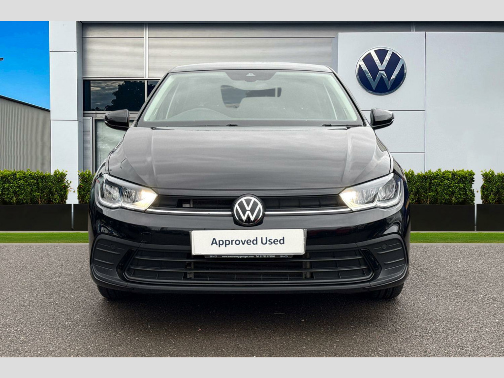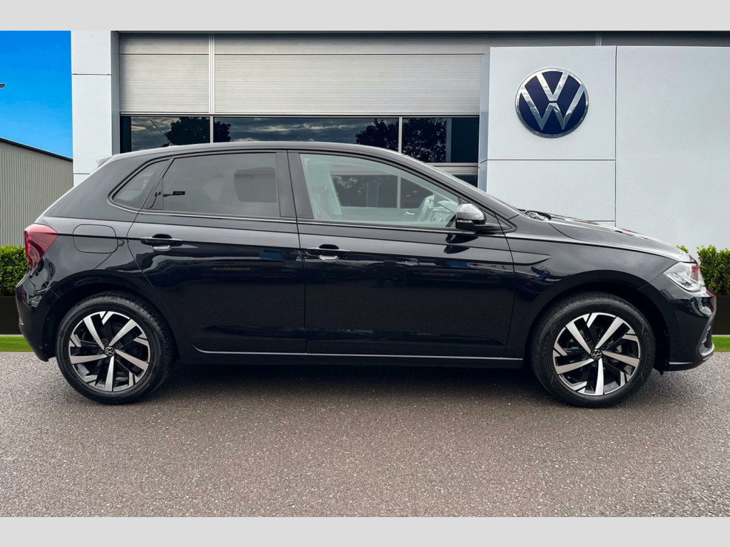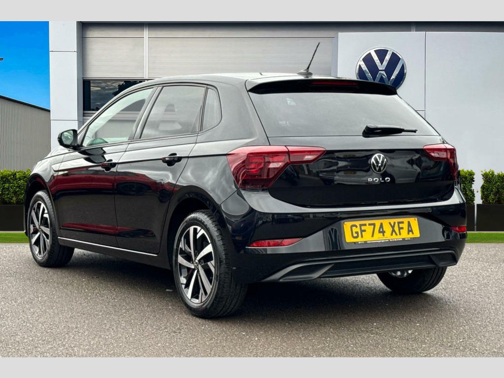 Pearl - Deep black, Hartley/Thomas cloth - Titan black, Electric front windows, Heat insulating and laminated safety glass windshield, Rain sensor, Rear electric windows, Rear tinted glass from B-pillar backwards approx 65% tinted, Rear windscreen washer and wiper with interval delay, Front wheel drive, Rear shock absorpion, Body colour bumpers with chrome inserts, Body colour door handles, Engine badge deletion, Rear side wing doors, Automatic headlight control with LED separate daytime running lights with coming/leaving home function, Headlight range adjustment, LED Headlights, LED rear combination lamps, Rear fog light, Third brake light, ABS, ESC (Electronic stability control) + EDL (Electronic Differntial lock) and ASR (Traction control), Front assist with autonomous emergency braking (for Adaptive Cruise Control ACC up to 130 mph), Front disc brakes, Hill hold control, Rear drum brakes, Advanced driver attention and drowsiness monitor, Dynamic road sign display, Multifunction front facing camera for distance control, Park distance control, Power assisted speed sensitive steering, Predictive adaptive cruise control without follow-to-stop and speed limiter, Rear view camera, Automatic dimming interior rear view mirror, Body colour door mirrors, Power folding adjustable/heated exterior mirrors and front passenger exterior mirror lowering function, 3 point height adj front seatbelts + pretensioners, 3 point seat belt for centre rear seat, 3 point seatbelts, outer rear with ECE lable, Driver and front passenger airbag with front passenger airbag deactivation, Drivers and front passengers safety optimised head restraints, Extended and predictive pedestrian/ cyclist protection, Front curtain and side airbags with center airbag, Manual child lock in rear doors, Single tone horn, Tyre pressure loss indicator, Bluetooth mobile phone interface, Preparation for We connect and We connect plus, Wireless app connect, DAB Digital radio, Diversity antenna for FM reception, Front and rear 6 speakers, Standard rear axle, Travel Assist - Lane keeping system and traffic jam assist, Emergency call service, Preparation for navigation system with media and internet package, Speedo and rev counter, electronic odometer, trip, service interval display and exterior temperature gauge, Travel assist including emergency assist, Trip computer, Warning signal and warning light for front and rear seatbelts not fastened, Washer fluid level indicator, Start-stop system with battery regeneration (recuperation - energy recovery during braking), Lava stone black gloss/matt decorative inserts in dash and front door panels, 3 rear head restraints, 60/40 split folding rear seat and rear seat bench not split, Driver and front passenger seat height adjustment, Front seat backrest storage pockets, Front standard seats, Isofix child seat preparation easy-fit (for two outer rear seats, and front passenger seat) compatible with I-size, Single front passenger seat, Standard climatic zones, 12V power socket in centre console, 2 USB-C ports in the front, 2 USB-C charging sockets on the center console in the rear, Ceramique roof lining, Chrome plated radiator grille inserts, air vent surrounds and light switch surrounds, Door and side trim panel, Front centre armrest, Handbrake lever handle in leather, Hartley/Thomas cloth upholstery, Headliner in recycled material, Leather trimmed gear knob, Luggage compartment cover, Removable luggage compartment floor, Standard pedal cluster, Three spoke leather wrapped multifunction steering wheel with shifting paddles, 2 front and 2 rear reading lights with switch off delay and dimmer, Luggage compartment lighting, Driver/passenger sunvisors with illuminated vanity mirrors, Light and vision pack - Polo, Alarm with interior protection, Anti-theft alarm system with interior monitoring, backup horn, and towing protection, Anti-theft wheel bolts, Electronic engine immobiliser, Low rolling resistance tyres, 16" Torsby alloy wheels