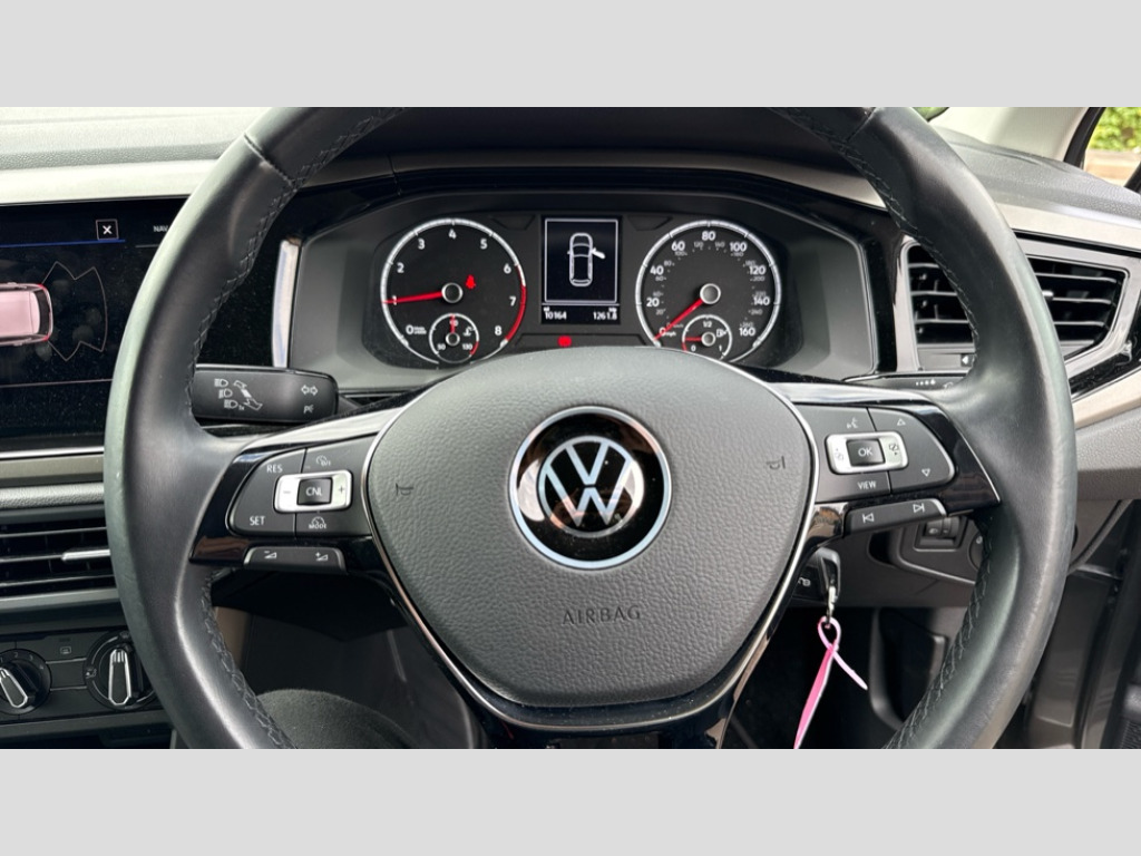 Volkswagen Polo 1.0 EVO 80 Match 5dr Cruise control + speed limiter, Digital clock, Driver alert system, Emergency call service, Multifunction computer plus, Power assisted speed sensitive steering, Speedo and rev counter, electronic odometer, trip, service interval display and fuel gauge, Start/stop system, Volkswagen connect, Warning buzzer and light for front seatbelts unfastened, Wireless app connect, Battery regeneration during braking, Galvanished body, Diversity antenna for FM reception, Front and rear 6 speakers, Black grille with chrome surround, Black radiator grille with chrome louvres, Body colour bumpers, Body colour door handles, Body colour rear spoiler, Body coloured side sills, Electric front windows, Electrically adjustable and heated door mirrors with reverse activated kerb view adjustment on passenger's side, Front windscreen washers and wipers with 4 speed intermittent delay, Heated rear window with auto timer, High level 3rd brake light, LED daytime running lights, LED rear number plate lights, Rear electric windows, Rear windscreen washer and wiper with interval delay, reverse activated, 2 bag hooks in luggage compartment, 2 front and 2 rear reading lights, 2 front cupholders and 12 V socket with cover, 3 rear head restraints, 4 grab handles, 60/40 split folding rear seat, Centre console storage with open storage compartment, Chrome interior door handles, Driver and front passenger seat height adjustment, Driver and front passenger sunvisors with illuminated vanity mirrors, Dust/pollen filter, Folding rear seat backrest, Front head restraints, Front seat backrest storage pockets, Gear lever gaiter in black trim surround, Glovebox, Handbrake grip button in chrome effect, Height/reach adjustable steering column, Instrument lighting, adjustable panel illumination, Interior light with delay, Isofix Preparation 2 Rear child seats, Leather gear knob and handbrake grip, Leather multifunction steering wheel, Luggage compartment cover, removable, Luggage compartment lighting, Luggage compartment with variable load floor, Storage compartment in front doors, Storage compartment in rear doors, Storage compartment under front seats, Sunglasses holder, 3 point height adj front seatbelts + pretensioners, 3x3 point rear seatbelts, ABS, Automatic post collision braking, Driver/front passenger airbag, Drivers and front passengers safety optimised head restraints, ESP with EDL + ASR, Front and rear passenger curtain airbags, Front disc brakes and rear drum brakes, Front passenger airbag deactivation, Front seat side impact airbags, Hill hold control, Hydraulic Brake Assist (HBA), Single tone horn, Tyre pressure monitoring system, Alarm with interior protection and deactivation via infotainment system, Electronic engine immobiliser, Remote central locking with 2 remote folding keys, Air vents in High gloss black, Limestone grey decorative inserts