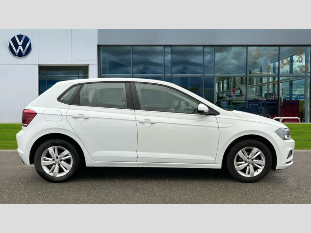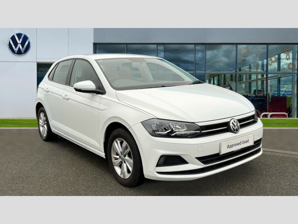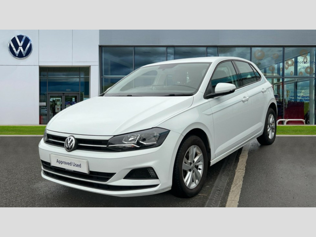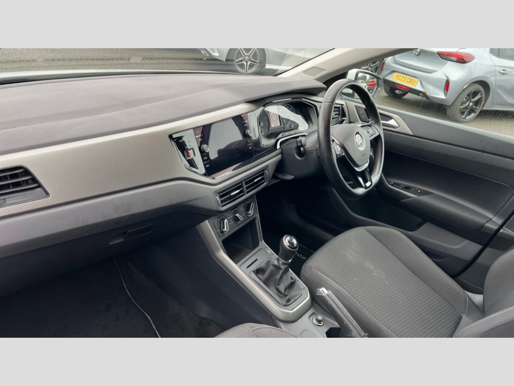 Volkswagen Polo 1.0 EVO 80 SE 5dr App-Connect, Bluetooth Telephone preparation, Driver alert system, Multifunction colour display, PAS - speed related, Service interval indicator, Start/stop system, Trip computer, Warning buzzer and light for front seatbelts unfastened, Battery regeneration during braking, 6 speakers, Composition media system with radio, glovebox mounted CD, colour touch screen, SD card, aux-in, USB, multimedia interface, DAB Digital radio, Automatic headlamp activation, Black grille with chrome surround, Black radiator grille with chrome insert, Body colour bumpers, Body colour door handles, Body colour rear spoiler, Body coloured side sills, Electric front windows, Electric operated/heated door mirrors, Front wash/wipe with interval delay, Fully galvanised body, Heat insulating tinted glass, Heated rear window with auto timer, High level 3rd brake light, LED daytime running lights, LED rear number plate lights, Rear electric windows, Rear windscreen washer and wiper with interval delay, 12V power socket in centre console, 2 bag hooks in luggage compartment, 2 cupholders, 3 rear head restraints, 3 spoke steering wheel, 60/40 split folding rear seat, Centre console storage, Driver/front passenger seat height adjustment + underseat drawers, Driver/passenger sunvisors with illuminated vanity mirrors, Dust/pollen filter, Front door pockets, Front seat backrest storage nets, Front/rear reading lights, Gear lever gaiter in high glass black trim surround, Glovebox, Handbrake grip button in chrome effect, Height/reach adjustable steering column, Instrument lighting, white adjustable panel illumination, Interior light with delay, Isofix Preparation 2 Rear child seats, Jack and tool kit, Luggage compartment cover, removable, Luggage compartment lighting, Multifunction leather steering wheel with leather gear knob/handbrake grip, Storage compartment in front doors, Storage compartment in rear doors, Storage compartment under front seats, Variable boot floor, Variable Luggage compartment, 3 point height adj front seatbelts + pretensioners, 3x3 point rear seatbelts, ABS, Automatic post collision braking, Driver/front passenger airbag, Driver/Passenger whiplash optimised head restraints, ESP with EDL + ASR, Front and rear passengers curtain airbag system including front side airbags, Front disc brakes and rear drum brakes, Front passenger airbag deactivation, Hill hold control, Hydraulic Brake Assist (HBA), Two tone horn, Tyre pressure monitoring system, Alarm with remote central locking and interior protection, Electronic engine immobiliser, Air vents in High gloss black, Black high gloss trim, Full size spare wheel