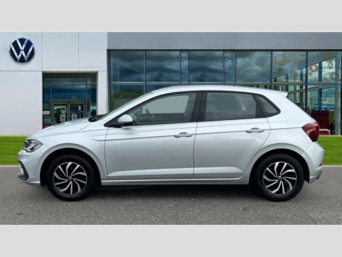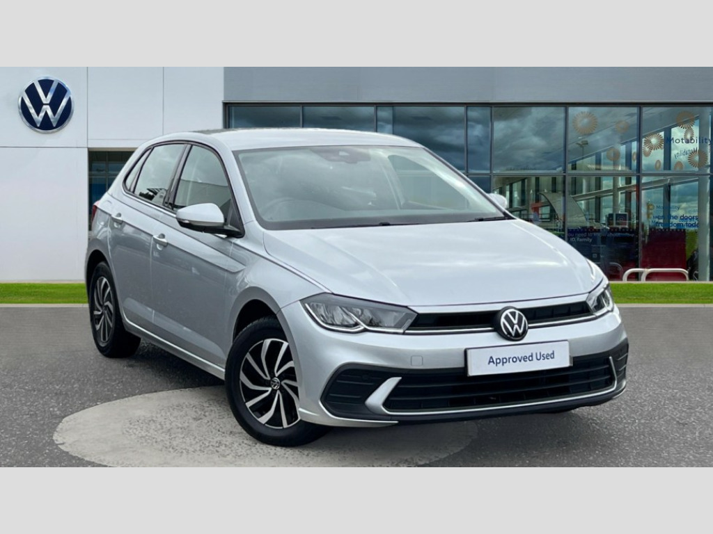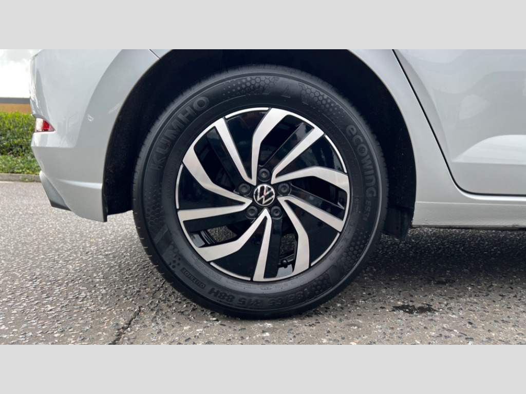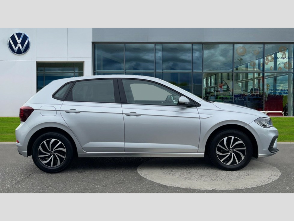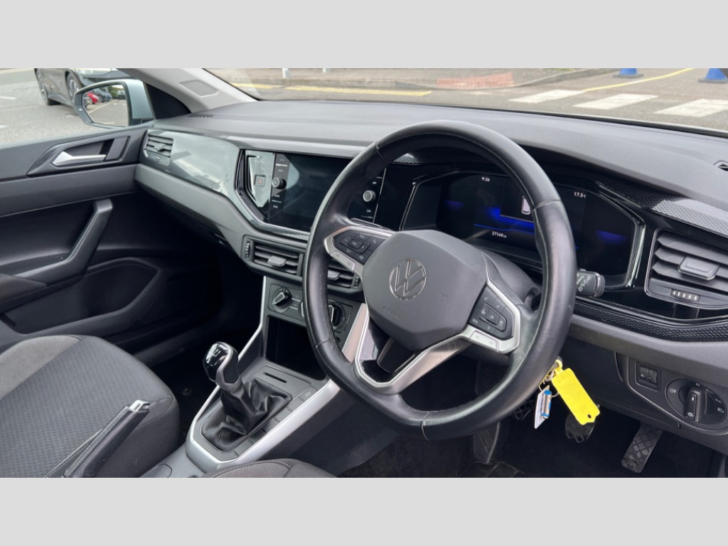 Volkswagen Polo 1.0 Life 5dr Bluetooth mobile phone interface, Cruise control + speed limiter, Driver alert system, Emergency call service, Lane keeping system Lane Assist, Power assisted speed sensitive steering, Preparation for We connect and We connect plus, Speedo and rev counter, electronic odometer, trip, service interval display and fuel gauge, Standard rear axle, Trip computer, Warning signal and warning light for front and rear seatbelts not fastened, Washer fluid level indicator, Wireless app connect, Front wheel drive, Rear shock absorpion, Start-stop system with battery regeneration (recuperation - energy recovery during braking), DAB Digital radio, Diversity antenna for FM reception, Front and rear 6 speakers, Automatic dimming interior rear view mirror, Body colour bumpers, Body colour door handles, Body colour door mirrors, Electric front windows, Heat insulating darkened glass in side and rear windows, Heat insulating glass windscreen, Power folding adjustable/heated exterior mirrors and front passenger exterior mirror lowering function, Rain sensor, Rear electric windows, Rear fog light, Rear side wing doors, Rear windscreen washer and wiper with interval delay, Third brake light, 12V power socket in centre console, 2 front and 2 rear reading lights, 2 USB-C ports in the front, 2 USB-C charging sockets on the center console in the rear, 3 rear head restraints, 60/40 split folding rear seat and rear seat bench not split, Chrome plated radiator grille inserts, air vent surrounds and light switch surrounds, Door and side trim panel, Driver and front passenger seat height adjustment, Driver/passenger sunvisors with illuminated vanity mirrors, Front centre armrest, Front seat backrest storage pockets, Front standard seats, Handbrake lever handle in leather, Hartley/Thomas cloth upholstery, Headliner in recycled material, Isofix child seat preparation easy-fit (for two outer rear seats, and front passenger seat) compatible with I-size, Leather trimmed gear knob, Luggage compartment cover, Luggage compartment floor, Luggage compartment lighting, Multifunction steering wheel, Single front passenger seat, Standard pedal cluster, Light and vision pack - Polo, 3 point height adj front seatbelts + pretensioners, 3x3 point rear seatbelts, ABS, Driver and front passenger airbag with front passenger airbag deactivation, Drivers and front passengers safety optimised head restraints, ESC (Electronic stability control) + EDL (Electronic Differntial lock) and ASR (Traction control), Extended and predictive pedestrian/ cyclist protection, Front assist including city emergency braking, Front curtain and side airbags with center airbag, Front disc brakes, Hill hold control, Manual child lock in rear doors, Rear drum brakes, Single tone horn, Tyre pressure loss indicator, Alarm with interior protection, Anti-theft alarm system with interior monitoring, backup horn, and towing protection, Anti-theft wheel bolts, Electronic engine immobiliser, Lava stone black gloss/matt decorative inserts in dash and front door panels, Low rolling resistance tyres