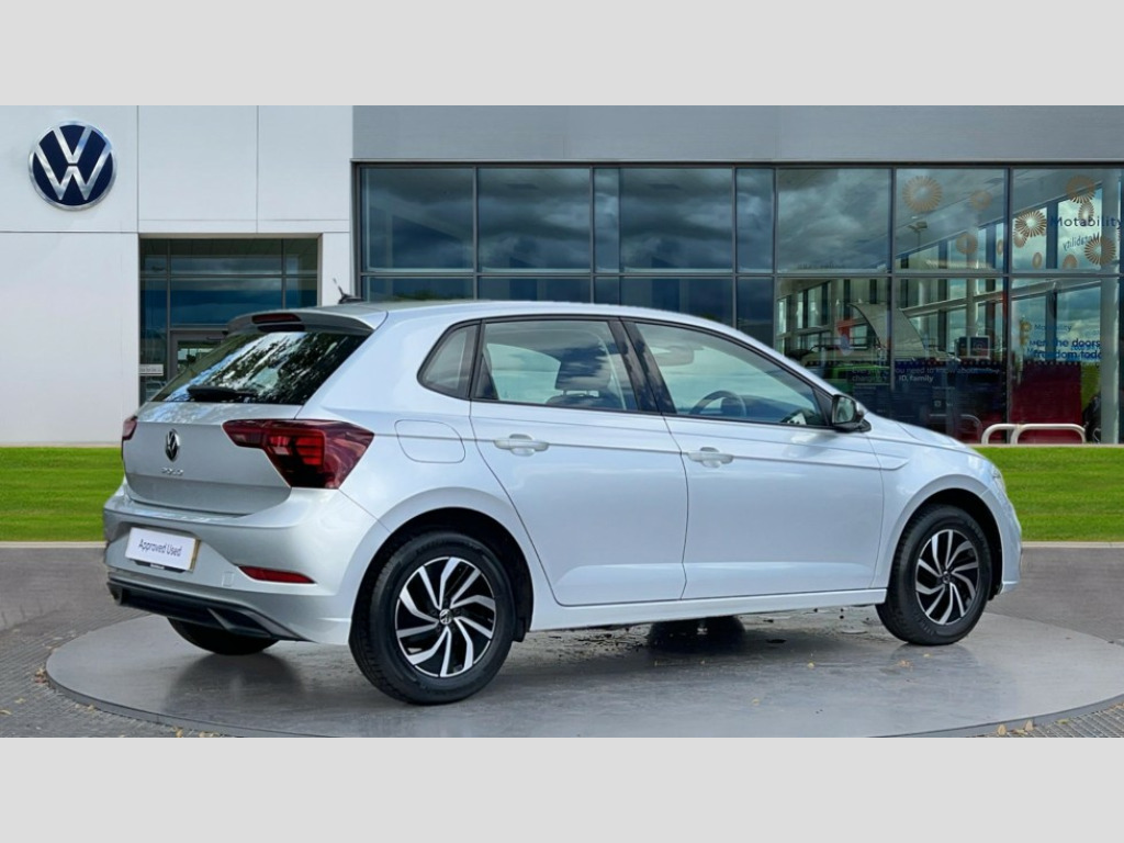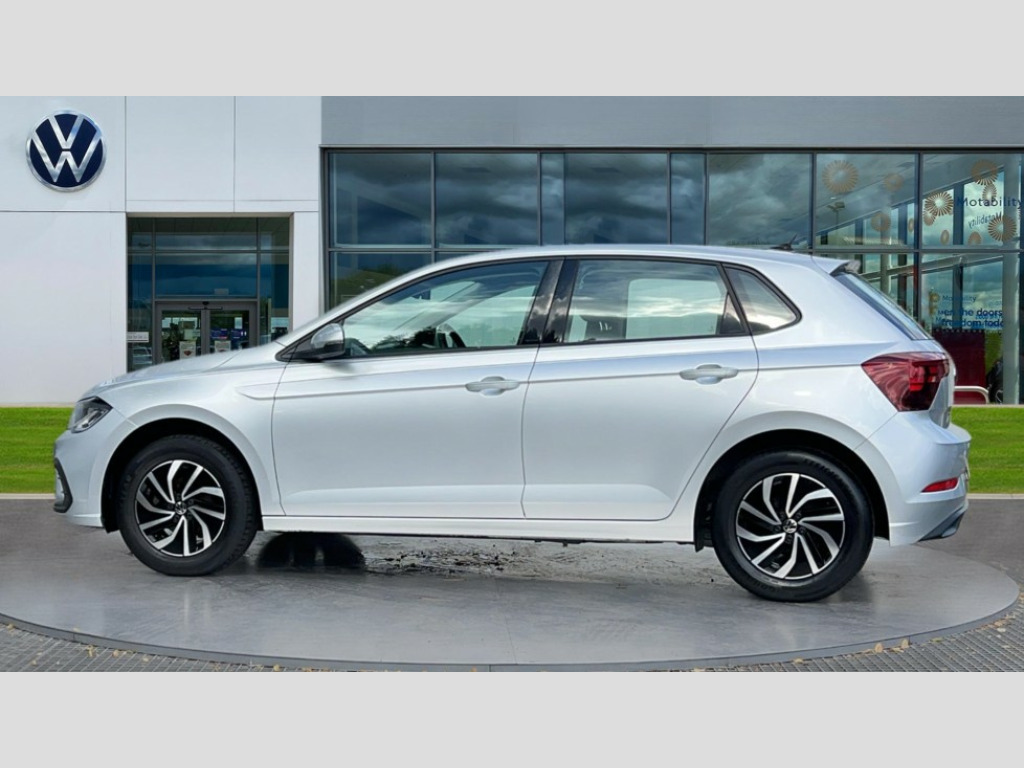 Volkswagen Polo 1.0 Life 5dr Bluetooth mobile phone interface, Cruise control + speed limiter, Driver alert system, Emergency call service, Lane keeping system Lane Assist, Power assisted speed sensitive steering, Preparation for We connect and We connect plus, Speedo and rev counter, electronic odometer, trip, service interval display and fuel gauge, Standard rear axle, Trip computer, Warning signal and warning light for front and rear seatbelts not fastened, Washer fluid level indicator, Wireless app connect, Front wheel drive, Rear shock absorpion, Start-stop system with battery regeneration (recuperation - energy recovery during braking), DAB Digital radio, Diversity antenna for FM reception, Front and rear 6 speakers, Automatic dimming interior rear view mirror, Body colour bumpers, Body colour door handles, Body colour door mirrors, Electric front windows, Heat insulating darkened glass in side and rear windows, Heat insulating glass windscreen, Power folding adjustable/heated exterior mirrors and front passenger exterior mirror lowering function, Rain sensor, Rear electric windows, Rear fog light, Rear side wing doors, Rear windscreen washer and wiper with interval delay, Third brake light, 12V power socket in centre console, 2 front and 2 rear reading lights, 2 USB-C ports in the front, 2 USB-C charging sockets on the center console in the rear, 3 rear head restraints, 60/40 split folding rear seat and rear seat bench not split, Chrome plated radiator grille inserts, air vent surrounds and light switch surrounds, Door and side trim panel, Driver and front passenger seat height adjustment, Driver/passenger sunvisors with illuminated vanity mirrors, Front centre armrest, Front seat backrest storage pockets, Front standard seats, Handbrake lever handle in leather, Hartley/Thomas cloth upholstery, Headliner in recycled material, Isofix child seat preparation easy-fit (for two outer rear seats, and front passenger seat) compatible with I-size, Leather trimmed gear knob, Luggage compartment cover, Luggage compartment floor, Luggage compartment lighting, Multifunction steering wheel, Single front passenger seat, Standard pedal cluster, Light and vision pack - Polo, 3 point height adj front seatbelts + pretensioners, 3x3 point rear seatbelts, ABS, Driver and front passenger airbag with front passenger airbag deactivation, Drivers and front passengers safety optimised head restraints, ESC (Electronic stability control) + EDL (Electronic Differntial lock) and ASR (Traction control), Extended and predictive pedestrian/ cyclist protection, Front assist including city emergency braking, Front curtain and side airbags with center airbag, Front disc brakes, Hill hold control, Manual child lock in rear doors, Rear drum brakes, Single tone horn, Tyre pressure loss indicator, Alarm with interior protection, Anti-theft alarm system with interior monitoring, backup horn, and towing protection, Anti-theft wheel bolts, Electronic engine immobiliser, Lava stone black gloss/matt decorative inserts in dash and front door panels, Low rolling resistance tyres