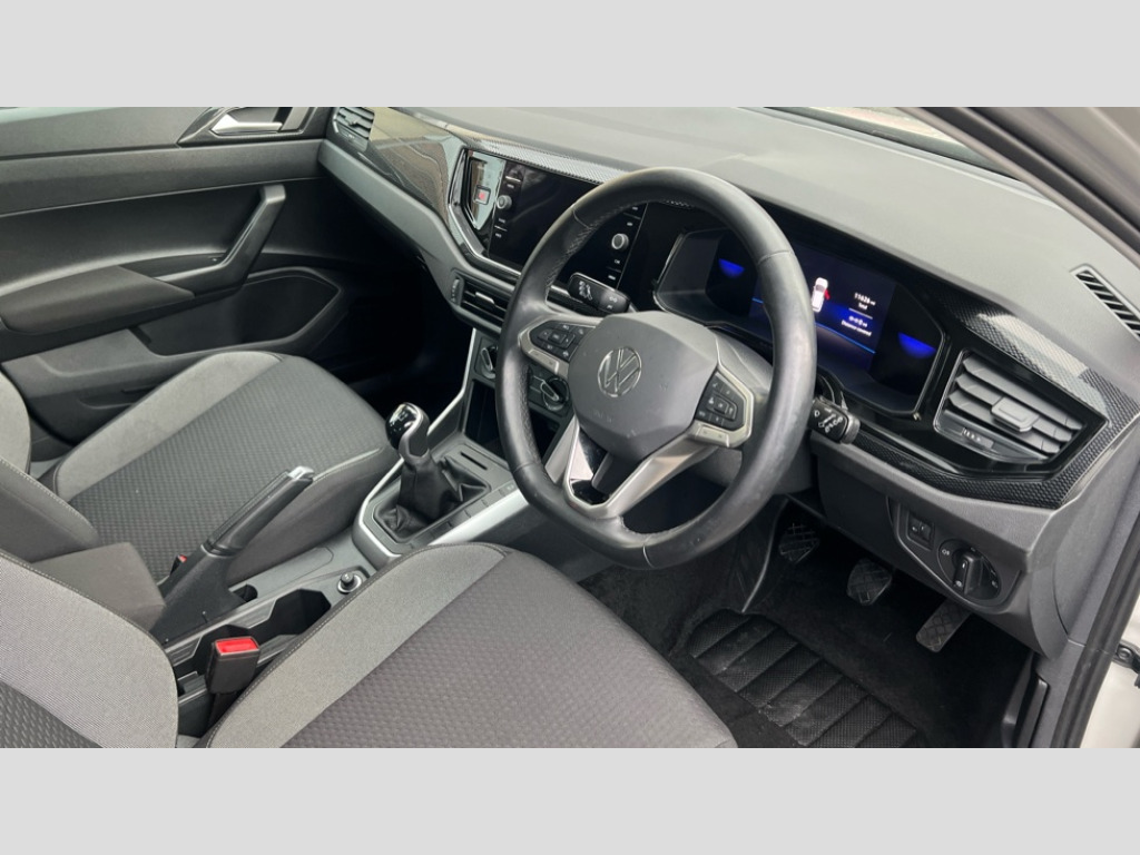 Volkswagen Polo 1.0 Life 5dr Bluetooth mobile phone interface, Cruise control + speed limiter, Driver alert system, Emergency call service, Lane keeping system Lane Assist, Power assisted speed sensitive steering, Preparation for We connect and We connect plus, Speedo and rev counter, electronic odometer, trip, service interval display and fuel gauge, Standard rear axle, Trip computer, Warning signal and warning light for front and rear seatbelts not fastened, Washer fluid level indicator, Wireless app connect, Front wheel drive, Rear shock absorpion, Start-stop system with battery regeneration (recuperation - energy recovery during braking), DAB Digital radio, Diversity antenna for FM reception, Front and rear 6 speakers, Automatic dimming interior rear view mirror, Body colour bumpers, Body colour door handles, Body colour door mirrors, Electric front windows, Heat insulating darkened glass in side and rear windows, Heat insulating glass windscreen, Power folding adjustable/heated exterior mirrors and front passenger exterior mirror lowering function, Rain sensor, Rear electric windows, Rear fog light, Rear side wing doors, Rear windscreen washer and wiper with interval delay, Third brake light, 12V power socket in centre console, 2 front and 2 rear reading lights, 2 USB-C ports in the front, 2 USB-C charging sockets on the center console in the rear, 3 rear head restraints, 60/40 split folding rear seat and rear seat bench not split, Chrome plated radiator grille inserts, air vent surrounds and light switch surrounds, Door and side trim panel, Driver and front passenger seat height adjustment, Driver/passenger sunvisors with illuminated vanity mirrors, Front centre armrest, Front seat backrest storage pockets, Front standard seats, Handbrake lever handle in leather, Hartley/Thomas cloth upholstery, Headliner in recycled material, Isofix child seat preparation easy-fit (for two outer rear seats, and front passenger seat) compatible with I-size, Leather trimmed gear knob, Luggage compartment cover, Luggage compartment floor, Luggage compartment lighting, Multifunction steering wheel, Single front passenger seat, Standard pedal cluster, Light and vision pack - Polo, 3 point height adj front seatbelts + pretensioners, 3x3 point rear seatbelts, ABS, Driver and front passenger airbag with front passenger airbag deactivation, Drivers and front passengers safety optimised head restraints, ESC (Electronic stability control) + EDL (Electronic Differntial lock) and ASR (Traction control), Extended and predictive pedestrian/ cyclist protection, Front assist including city emergency braking, Front curtain and side airbags with center airbag, Front disc brakes, Hill hold control, Manual child lock in rear doors, Rear drum brakes, Single tone horn, Tyre pressure loss indicator, Alarm with interior protection, Anti-theft alarm system with interior monitoring, backup horn, and towing protection, Anti-theft wheel bolts, Electronic engine immobiliser, Lava stone black gloss/matt decorative inserts in dash and front door panels, Low rolling resistance tyres
