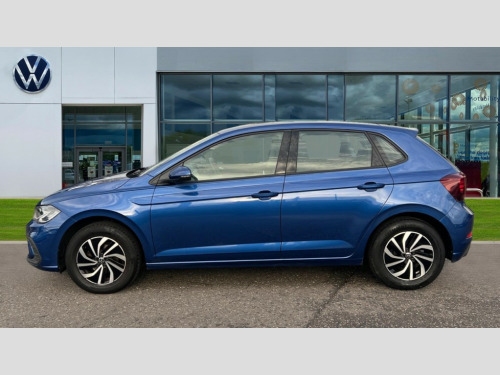 Volkswagen Polo 1.0 Life 5dr Bluetooth mobile phone interface, Cruise control + speed limiter, Driver alert system, Emergency call service, Lane keeping system Lane Assist, Power assisted speed sensitive steering, Preparation for We connect and We connect plus, Speedo and rev counter, electronic odometer, trip, service interval display and fuel gauge, Standard rear axle, Trip computer, Warning signal and warning light for front and rear seatbelts not fastened, Washer fluid level indicator, Wireless app connect, Front wheel drive, Rear shock absorpion, Start-stop system with battery regeneration (recuperation - energy recovery during braking), DAB Digital radio, Diversity antenna for FM reception, Front and rear 6 speakers, Automatic dimming interior rear view mirror, Body colour bumpers, Body colour door handles, Body colour door mirrors, Electric front windows, Heat insulating darkened glass in side and rear windows, Heat insulating glass windscreen, Power folding adjustable/heated exterior mirrors and front passenger exterior mirror lowering function, Rain sensor, Rear electric windows, Rear fog light, Rear side wing doors, Rear windscreen washer and wiper with interval delay, Third brake light, 12V power socket in centre console, 2 front and 2 rear reading lights, 2 USB-C ports in the front, 2 USB-C charging sockets on the center console in the rear, 3 rear head restraints, 60/40 split folding rear seat and rear seat bench not split, Chrome plated radiator grille inserts, air vent surrounds and light switch surrounds, Door and side trim panel, Driver and front passenger seat height adjustment, Driver/passenger sunvisors with illuminated vanity mirrors, Front centre armrest, Front seat backrest storage pockets, Front standard seats, Handbrake lever handle in leather, Hartley/Thomas cloth upholstery, Headliner in recycled material, Isofix child seat preparation easy-fit (for two outer rear seats, and front passenger seat) compatible with I-size, Leather trimmed gear knob, Luggage compartment cover, Luggage compartment floor, Luggage compartment lighting, Multifunction steering wheel, Single front passenger seat, Standard pedal cluster, Light and vision pack - Polo, 3 point height adj front seatbelts + pretensioners, 3x3 point rear seatbelts, ABS, Driver and front passenger airbag with front passenger airbag deactivation, Drivers and front passengers safety optimised head restraints, ESC (Electronic stability control) + EDL (Electronic Differntial lock) and ASR (Traction control), Extended and predictive pedestrian/ cyclist protection, Front assist including city emergency braking, Front curtain and side airbags with center airbag, Front disc brakes, Hill hold control, Manual child lock in rear doors, Rear drum brakes, Single tone horn, Tyre pressure loss indicator, Alarm with interior protection, Anti-theft alarm system with interior monitoring, backup horn, and towing protection, Anti-theft wheel bolts, Electronic engine immobiliser, Lava stone black gloss/matt decorative inserts in dash and front door panels, Low rolling resistance tyres