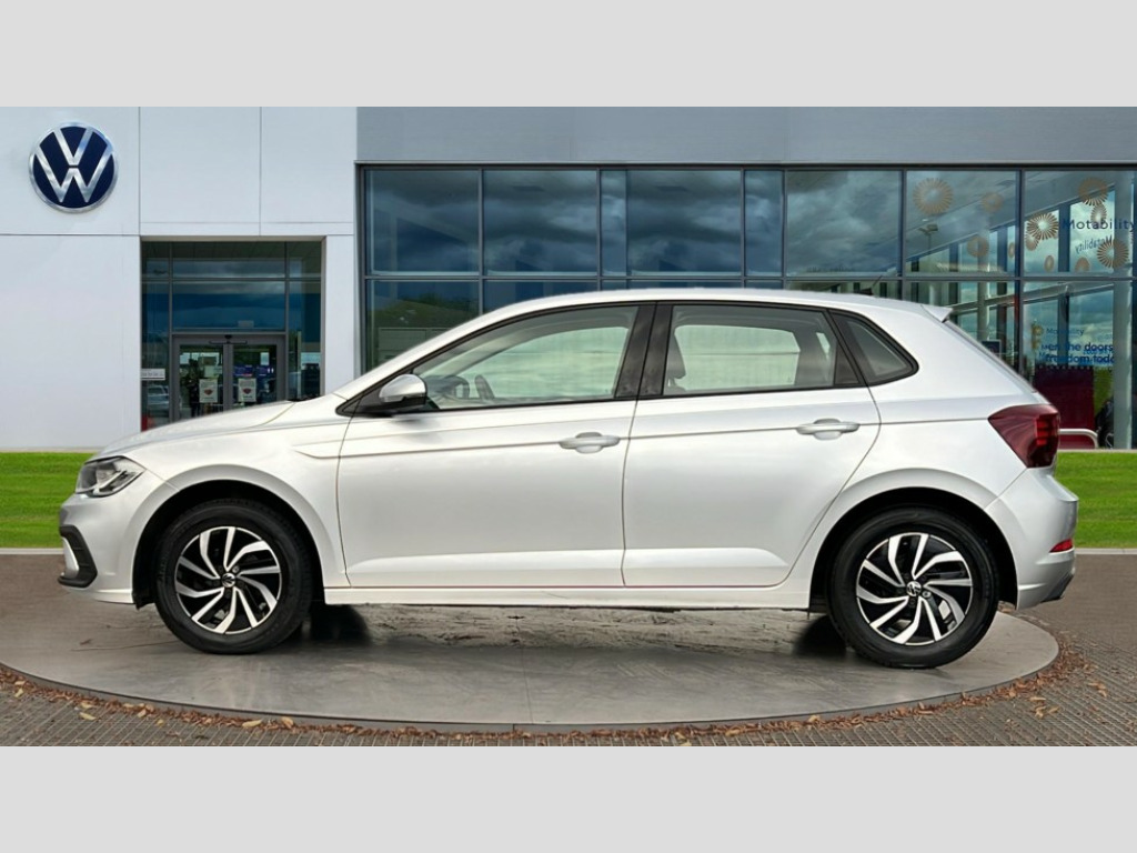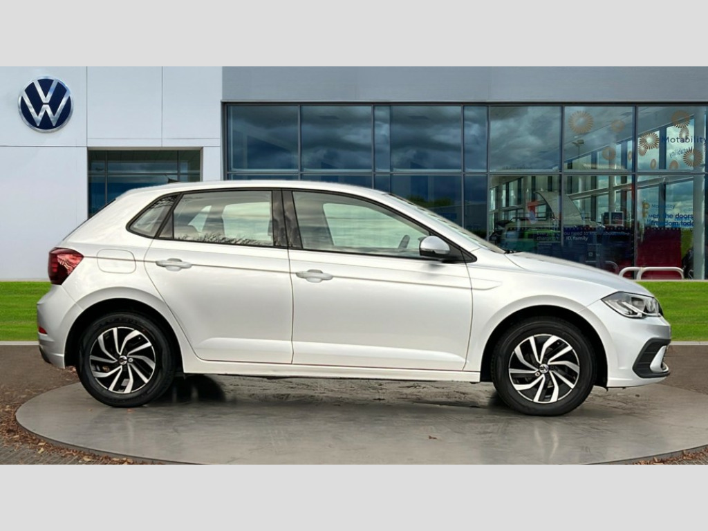 Volkswagen Polo 1.0 Life 5dr Bluetooth mobile phone interface, Cruise control + speed limiter, Driver alert system, Emergency call service, Lane keeping system Lane Assist, Power assisted speed sensitive steering, Preparation for We connect and We connect plus, Speedo and rev counter, electronic odometer, trip, service interval display and fuel gauge, Standard rear axle, Trip computer, Warning signal and warning light for front and rear seatbelts not fastened, Washer fluid level indicator, Wireless app connect, Front wheel drive, Rear shock absorpion, Start-stop system with battery regeneration (recuperation - energy recovery during braking), DAB Digital radio, Diversity antenna for FM reception, Front and rear 6 speakers, Automatic dimming interior rear view mirror, Body colour bumpers, Body colour door handles, Body colour door mirrors, Electric front windows, Heat insulating darkened glass in side and rear windows, Heat insulating glass windscreen, Power folding adjustable/heated exterior mirrors and front passenger exterior mirror lowering function, Rain sensor, Rear electric windows, Rear fog light, Rear side wing doors, Rear windscreen washer and wiper with interval delay, Third brake light, 12V power socket in centre console, 2 front and 2 rear reading lights, 2 USB-C ports in the front, 2 USB-C charging sockets on the center console in the rear, 3 rear head restraints, 60/40 split folding rear seat and rear seat bench not split, Chrome plated radiator grille inserts, air vent surrounds and light switch surrounds, Door and side trim panel, Driver and front passenger seat height adjustment, Driver/passenger sunvisors with illuminated vanity mirrors, Front centre armrest, Front seat backrest storage pockets, Front standard seats, Handbrake lever handle in leather, Hartley/Thomas cloth upholstery, Headliner in recycled material, Isofix child seat preparation easy-fit (for two outer rear seats, and front passenger seat) compatible with I-size, Leather trimmed gear knob, Luggage compartment cover, Luggage compartment floor, Luggage compartment lighting, Multifunction steering wheel, Single front passenger seat, Standard pedal cluster, Light and vision pack - Polo, 3 point height adj front seatbelts + pretensioners, 3x3 point rear seatbelts, ABS, Driver and front passenger airbag with front passenger airbag deactivation, Drivers and front passengers safety optimised head restraints, ESC (Electronic stability control) + EDL (Electronic Differntial lock) and ASR (Traction control), Extended and predictive pedestrian/ cyclist protection, Front assist including city emergency braking, Front curtain and side airbags with center airbag, Front disc brakes, Hill hold control, Manual child lock in rear doors, Rear drum brakes, Single tone horn, Tyre pressure loss indicator, Alarm with interior protection, Anti-theft alarm system with interior monitoring, backup horn, and towing protection, Anti-theft wheel bolts, Electronic engine immobiliser, Lava stone black gloss/matt decorative inserts in dash and front door panels, Low rolling resistance tyres