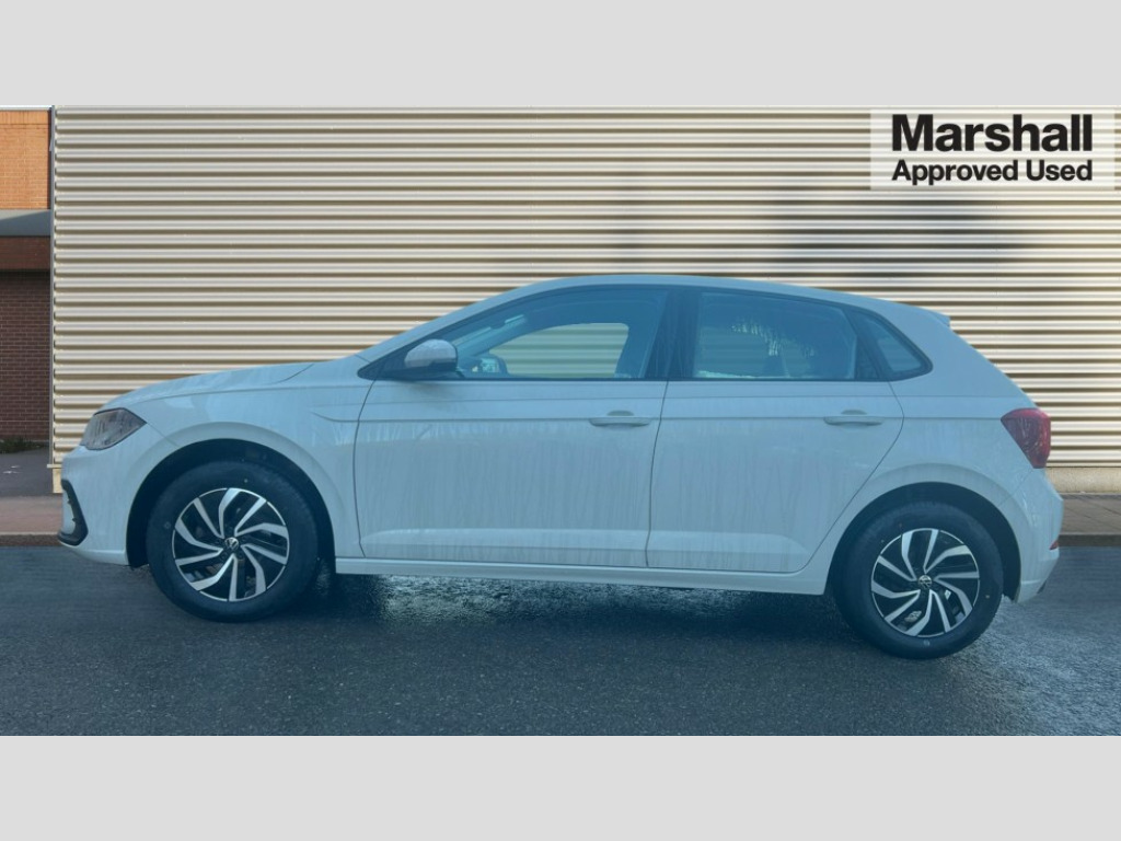 Volkswagen Polo 1.0 Life 5dr Bluetooth mobile phone interface, Cruise control + speed limiter, Driver alert system, Emergency call service, Lane keeping system Lane Assist, Power assisted speed sensitive steering, Preparation for We connect and We connect plus, Speedo and rev counter, electronic odometer, trip, service interval display and fuel gauge, Standard rear axle, Trip computer, Warning signal and warning light for front and rear seatbelts not fastened, Washer fluid level indicator, Wireless app connect, Front wheel drive, Rear shock absorpion, Start-stop system with battery regeneration (recuperation - energy recovery during braking), DAB Digital radio, Diversity antenna for FM reception, Front and rear 6 speakers, Automatic dimming interior rear view mirror, Body colour bumpers, Body colour door handles, Body colour door mirrors, Electric front windows, Heat insulating darkened glass in side and rear windows, Heat insulating glass windscreen, Power folding adjustable/heated exterior mirrors and front passenger exterior mirror lowering function, Rain sensor, Rear electric windows, Rear fog light, Rear side wing doors, Rear windscreen washer and wiper with interval delay, Third brake light, 12V power socket in centre console, 2 front and 2 rear reading lights, 2 USB-C ports in the front, 2 USB-C charging sockets on the center console in the rear, 3 rear head restraints, 60/40 split folding rear seat and rear seat bench not split, Chrome plated radiator grille inserts, air vent surrounds and light switch surrounds, Door and side trim panel, Driver and front passenger seat height adjustment, Driver/passenger sunvisors with illuminated vanity mirrors, Front centre armrest, Front seat backrest storage pockets, Front standard seats, Handbrake lever handle in leather, Hartley/Thomas cloth upholstery, Headliner in recycled material, Isofix child seat preparation easy-fit (for two outer rear seats, and front passenger seat) compatible with I-size, Leather trimmed gear knob, Luggage compartment cover, Luggage compartment floor, Luggage compartment lighting, Multifunction steering wheel, Single front passenger seat, Standard pedal cluster, Light and vision pack - Polo, 3 point height adj front seatbelts + pretensioners, 3x3 point rear seatbelts, ABS, Driver and front passenger airbag with front passenger airbag deactivation, Drivers and front passengers safety optimised head restraints, ESC (Electronic stability control) + EDL (Electronic Differntial lock) and ASR (Traction control), Extended and predictive pedestrian/ cyclist protection, Front assist including city emergency braking, Front curtain and side airbags with center airbag, Front disc brakes, Hill hold control, Manual child lock in rear doors, Rear drum brakes, Single tone horn, Tyre pressure loss indicator, Alarm with interior protection, Anti-theft alarm system with interior monitoring, backup horn, and towing protection, Anti-theft wheel bolts, Electronic engine immobiliser, Lava stone black gloss/matt decorative inserts in dash and front door panels, Low rolling resistance tyres