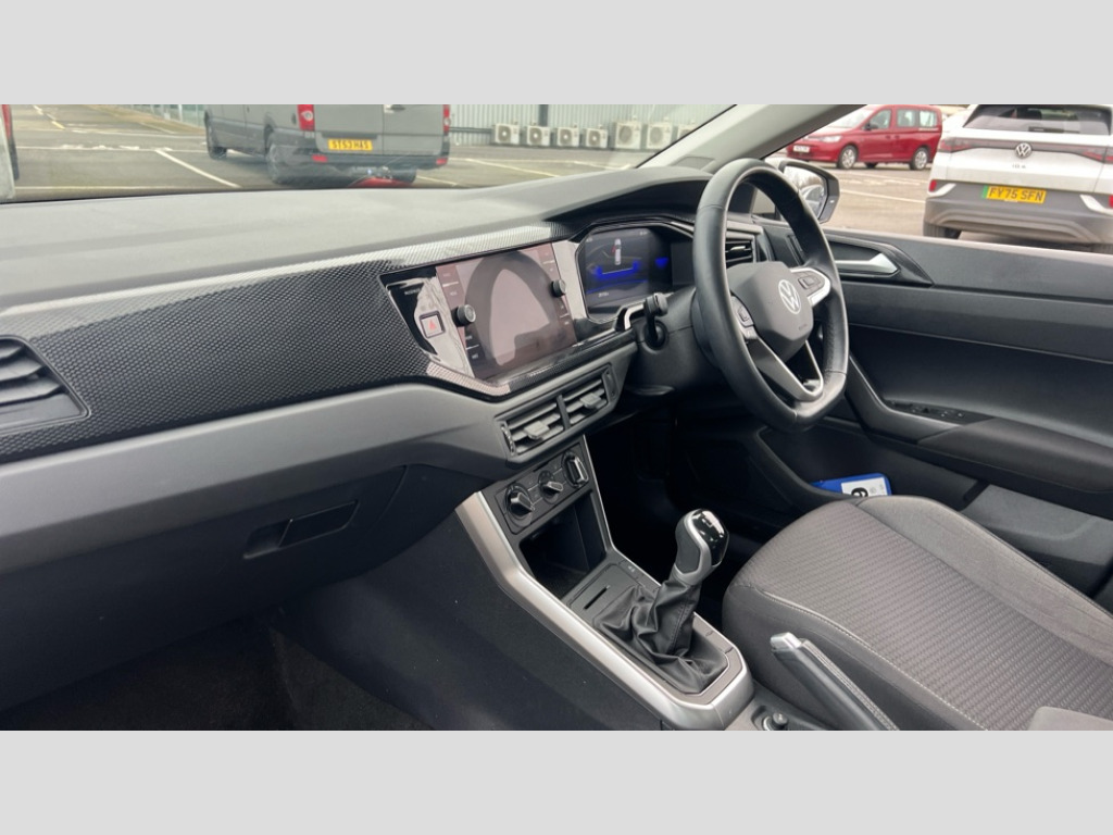 Volkswagen Polo 1.0 Life 5dr Bluetooth mobile phone interface, Cruise control + speed limiter, Driver alert system, Emergency call service, Lane keeping system Lane Assist, Power assisted speed sensitive steering, Preparation for We connect and We connect plus, Speedo and rev counter, electronic odometer, trip, service interval display and fuel gauge, Standard rear axle, Trip computer, Warning signal and warning light for front and rear seatbelts not fastened, Washer fluid level indicator, Wireless app connect, Front wheel drive, Rear shock absorpion, Start-stop system with battery regeneration (recuperation - energy recovery during braking), DAB Digital radio, Diversity antenna for FM reception, Front and rear 6 speakers, Automatic dimming interior rear view mirror, Body colour bumpers, Body colour door handles, Body colour door mirrors, Electric front windows, Heat insulating darkened glass in side and rear windows, Heat insulating glass windscreen, Power folding adjustable/heated exterior mirrors and front passenger exterior mirror lowering function, Rain sensor, Rear electric windows, Rear fog light, Rear side wing doors, Rear windscreen washer and wiper with interval delay, Third brake light, 12V power socket in centre console, 2 front and 2 rear reading lights, 2 USB-C ports in the front, 2 USB-C charging sockets on the center console in the rear, 3 rear head restraints, 60/40 split folding rear seat and rear seat bench not split, Chrome plated radiator grille inserts, air vent surrounds and light switch surrounds, Door and side trim panel, Driver and front passenger seat height adjustment, Driver/passenger sunvisors with illuminated vanity mirrors, Front centre armrest, Front seat backrest storage pockets, Front standard seats, Handbrake lever handle in leather, Hartley/Thomas cloth upholstery, Headliner in recycled material, Isofix child seat preparation easy-fit (for two outer rear seats, and front passenger seat) compatible with I-size, Leather trimmed gear knob, Luggage compartment cover, Luggage compartment floor, Luggage compartment lighting, Multifunction steering wheel, Single front passenger seat, Standard pedal cluster, Light and vision pack - Polo, 3 point height adj front seatbelts + pretensioners, 3x3 point rear seatbelts, ABS, Driver and front passenger airbag with front passenger airbag deactivation, Drivers and front passengers safety optimised head restraints, ESC (Electronic stability control) + EDL (Electronic Differntial lock) and ASR (Traction control), Extended and predictive pedestrian/ cyclist protection, Front assist including city emergency braking, Front curtain and side airbags with center airbag, Front disc brakes, Hill hold control, Manual child lock in rear doors, Rear drum brakes, Single tone horn, Tyre pressure loss indicator, Alarm with interior protection, Anti-theft alarm system with interior monitoring, backup horn, and towing protection, Anti-theft wheel bolts, Electronic engine immobiliser, Lava stone black gloss/matt decorative inserts in dash and front door panels, Low rolling resistance tyres