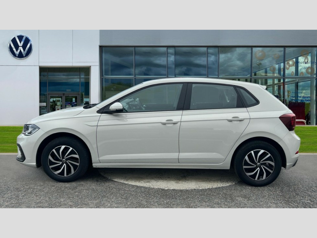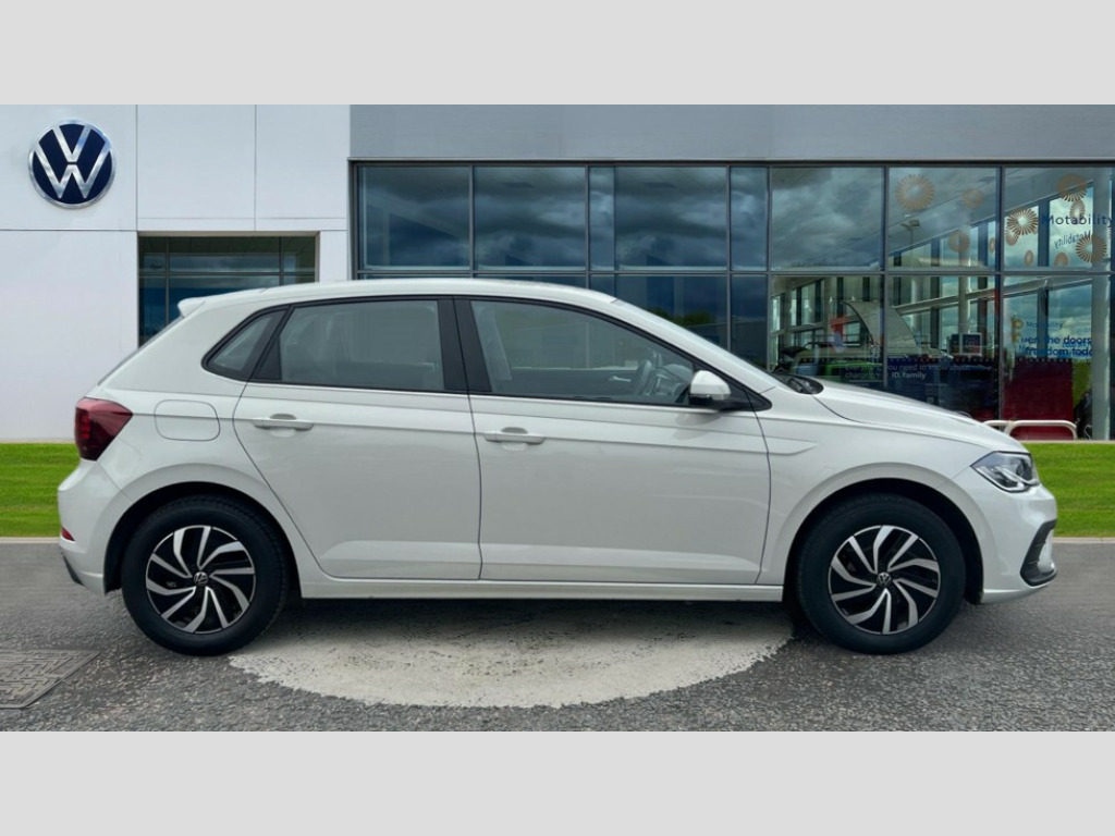 Volkswagen Polo 1.0 Life 5dr Bluetooth mobile phone interface, Cruise control + speed limiter, Driver alert system, Emergency call service, Lane keeping system Lane Assist, Power assisted speed sensitive steering, Preparation for We connect and We connect plus, Speedo and rev counter, electronic odometer, trip, service interval display and fuel gauge, Standard rear axle, Trip computer, Warning signal and warning light for front and rear seatbelts not fastened, Washer fluid level indicator, Wireless app connect, Front wheel drive, Rear shock absorpion, Start-stop system with battery regeneration (recuperation - energy recovery during braking), DAB Digital radio, Diversity antenna for FM reception, Front and rear 6 speakers, Automatic dimming interior rear view mirror, Body colour bumpers, Body colour door handles, Body colour door mirrors, Electric front windows, Heat insulating darkened glass in side and rear windows, Heat insulating glass windscreen, Power folding adjustable/heated exterior mirrors and front passenger exterior mirror lowering function, Rain sensor, Rear electric windows, Rear fog light, Rear side wing doors, Rear windscreen washer and wiper with interval delay, Third brake light, 12V power socket in centre console, 2 front and 2 rear reading lights, 2 USB-C ports in the front, 2 USB-C charging sockets on the center console in the rear, 3 rear head restraints, 60/40 split folding rear seat and rear seat bench not split, Chrome plated radiator grille inserts, air vent surrounds and light switch surrounds, Door and side trim panel, Driver and front passenger seat height adjustment, Driver/passenger sunvisors with illuminated vanity mirrors, Front centre armrest, Front seat backrest storage pockets, Front standard seats, Handbrake lever handle in leather, Hartley/Thomas cloth upholstery, Headliner in recycled material, Isofix child seat preparation easy-fit (for two outer rear seats, and front passenger seat) compatible with I-size, Leather trimmed gear knob, Luggage compartment cover, Luggage compartment floor, Luggage compartment lighting, Multifunction steering wheel, Single front passenger seat, Standard pedal cluster, Light and vision pack - Polo, 3 point height adj front seatbelts + pretensioners, 3x3 point rear seatbelts, ABS, Driver and front passenger airbag with front passenger airbag deactivation, Drivers and front passengers safety optimised head restraints, ESC (Electronic stability control) + EDL (Electronic Differntial lock) and ASR (Traction control), Extended and predictive pedestrian/ cyclist protection, Front assist including city emergency braking, Front curtain and side airbags with center airbag, Front disc brakes, Hill hold control, Manual child lock in rear doors, Rear drum brakes, Single tone horn, Tyre pressure loss indicator, Alarm with interior protection, Anti-theft alarm system with interior monitoring, backup horn, and towing protection, Anti-theft wheel bolts, Electronic engine immobiliser, Lava stone black gloss/matt decorative inserts in dash and front door panels, Low rolling resistance tyres