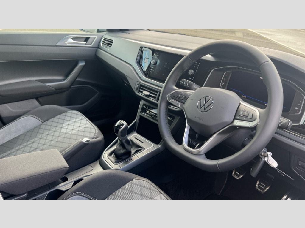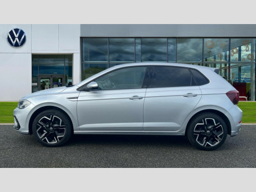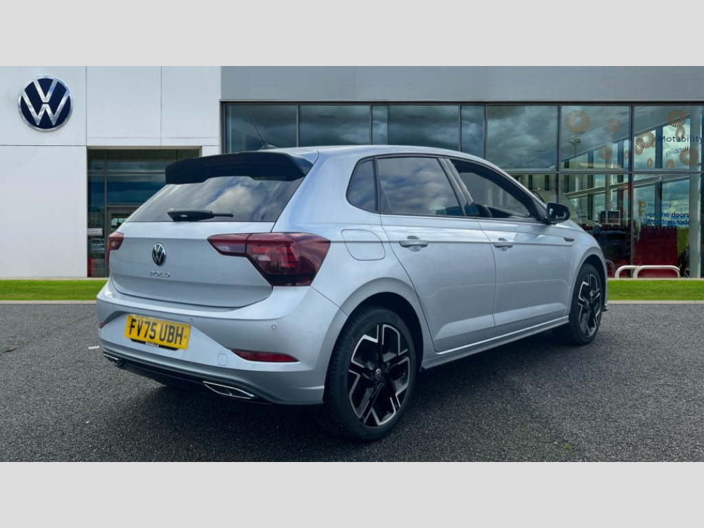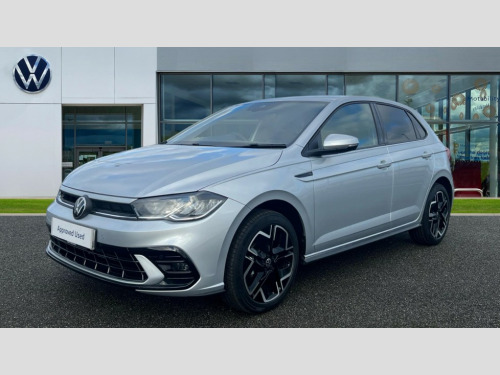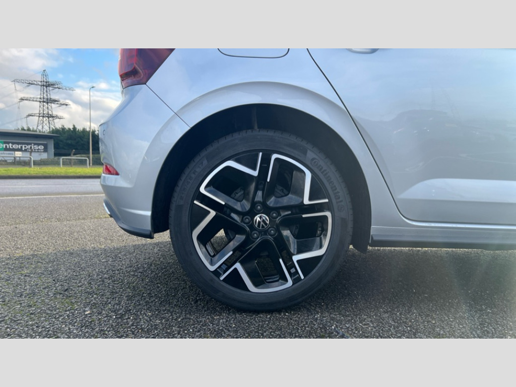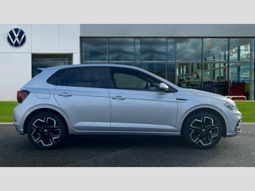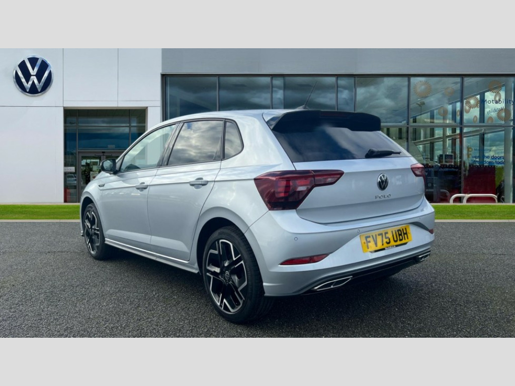 Volkswagen Polo 1.0 TSI R-Line 5dr Advanced driver attention and drowsiness monitor, Bluetooth mobile phone interface, Digital Cockpit Pro with 10.25" Display, Dynamic road sign display, Emergency call service, Mobile phone preparation with inductive charging function, Multifunction camera, Power assisted speed sensitive steering, Predictive adaptive cruise control without follow-to-stop and speed limiter, Preparation for We connect and We connect plus, Speedo and rev counter, electronic odometer, trip, service interval display and fuel gauge, Standard rear axle, Travel Assist - Lane keeping system and traffic jam assist, Travel assist including emergency assist, Trip computer, Warning signal and warning light for front and rear seatbelts not fastened, Washer fluid level indicator, Wireless app connect, Front wheel drive, Rear shock absorpion, Start-stop system with battery regeneration (recuperation - energy recovery during braking), DAB Digital radio, Diversity antenna for FM reception, Body colour bumpers, Body colour door handles, Electric front windows, Front scuff plates with R-Line logo, Heat insulating glass windscreen, Power folding adjustable/heated exterior mirrors and front passenger exterior mirror lowering function, Rear electric windows, Rear fog light, Rear side wing doors, Rear windscreen washer and wiper with interval delay, Third brake light, 12V power socket in centre console, 2 USB-C ports in the front, 2 USB-C charging sockets on the center console in the rear, 3 rear head restraints, 60/40 split folding rear seat and rear seat bench not split, Air care climatronic air conditoning system with active combination filter and 2-zone temperature control, Black roof lining, Carpet mats, front and rear, Chrome plated radiator grille inserts, air vent surrounds and light switch surrounds, Door and side trim panel, Driver and front passenger seat height adjustment, Driver/passenger sunvisors with illuminated vanity mirrors, Front centre armrest, Front footwell illumination, Front seat backrest storage pockets, Front sports comfort seats, Handbrake lever handle in leather, Headliner in recycled material, Isofix child seat preparation easy-fit (for two outer rear seats, and front passenger seat) compatible with I-size, Karoso artvelours cloth upholstery, Leather trimmed gear knob, LED interior light with switch off delay and dimmer, 2 reading lights front and rear, Luggage compartment cover, Luggage compartment floor, Luggage compartment lighting, Lumbar adjustment for front seats, Multifunction steering wheel, Single front passenger seat, Stainless steel pedals, Standard pedal cluster, Light and sight pack - Polo R-Line/Black Edition, 3 point height adj front seatbelts + pretensioners, 3x3 point rear seatbelts, ABS, Driver and front passenger airbag with front passenger airbag deactivation, Drivers and front passengers safety optimised head restraints, ESC (Electronic stability control) + EDL (Electronic Differntial lock) and ASR (Traction control), Extended and predictive pedestrian/ cyclist protection, Front curtain and side airbags with center airbag, Hill hold control, Manual child lock in rear doors, Single tone horn, Tyre pressure loss indicator, Alarm with interior protection, Anti-theft alarm system with interior monitoring, backup horn, and towing protection, Anti-theft wheel bolts, Electronic engine immobiliser, Chrome applications on rotary light, mirror adjustment, window regulator switches, outlet with frame in black, Dark grey anodised matt decorative inserts in dash and front door panels