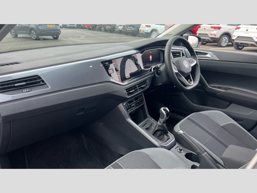 Volkswagen Polo 1.0 TSI Style 5dr Advanced driver attention and drowsiness monitor, Bluetooth mobile phone interface, Digital Cockpit Pro with 10.25" Display, Dynamic road sign display, Emergency call service, Multifunction camera, Power assisted speed sensitive steering, Predictive adaptive cruise control without follow-to-stop and speed limiter, Preparation for We connect and We connect plus, Speedo and rev counter, electronic odometer, trip, service interval display and fuel gauge, Standard rear axle, Travel Assist - Lane keeping system and traffic jam assist, Travel assist including emergency assist, Trip computer, Warning signal and warning light for front and rear seatbelts not fastened, Washer fluid level indicator, Wireless app connect, Front wheel drive, Rear shock absorpion, Start-stop system with battery regeneration (recuperation - energy recovery during braking), DAB Digital radio, Diversity antenna for FM reception, Front and rear 6 speakers, Automatic dimming interior rear view mirror, Automatic headlights, Body colour door handles, Body coloured bumpers and radiator grille with chrome trims, Electric front windows, Heat insulating glass windscreen, LED separate daytime running lights with coming/leaving home function, Power folding adjustable/heated exterior mirrors and front passenger exterior mirror lowering function, Rain sensor, Rear electric windows, Rear fog light, Rear side wing doors, Rear windscreen washer and wiper with interval delay, Third brake light, 12V power socket in centre console, 2 USB-C ports in the front, 2 USB-C charging sockets on the center console in the rear, 3 rear head restraints, 60/40 split folding rear seat and rear seat bench not split, Air care climatronic air conditoning system with active combination filter and 2-zone temperature control, Ambient lighting, Carpet mats, front and rear, Chrome plated radiator grille inserts, air vent surrounds and light switch surrounds, Door and side trim panel, Driver and front passenger seat height adjustment, Driver/passenger sunvisors with illuminated vanity mirrors, Front centre armrest, Front footwell illumination, Front seat backrest storage pockets, Front sports comfort seats, Handbrake lever handle in leather, Headliner in recycled material, Isofix child seat preparation easy-fit (for two outer rear seats, and front passenger seat) compatible with I-size, Leather trimmed gear knob, LED interior light with switch off delay and dimmer, 2 reading lights front and rear, Luggage compartment cover, Luggage compartment floor, Luggage compartment lighting, Lumbar adjustment for front seats, Multifunction steering wheel, Single front passenger seat, Standard pedal cluster, IQ LED matrix headlights pack - Polo, Light and vision pack - Polo, 3 point height adj front seatbelts + pretensioners, 3x3 point rear seatbelts, ABS, Driver and front passenger airbag with front passenger airbag deactivation, Drivers and front passengers safety optimised head restraints, ESC (Electronic stability control) + EDL (Electronic Differntial lock) and ASR (Traction control), Extended and predictive pedestrian/ cyclist protection, Front curtain and side airbags with center airbag, Front disc brakes, Hill hold control, Manual child lock in rear doors, Rear drum brakes, Single tone horn, Tyre pressure loss indicator, Alarm with interior protection, Anti-theft alarm system with interior monitoring, backup horn, and towing protection, Anti-theft wheel bolts, Electronic engine immobiliser, Chrome applications on rotary light, mirror adjustment, window regulator switches, outlet with frame in black, Low rolling resistance tyres