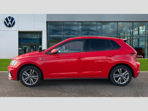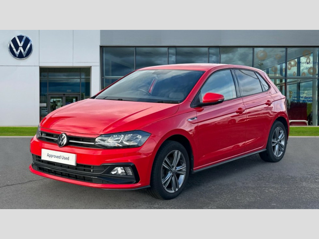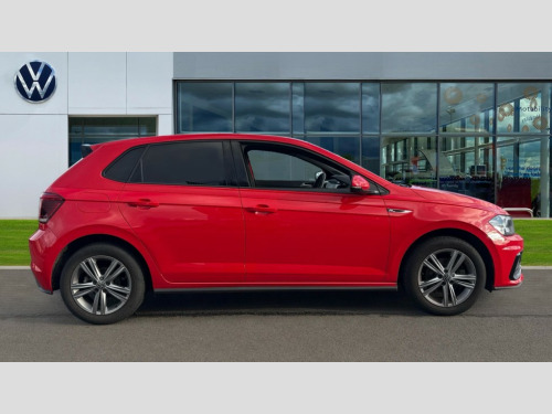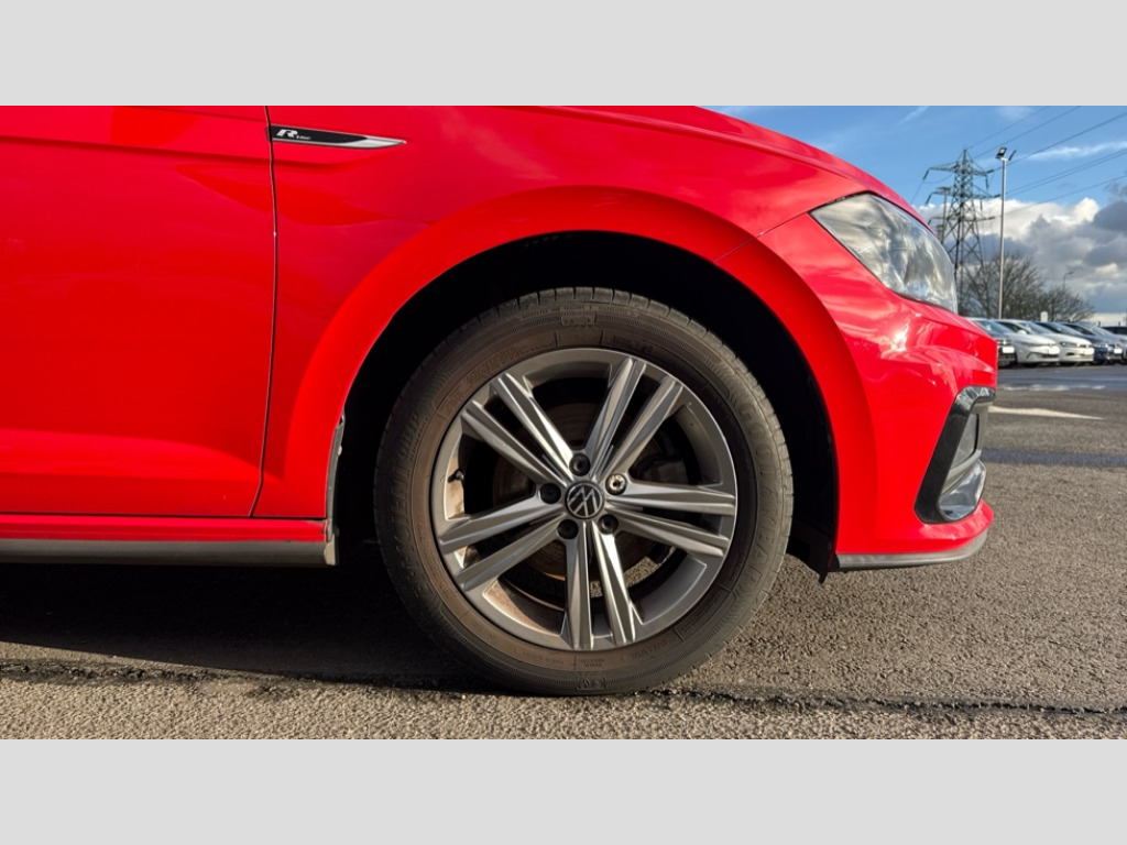 Volkswagen Polo 1.0 TSI 110 R-Line 5dr Digital clock, Driver alert system, Emergency call service, Lights on warning, Multifunction computer plus, Power assisted speed sensitive steering, Speedo and rev counter, electronic odometer, trip, service interval display and fuel gauge, Start/stop system, Volkswagen connect, Warning buzzer and light for front seatbelts unfastened, Wireless app connect, Battery regeneration during braking, Galvanished body, DAB digital audio broadcast, Diversity antenna for FM reception, Black grille with chrome surround, Body colour door handles, Body coloured side sills, Chrome trimmed strip on lower bumper, Electric front windows, Electrically foldable, adjustable and heated door mirrors with reverse activated kerb view adjustment on passenger's side, Front windscreen washers and wipers with 4 speed intermittent delay, Heated rear window with auto timer, High level 3rd brake light, LED darkened rear light clusters, LED daytime running lights, LED rear number plate lights, Left and right chrome effect trapezoid fascia exhaust tailpipe surrounds, Rear diffuser, Rear electric windows, Rear windscreen washer and wiper with interval delay, reverse activated, Unique R Line badging, 2 bag hooks in luggage compartment, 2 front cupholders and 12 V socket with cover, 3 rear head restraints, 60/40 split folding rear seat, Ambient lighting in front foorwell, front/rear door and dashboard light strips, Carbon flag cloth upholstery, Centre console storage with open storage compartment, Chrome-plated electric mirror adjustment switch surround, Chrome-plated electric window button surround, Driver and front passenger seat height adjustment, Driver and front passenger sunvisors with illuminated vanity mirrors, Dust/pollen filter, Folding rear seat backrest, Front + rear carpet mats, Front centre armrest with 2 x USB-C ports in front and 2 x USB-C ports in the rear, Front head restraints, Front seat backrest storage pockets, Front sport seats with lumbar adjustment and R line logo on seat backrest, Gear lever gaiter in black trim surround, Glovebox, Handbrake grip button in chrome effect, Height/reach adjustable steering column, Instrument lighting, adjustable panel illumination, Interior light with delay, Isofix Preparation 2 Rear child seats, Leather gear knob and handbrake grip, LED interior lighting - 2 reading lights front and rear with interior delay and dimming function, Luggage compartment cover, removable, Luggage compartment lighting, Luggage compartment with variable load floor, Stainless steel pedals, Storage compartment in front doors, Storage compartment in rear doors, Storage compartment under front seats, Three spoke leather trimmed multifunction steering wheel with aluminium inserts and R Line Logo, Titanium black roof lining and sun visors, Unique R Line door sill protectors, Light and sight pack - Polo, R Line styling pack - Polo, 3 point height adj front seatbelts + pretensioners, 3x3 point rear seatbelts, ABS, Automatic post collision braking, Driver/front passenger airbag, Drivers and front passengers safety optimised head restraints, ESP with EDL + ASR, Front and rear passenger curtain airbags, Front passenger airbag deactivation, Front seat side impact airbags, Front/rear disc brakes, Hill hold control, Hydraulic Brake Assist (HBA), Single tone horn, Tyre pressure monitoring system, Alarm with interior protection and deactivation via infotainment system, Electronic engine immobiliser, Remote central locking with 2 remote folding keys, Chrome plated air vent surround, Chrome plated instrument surrounds, Shadow steel decorative inserts