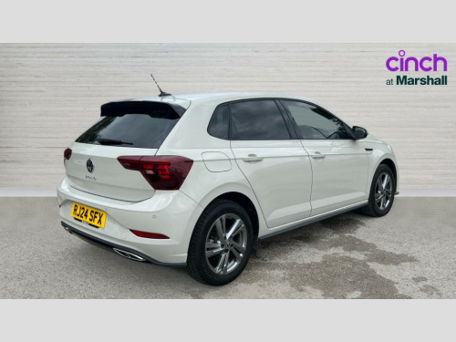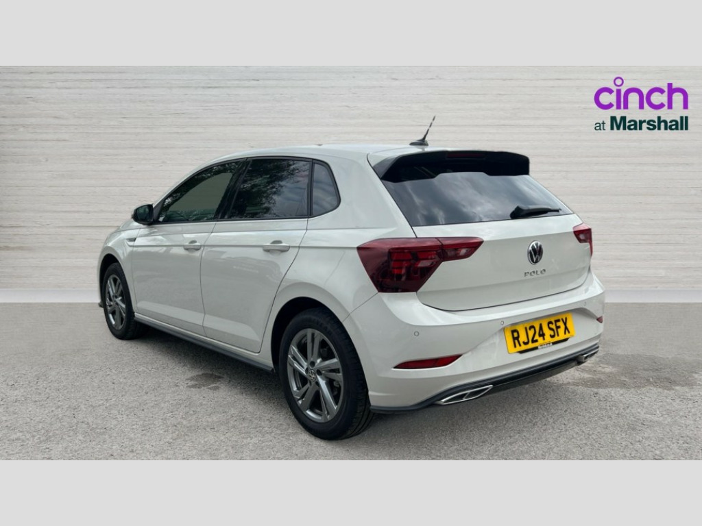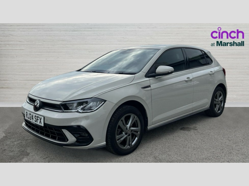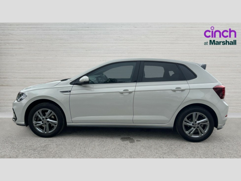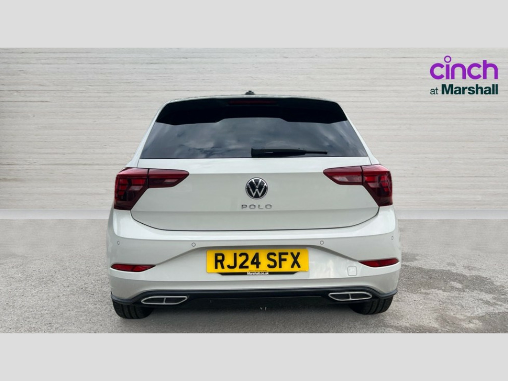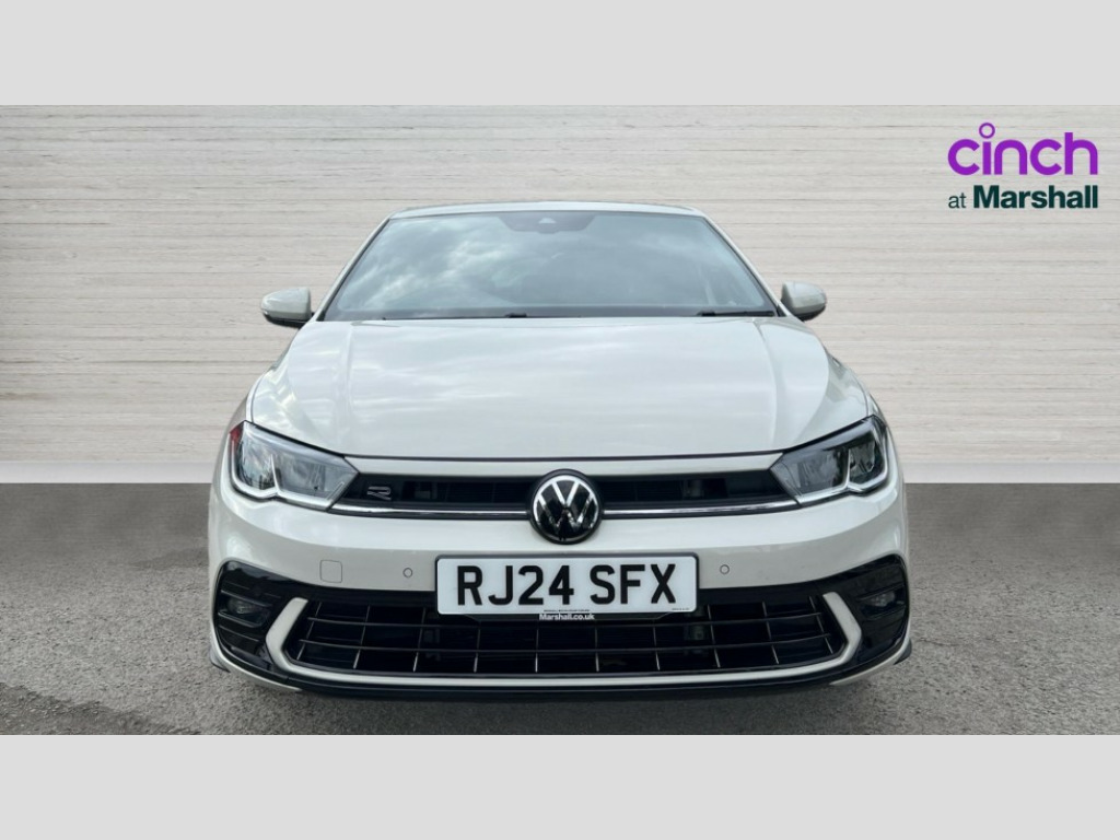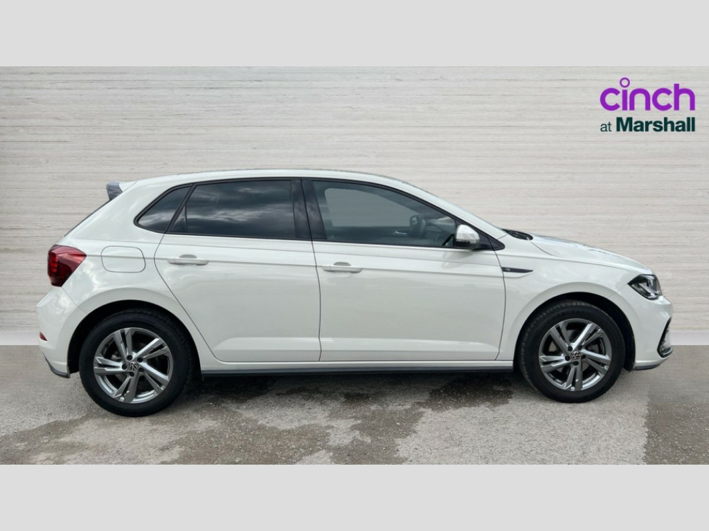 Volkswagen Polo 1.0 TSI 110 R-Line 5dr DSG Adaptive cruise control with follow-to-stop and speed limiter, Bluetooth mobile phone interface, Digital Cockpit Pro with 10.25" Display, Driver alert system, Dynamic road sign display, Emergency call service, Power assisted speed sensitive steering, Preparation for We connect and We connect plus, Speedo and rev counter, electronic odometer, trip, service interval display and fuel gauge, Standard rear axle, Travel Assist - Lane keeping system and traffic jam assist, Travel assist including emergency assist, Trip computer, Warning signal and warning light for front and rear seatbelts not fastened, Washer fluid level indicator, Wireless app connect, Front wheel drive, Rear shock absorpion, Start-stop system with battery regeneration (recuperation - energy recovery during braking), DAB Digital radio, Diversity antenna for FM reception, Front and rear 6 speakers, Auto headlights, Body colour bumpers, Body colour door handles, Body colour door mirrors, Electric front windows, Front scuff plates with R-Line logo, Heat insulating darkened glass in side and rear windows, Heat insulating glass windscreen, Power folding adjustable/heated exterior mirrors and front passenger exterior mirror lowering function, Rear electric windows, Rear fog light, Rear side wing doors, Rear tinted glass from B-pillar backwards approx 65% tinted, Rear windscreen washer and wiper with interval delay, Third brake light, 12V power socket in centre console, 2 USB-C ports in the front, 2 USB-C charging sockets on the center console in the rear, 3 rear head restraints, 60/40 split folding rear seat and rear seat bench not split, Air care climatronic air conditoning system with active combination filter and 2-zone temperature control, Black roof lining, Chrome plated radiator grille inserts, air vent surrounds and light switch surrounds, Door and side trim panel, Driver and front passenger seat height adjustment, Driver/passenger sunvisors with illuminated vanity mirrors, Front + rear carpet mats in recycled material, Front centre armrest, Front footwell illumination, Front seat backrest storage pockets, Front sports comfort seats, Handbrake lever handle in leather, Headliner in recycled material, Isofix child seat preparation easy-fit (for two outer rear seats, and front passenger seat) compatible with I-size, Karoso artvelours cloth upholstery, Leather trimmed gear knob, LED interior light with switch off delay and dimmer, 2 reading lights front and rear, Luggage compartment cover, Luggage compartment floor, Luggage compartment lighting, Lumbar adjustment for front seats, Single front passenger seat, Stainless steel pedals, Standard pedal cluster, Three spoke leather wrapped multifunction steering wheel with shifting paddles, Light and sight pack - Polo R-Line/Black Edition, 3 point height adj front seatbelts + pretensioners, 3x3 point rear seatbelts, ABS, Driver and front passenger airbag with front passenger airbag deactivation, Drivers and front passengers safety optimised head restraints, ESC (Electronic stability control) + EDL (Electronic Differntial lock) and ASR (Traction control), Extended and predictive pedestrian/ cyclist protection, Front curtain and side airbags with center airbag, Front/rear disc brakes, Hill hold control, Manual child lock in rear doors, Single tone horn, Tyre pressure loss indicator, Alarm with interior protection, Anti-theft alarm system with interior monitoring, backup horn, and towing protection, Anti-theft wheel bolts, Electronic engine immobiliser, Chrome applications on rotary light, mirror adjustment, window regulator switches, outlet with frame in black, Dark grey anodised matt decorative inserts in dash and front door panels, Low rolling resistance tyres