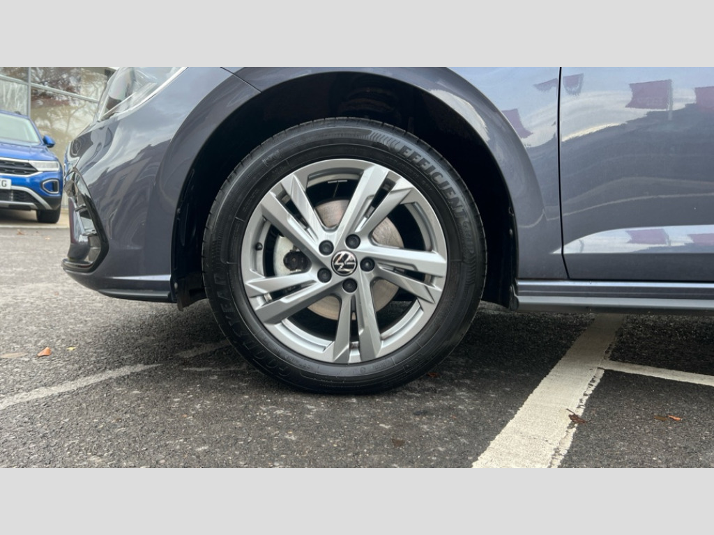 Volkswagen Polo 1.0 TSI 110 R-Line 5dr DSG Adaptive cruise control with follow-to-stop and speed limiter, Bluetooth mobile phone interface, Digital Cockpit Pro with 10.25" Display, Driver alert system, Dynamic road sign display, Emergency call service, Power assisted speed sensitive steering, Preparation for We connect and We connect plus, Speedo and rev counter, electronic odometer, trip, service interval display and fuel gauge, Standard rear axle, Travel Assist - Lane keeping system and traffic jam assist, Travel assist including emergency assist, Trip computer, Warning signal and warning light for front and rear seatbelts not fastened, Washer fluid level indicator, Wireless app connect, Front wheel drive, Rear shock absorpion, Start-stop system with battery regeneration (recuperation - energy recovery during braking), DAB Digital radio, Diversity antenna for FM reception, Front and rear 6 speakers, Auto headlights, Body colour bumpers, Body colour door handles, Body colour door mirrors, Electric front windows, Front scuff plates with R-Line logo, Heat insulating darkened glass in side and rear windows, Heat insulating glass windscreen, Power folding adjustable/heated exterior mirrors and front passenger exterior mirror lowering function, Rear electric windows, Rear fog light, Rear side wing doors, Rear tinted glass from B-pillar backwards approx 65% tinted, Rear windscreen washer and wiper with interval delay, Third brake light, 12V power socket in centre console, 2 USB-C ports in the front, 2 USB-C charging sockets on the center console in the rear, 3 rear head restraints, 60/40 split folding rear seat and rear seat bench not split, Air care climatronic air conditoning system with active combination filter and 2-zone temperature control, Black roof lining, Chrome plated radiator grille inserts, air vent surrounds and light switch surrounds, Door and side trim panel, Driver and front passenger seat height adjustment, Driver/passenger sunvisors with illuminated vanity mirrors, Front + rear carpet mats in recycled material, Front centre armrest, Front footwell illumination, Front seat backrest storage pockets, Front sports comfort seats, Handbrake lever handle in leather, Headliner in recycled material, Isofix child seat preparation easy-fit (for two outer rear seats, and front passenger seat) compatible with I-size, Karoso artvelours cloth upholstery, Leather trimmed gear knob, LED interior light with switch off delay and dimmer, 2 reading lights front and rear, Luggage compartment cover, Luggage compartment floor, Luggage compartment lighting, Lumbar adjustment for front seats, Single front passenger seat, Stainless steel pedals, Standard pedal cluster, Three spoke leather wrapped multifunction steering wheel with shifting paddles, Light and sight pack - Polo R-Line/Black Edition, 3 point height adj front seatbelts + pretensioners, 3x3 point rear seatbelts, ABS, Driver and front passenger airbag with front passenger airbag deactivation, Drivers and front passengers safety optimised head restraints, ESC (Electronic stability control) + EDL (Electronic Differntial lock) and ASR (Traction control), Extended and predictive pedestrian/ cyclist protection, Front curtain and side airbags with center airbag, Front/rear disc brakes, Hill hold control, Manual child lock in rear doors, Single tone horn, Tyre pressure loss indicator, Alarm with interior protection, Anti-theft alarm system with interior monitoring, backup horn, and towing protection, Anti-theft wheel bolts, Electronic engine immobiliser, Chrome applications on rotary light, mirror adjustment, window regulator switches, outlet with frame in black, Dark grey anodised matt decorative inserts in dash and front door panels, Low rolling resistance tyres