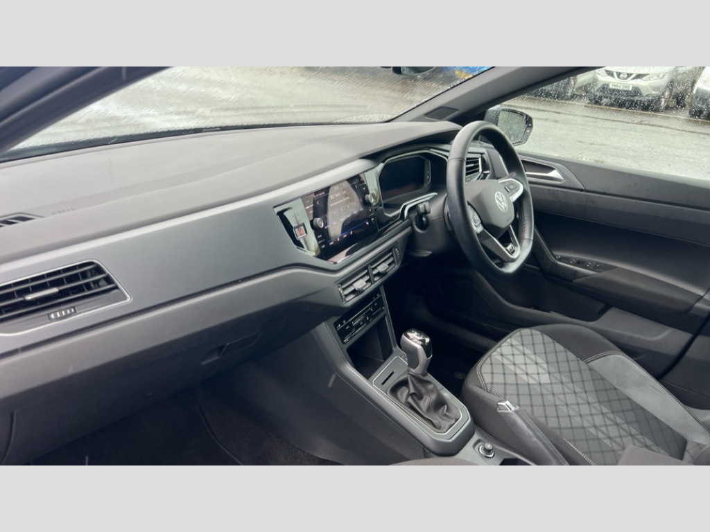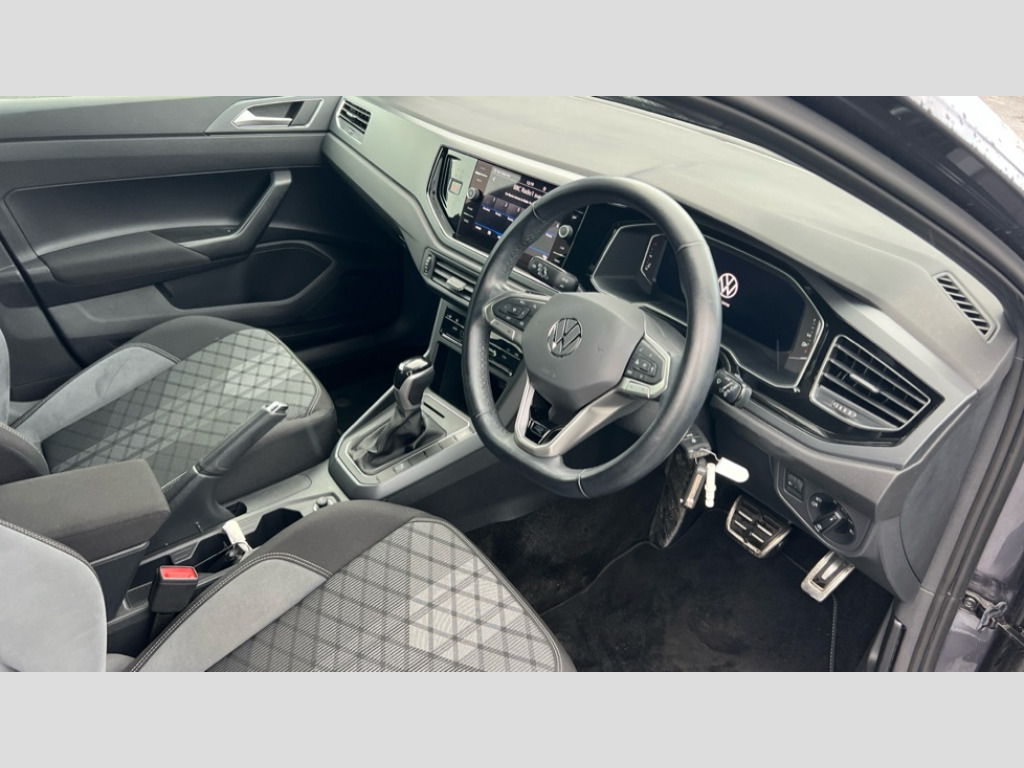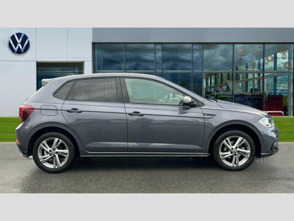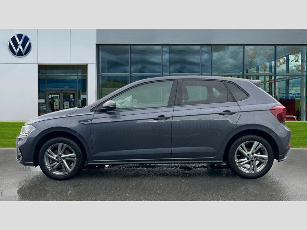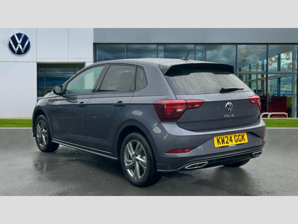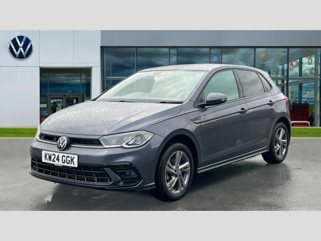 Volkswagen Polo 1.0 TSI 110 R-Line 5dr DSG Adaptive cruise control with follow-to-stop and speed limiter, Bluetooth mobile phone interface, Digital Cockpit Pro with 10.25" Display, Driver alert system, Dynamic road sign display, Emergency call service, Power assisted speed sensitive steering, Preparation for We connect and We connect plus, Speedo and rev counter, electronic odometer, trip, service interval display and fuel gauge, Standard rear axle, Travel Assist - Lane keeping system and traffic jam assist, Travel assist including emergency assist, Trip computer, Warning signal and warning light for front and rear seatbelts not fastened, Washer fluid level indicator, Wireless app connect, Front wheel drive, Rear shock absorpion, Start-stop system with battery regeneration (recuperation - energy recovery during braking), DAB Digital radio, Diversity antenna for FM reception, Front and rear 6 speakers, Auto headlights, Body colour bumpers, Body colour door handles, Body colour door mirrors, Electric front windows, Front scuff plates with R-Line logo, Heat insulating darkened glass in side and rear windows, Heat insulating glass windscreen, Power folding adjustable/heated exterior mirrors and front passenger exterior mirror lowering function, Rear electric windows, Rear fog light, Rear side wing doors, Rear tinted glass from B-pillar backwards approx 65% tinted, Rear windscreen washer and wiper with interval delay, Third brake light, 12V power socket in centre console, 2 USB-C ports in the front, 2 USB-C charging sockets on the center console in the rear, 3 rear head restraints, 60/40 split folding rear seat and rear seat bench not split, Air care climatronic air conditoning system with active combination filter and 2-zone temperature control, Black roof lining, Chrome plated radiator grille inserts, air vent surrounds and light switch surrounds, Door and side trim panel, Driver and front passenger seat height adjustment, Driver/passenger sunvisors with illuminated vanity mirrors, Front + rear carpet mats in recycled material, Front centre armrest, Front footwell illumination, Front seat backrest storage pockets, Front sports comfort seats, Handbrake lever handle in leather, Headliner in recycled material, Isofix child seat preparation easy-fit (for two outer rear seats, and front passenger seat) compatible with I-size, Karoso artvelours cloth upholstery, Leather trimmed gear knob, LED interior light with switch off delay and dimmer, 2 reading lights front and rear, Luggage compartment cover, Luggage compartment floor, Luggage compartment lighting, Lumbar adjustment for front seats, Single front passenger seat, Stainless steel pedals, Standard pedal cluster, Three spoke leather wrapped multifunction steering wheel with shifting paddles, Light and sight pack - Polo R-Line/Black Edition, 3 point height adj front seatbelts + pretensioners, 3x3 point rear seatbelts, ABS, Driver and front passenger airbag with front passenger airbag deactivation, Drivers and front passengers safety optimised head restraints, ESC (Electronic stability control) + EDL (Electronic Differntial lock) and ASR (Traction control), Extended and predictive pedestrian/ cyclist protection, Front curtain and side airbags with center airbag, Front/rear disc brakes, Hill hold control, Manual child lock in rear doors, Single tone horn, Tyre pressure loss indicator, Alarm with interior protection, Anti-theft alarm system with interior monitoring, backup horn, and towing protection, Anti-theft wheel bolts, Electronic engine immobiliser, Chrome applications on rotary light, mirror adjustment, window regulator switches, outlet with frame in black, Dark grey anodised matt decorative inserts in dash and front door panels, Low rolling resistance tyres