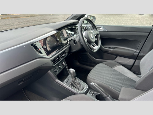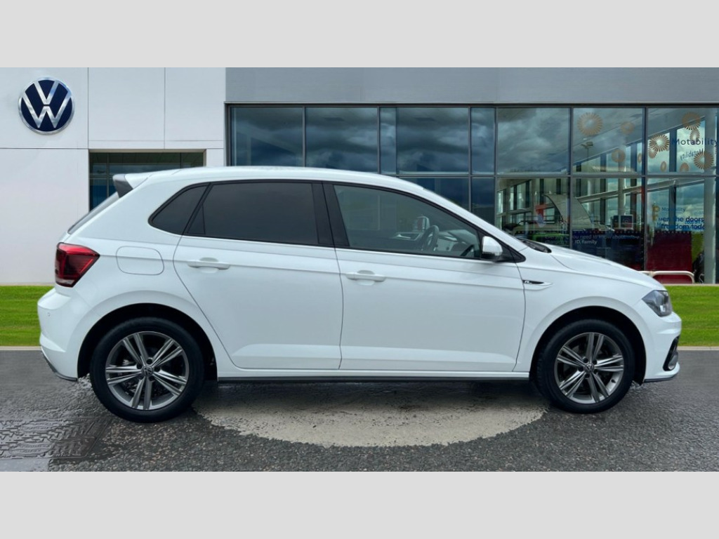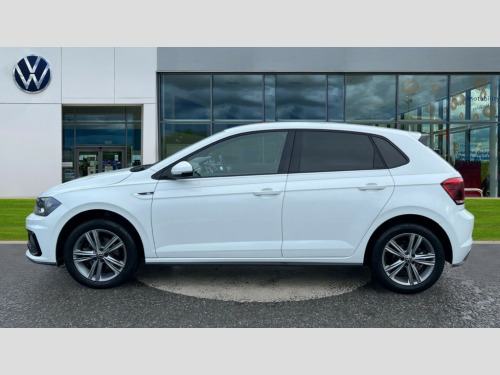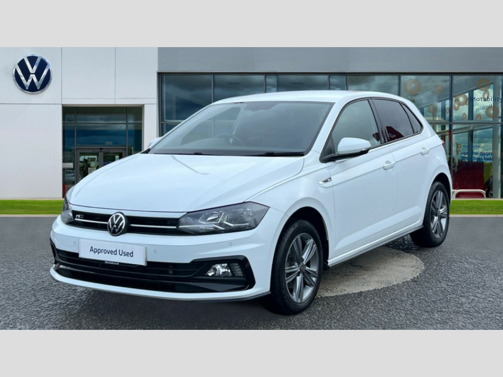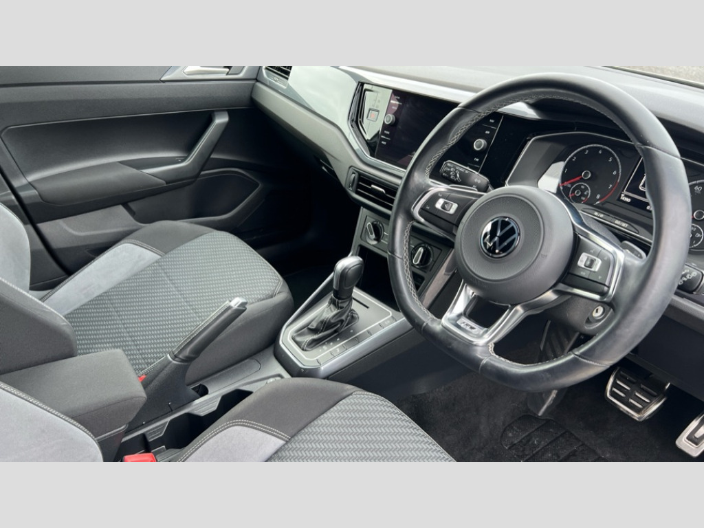 Volkswagen Polo 1.0 TSI 110 R-Line 5dr DSG Digital clock, Driver alert system, Emergency call service, Lights on warning, Multifunction computer plus, Power assisted speed sensitive steering, Speedo and rev counter, electronic odometer, trip, service interval display and fuel gauge, Start/stop system, Volkswagen connect, Warning buzzer and light for front seatbelts unfastened, Wireless app connect, Battery regeneration during braking, Galvanished body, Diversity antenna for FM reception, Front and rear 6 speakers, Black grille with chrome surround, Body colour door handles, Body coloured side sills, Chrome trimmed strip on lower bumper, Electric front windows, Electrically adjustable and heated door mirrors with reverse activated kerb view adjustment on passenger's side, Front windscreen washers and wipers with 4 speed intermittent delay, Heated rear window with auto timer, High level 3rd brake light, LED darkened rear light clusters, LED daytime running lights, LED rear number plate lights, Left and right chrome effect trapezoid fascia exhaust tailpipe surrounds, Rear diffuser, Rear electric windows, Rear windscreen washer and wiper with interval delay, reverse activated, Unique R Line badging, 2 bag hooks in luggage compartment, 2 front cupholders and 12 V socket with cover, 3 rear head restraints, 60/40 split folding rear seat, Ambient lighting in front foorwell, front/rear door and dashboard light strips, Carbon flag cloth upholstery, Centre console storage with open storage compartment, Chrome-plated electric mirror adjustment switch surround, Chrome-plated electric window button surround, Driver and front passenger seat height adjustment, Driver and front passenger sunvisors with illuminated vanity mirrors, Dust/pollen filter, Folding rear seat backrest, Front + rear carpet mats, Front head restraints, Front seat backrest storage pockets, Front sport seats with lumbar adjustment and R line logo on seat backrest, Gear lever gaiter in black trim surround, Glovebox, Handbrake grip button in chrome effect, Height/reach adjustable steering column, Instrument lighting, adjustable panel illumination, Interior light with delay, Isofix Preparation 2 Rear child seats, Leather gear knob and handbrake grip, LED interior lighting - 2 reading lights front and rear with interior delay and dimming function, Luggage compartment cover, removable, Luggage compartment lighting, Luggage compartment with variable load floor, Stainless steel pedals, Storage compartment in front doors, Storage compartment in rear doors, Storage compartment under front seats, Three spoke leather wrapped multifunction sports steering wheel with shifting paddles, Titanium black roof lining and sun visors, Unique R Line door sill protectors, Light and sight pack - Polo, R Line styling pack - Polo, 3 point height adj front seatbelts + pretensioners, 3x3 point rear seatbelts, ABS, Automatic post collision braking, Driver/front passenger airbag, Drivers and front passengers safety optimised head restraints, ESP with EDL + ASR, Front and rear passenger curtain airbags, Front passenger airbag deactivation, Front seat side impact airbags, Front/rear disc brakes, Hill hold control, Hydraulic Brake Assist (HBA), Single tone horn, Tyre pressure monitoring system, Alarm with interior protection and deactivation via infotainment system, Electronic engine immobiliser, Remote central locking with 2 remote folding keys, Chrome plated air vent surround, Chrome plated instrument surrounds, Shadow steel decorative inserts