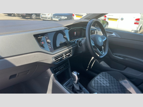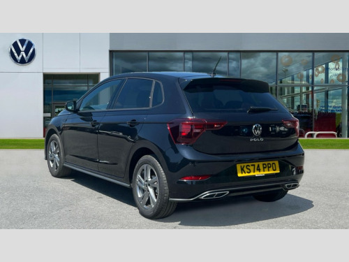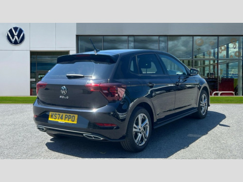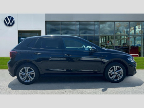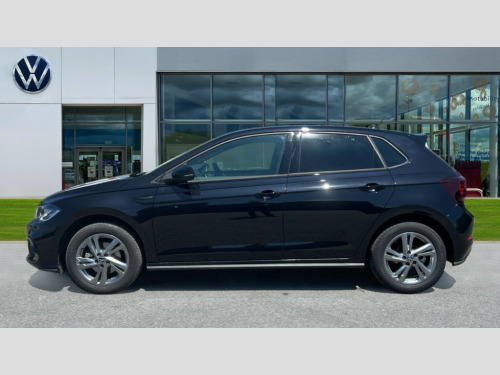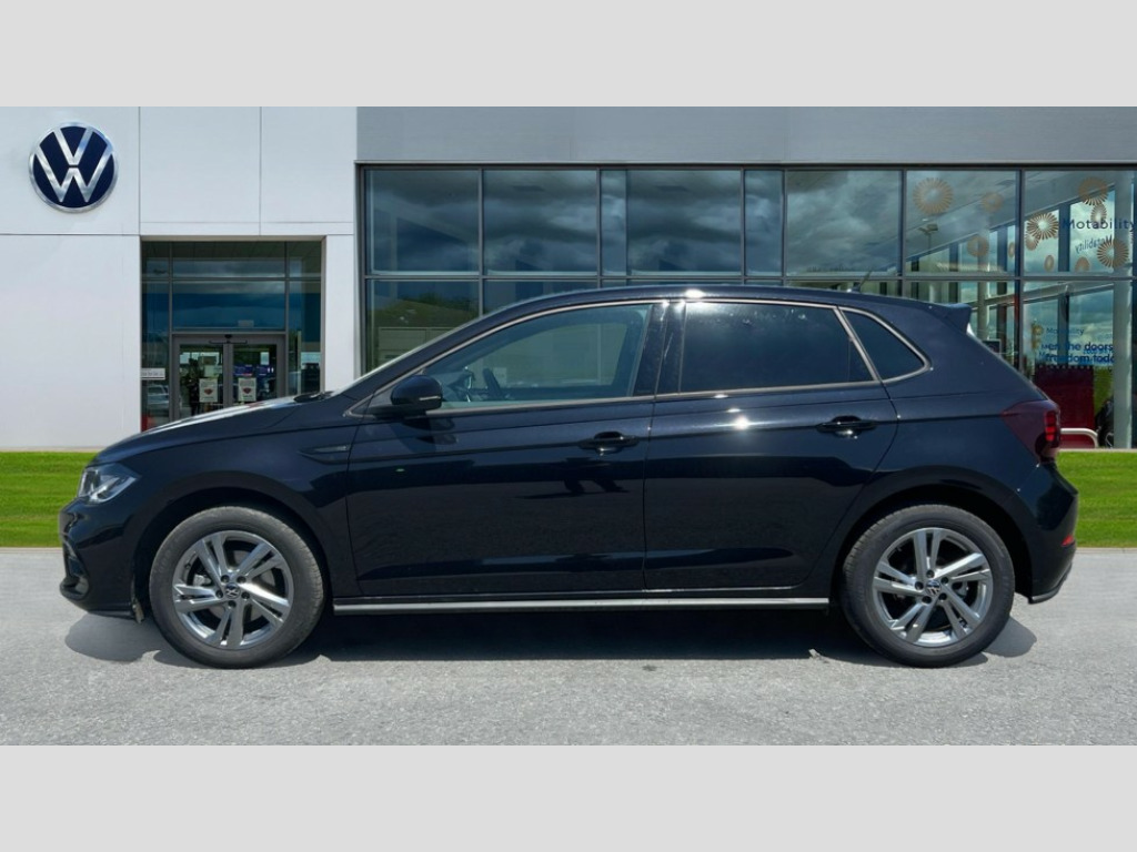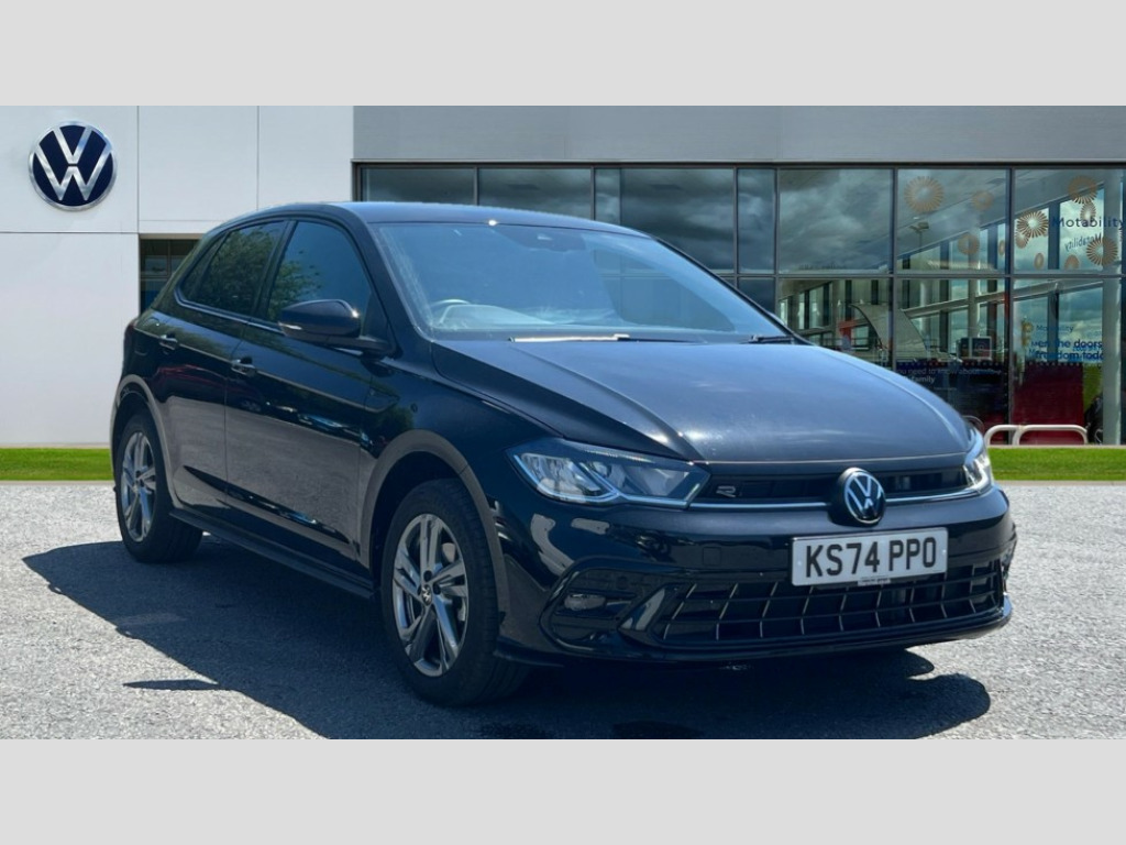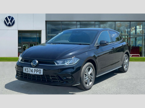 Volkswagen Polo 1.0 TSI 115 R-Line 5dr DSG Adaptive cruise control with follow-to-stop and speed limiter, Advanced driver attention and drowsiness monitor, Bluetooth mobile phone interface, Digital Cockpit Pro with 10.25" Display, Dynamic road sign display, Emergency call service, Multifunction camera, Power assisted speed sensitive steering, Preparation for We connect and We connect plus, Speedo and rev counter, electronic odometer, trip, service interval display and fuel gauge, Standard rear axle, Travel Assist - Lane keeping system and traffic jam assist, Travel assist including emergency assist, Trip computer, Warning signal and warning light for front and rear seatbelts not fastened, Washer fluid level indicator, Wireless app connect, Front wheel drive, Rear shock absorpion, Start-stop system with battery regeneration (recuperation - energy recovery during braking), DAB Digital radio, Diversity antenna for FM reception, Front and rear 6 speakers, Body colour bumpers, Body colour door handles, Electric front windows, Front scuff plates with R-Line logo, Heat insulating glass windscreen, Power folding adjustable/heated exterior mirrors and front passenger exterior mirror lowering function, Rear electric windows, Rear fog light, Rear side wing doors, Rear windscreen washer and wiper with interval delay, Third brake light, 12V power socket in centre console, 2 USB-C ports in the front, 2 USB-C charging sockets on the center console in the rear, 3 rear head restraints, 60/40 split folding rear seat and rear seat bench not split, Air care climatronic air conditoning system with active combination filter and 2-zone temperature control, Black roof lining, Carpet mats, front and rear, Chrome plated radiator grille inserts, air vent surrounds and light switch surrounds, Door and side trim panel, Driver and front passenger seat height adjustment, Driver/passenger sunvisors with illuminated vanity mirrors, Front centre armrest, Front footwell illumination, Front seat backrest storage pockets, Front sports comfort seats, Handbrake lever handle in leather, Headliner in recycled material, Isofix child seat preparation easy-fit (for two outer rear seats, and front passenger seat) compatible with I-size, Karoso artvelours cloth upholstery, Leather trimmed gear knob, LED interior light with switch off delay and dimmer, 2 reading lights front and rear, Luggage compartment cover, Luggage compartment floor, Luggage compartment lighting, Lumbar adjustment for front seats, Single front passenger seat, Stainless steel pedals, Standard pedal cluster, Three spoke leather wrapped multifunction steering wheel with shifting paddles, Light and sight pack - Polo R-Line/Black Edition, 3 point height adj front seatbelts + pretensioners, 3x3 point rear seatbelts, ABS, Driver and front passenger airbag with front passenger airbag deactivation, Drivers and front passengers safety optimised head restraints, ESC (Electronic stability control) + EDL (Electronic Differntial lock) and ASR (Traction control), Extended and predictive pedestrian/ cyclist protection, Front curtain and side airbags with center airbag, Front/rear disc brakes, Hill hold control, Manual child lock in rear doors, Single tone horn, Tyre pressure loss indicator, Alarm with interior protection, Anti-theft alarm system with interior monitoring, backup horn, and towing protection, Anti-theft wheel bolts, Electronic engine immobiliser, Chrome applications on rotary light, mirror adjustment, window regulator switches, outlet with frame in black, Dark grey anodised matt decorative inserts in dash and front door panels, 16" Coventry alloy wheels, Low rolling resistance tyres