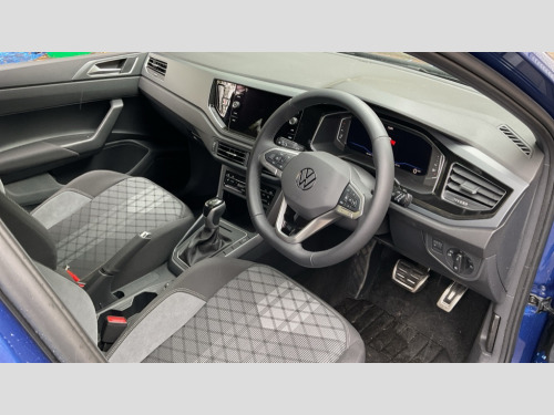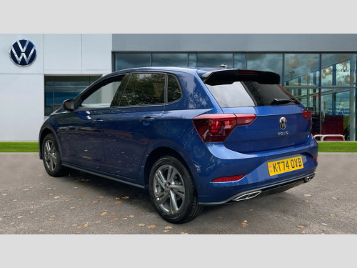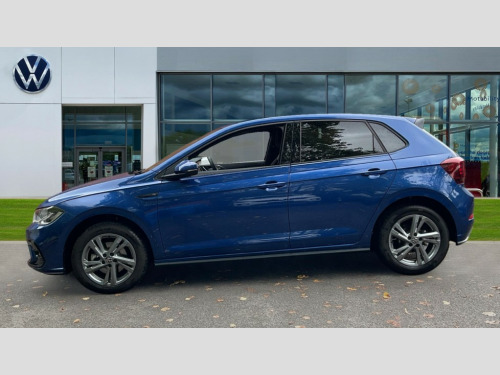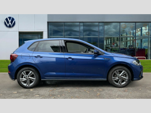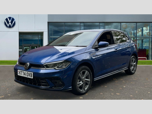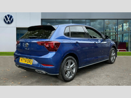 Volkswagen Polo 1.0 TSI 115 R-Line 5dr DSG Adaptive cruise control with follow-to-stop and speed limiter, Advanced driver attention and drowsiness monitor, Bluetooth mobile phone interface, Digital Cockpit Pro with 10.25" Display, Dynamic road sign display, Emergency call service, Multifunction camera, Power assisted speed sensitive steering, Preparation for We connect and We connect plus, Speedo and rev counter, electronic odometer, trip, service interval display and fuel gauge, Standard rear axle, Travel Assist - Lane keeping system and traffic jam assist, Travel assist including emergency assist, Trip computer, Warning signal and warning light for front and rear seatbelts not fastened, Washer fluid level indicator, Wireless app connect, Front wheel drive, Rear shock absorpion, Start-stop system with battery regeneration (recuperation - energy recovery during braking), DAB Digital radio, Diversity antenna for FM reception, Front and rear 6 speakers, Body colour bumpers, Body colour door handles, Electric front windows, Front scuff plates with R-Line logo, Heat insulating glass windscreen, Power folding adjustable/heated exterior mirrors and front passenger exterior mirror lowering function, Rear electric windows, Rear fog light, Rear side wing doors, Rear windscreen washer and wiper with interval delay, Third brake light, 12V power socket in centre console, 2 USB-C ports in the front, 2 USB-C charging sockets on the center console in the rear, 3 rear head restraints, 60/40 split folding rear seat and rear seat bench not split, Air care climatronic air conditoning system with active combination filter and 2-zone temperature control, Black roof lining, Carpet mats, front and rear, Chrome plated radiator grille inserts, air vent surrounds and light switch surrounds, Door and side trim panel, Driver and front passenger seat height adjustment, Driver/passenger sunvisors with illuminated vanity mirrors, Front centre armrest, Front footwell illumination, Front seat backrest storage pockets, Front sports comfort seats, Handbrake lever handle in leather, Headliner in recycled material, Isofix child seat preparation easy-fit (for two outer rear seats, and front passenger seat) compatible with I-size, Karoso artvelours cloth upholstery, Leather trimmed gear knob, LED interior light with switch off delay and dimmer, 2 reading lights front and rear, Luggage compartment cover, Luggage compartment floor, Luggage compartment lighting, Lumbar adjustment for front seats, Single front passenger seat, Stainless steel pedals, Standard pedal cluster, Three spoke leather wrapped multifunction steering wheel with shifting paddles, Light and sight pack - Polo R-Line/Black Edition, 3 point height adj front seatbelts + pretensioners, 3x3 point rear seatbelts, ABS, Driver and front passenger airbag with front passenger airbag deactivation, Drivers and front passengers safety optimised head restraints, ESC (Electronic stability control) + EDL (Electronic Differntial lock) and ASR (Traction control), Extended and predictive pedestrian/ cyclist protection, Front curtain and side airbags with center airbag, Front/rear disc brakes, Hill hold control, Manual child lock in rear doors, Single tone horn, Tyre pressure loss indicator, Alarm with interior protection, Anti-theft alarm system with interior monitoring, backup horn, and towing protection, Anti-theft wheel bolts, Electronic engine immobiliser, Chrome applications on rotary light, mirror adjustment, window regulator switches, outlet with frame in black, Dark grey anodised matt decorative inserts in dash and front door panels, 16" Coventry alloy wheels, Low rolling resistance tyres