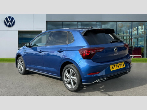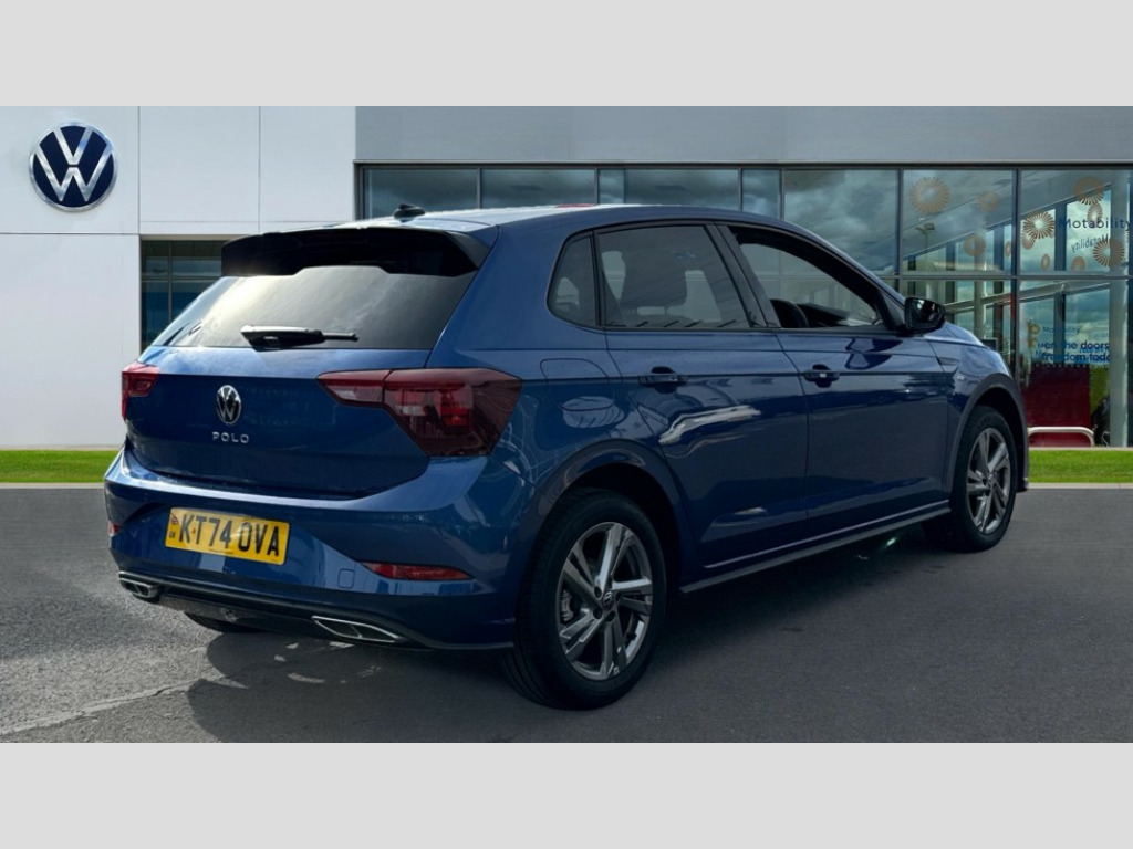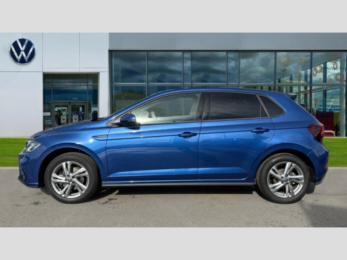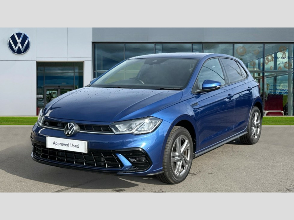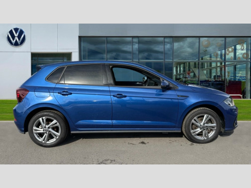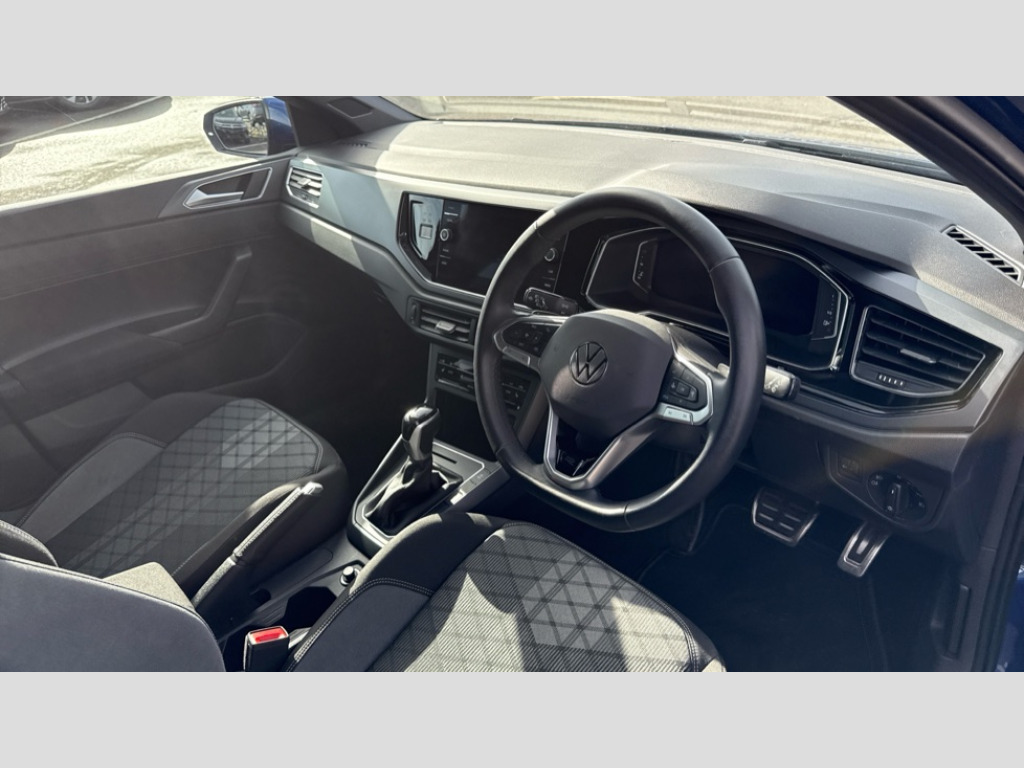 Volkswagen Polo 1.0 TSI 115 R-Line 5dr DSG Adaptive cruise control with follow-to-stop and speed limiter, Advanced driver attention and drowsiness monitor, Bluetooth mobile phone interface, Digital Cockpit Pro with 10.25" Display, Dynamic road sign display, Emergency call service, Multifunction camera, Power assisted speed sensitive steering, Preparation for We connect and We connect plus, Speedo and rev counter, electronic odometer, trip, service interval display and fuel gauge, Standard rear axle, Travel Assist - Lane keeping system and traffic jam assist, Travel assist including emergency assist, Trip computer, Warning signal and warning light for front and rear seatbelts not fastened, Washer fluid level indicator, Wireless app connect, Front wheel drive, Rear shock absorpion, Start-stop system with battery regeneration (recuperation - energy recovery during braking), DAB Digital radio, Diversity antenna for FM reception, Front and rear 6 speakers, Body colour bumpers, Body colour door handles, Electric front windows, Front scuff plates with R-Line logo, Heat insulating glass windscreen, Power folding adjustable/heated exterior mirrors and front passenger exterior mirror lowering function, Rear electric windows, Rear fog light, Rear side wing doors, Rear windscreen washer and wiper with interval delay, Third brake light, 12V power socket in centre console, 2 USB-C ports in the front, 2 USB-C charging sockets on the center console in the rear, 3 rear head restraints, 60/40 split folding rear seat and rear seat bench not split, Air care climatronic air conditoning system with active combination filter and 2-zone temperature control, Black roof lining, Carpet mats, front and rear, Chrome plated radiator grille inserts, air vent surrounds and light switch surrounds, Door and side trim panel, Driver and front passenger seat height adjustment, Driver/passenger sunvisors with illuminated vanity mirrors, Front centre armrest, Front footwell illumination, Front seat backrest storage pockets, Front sports comfort seats, Handbrake lever handle in leather, Headliner in recycled material, Isofix child seat preparation easy-fit (for two outer rear seats, and front passenger seat) compatible with I-size, Karoso artvelours cloth upholstery, Leather trimmed gear knob, LED interior light with switch off delay and dimmer, 2 reading lights front and rear, Luggage compartment cover, Luggage compartment floor, Luggage compartment lighting, Lumbar adjustment for front seats, Single front passenger seat, Stainless steel pedals, Standard pedal cluster, Three spoke leather wrapped multifunction steering wheel with shifting paddles, Light and sight pack - Polo R-Line/Black Edition, 3 point height adj front seatbelts + pretensioners, 3x3 point rear seatbelts, ABS, Driver and front passenger airbag with front passenger airbag deactivation, Drivers and front passengers safety optimised head restraints, ESC (Electronic stability control) + EDL (Electronic Differntial lock) and ASR (Traction control), Extended and predictive pedestrian/ cyclist protection, Front curtain and side airbags with center airbag, Front/rear disc brakes, Hill hold control, Manual child lock in rear doors, Single tone horn, Tyre pressure loss indicator, Alarm with interior protection, Anti-theft alarm system with interior monitoring, backup horn, and towing protection, Anti-theft wheel bolts, Electronic engine immobiliser, Chrome applications on rotary light, mirror adjustment, window regulator switches, outlet with frame in black, Dark grey anodised matt decorative inserts in dash and front door panels, 16" Coventry alloy wheels, Low rolling resistance tyres